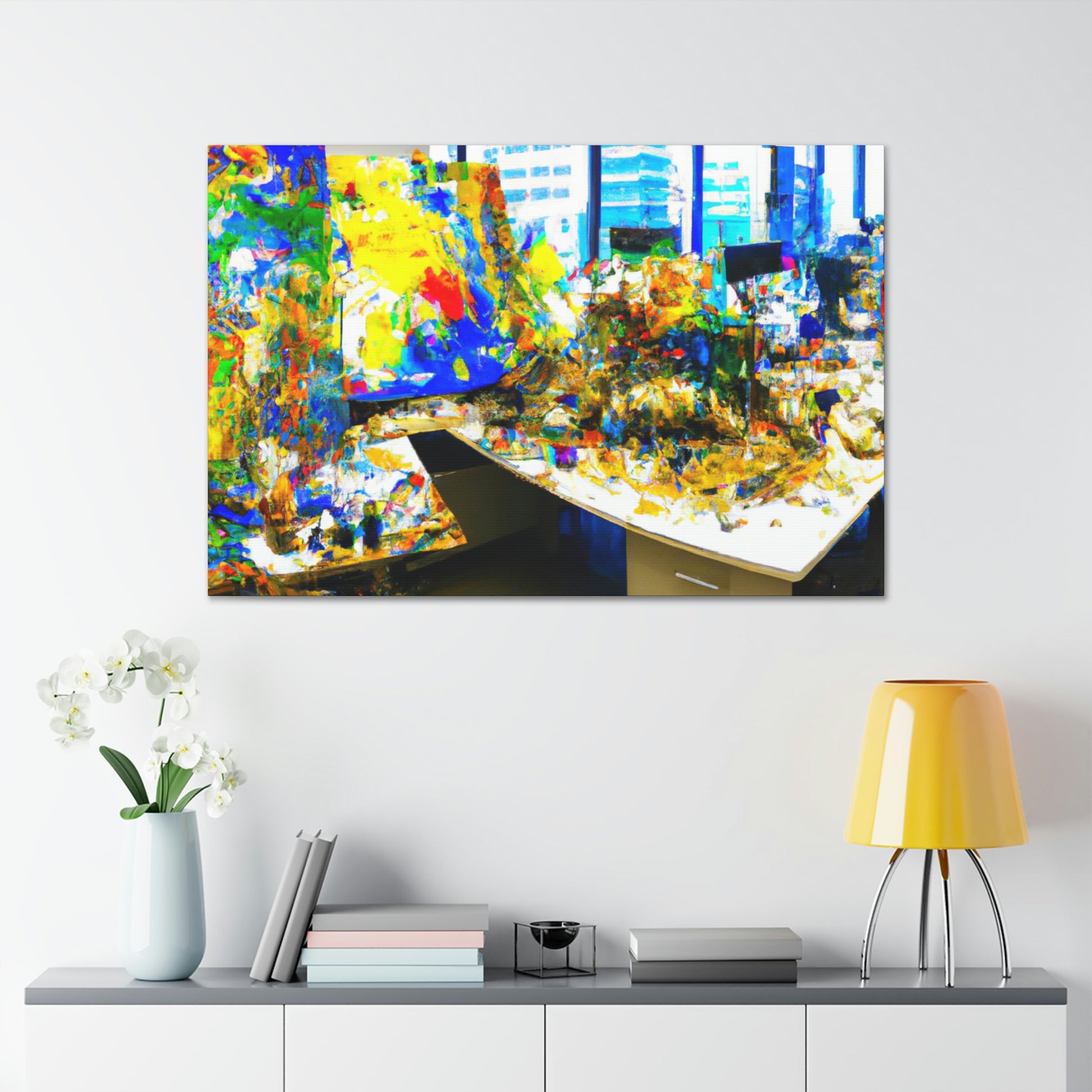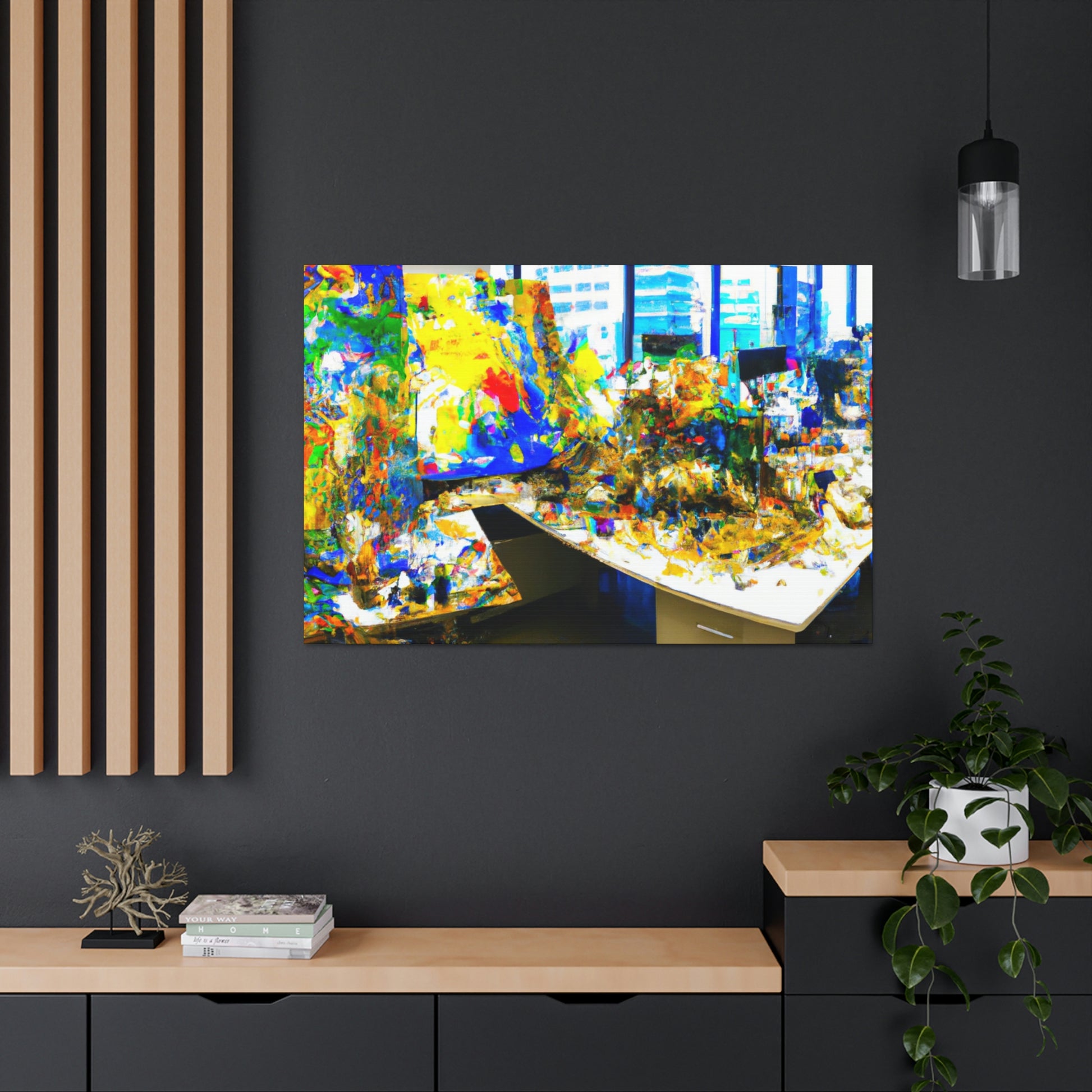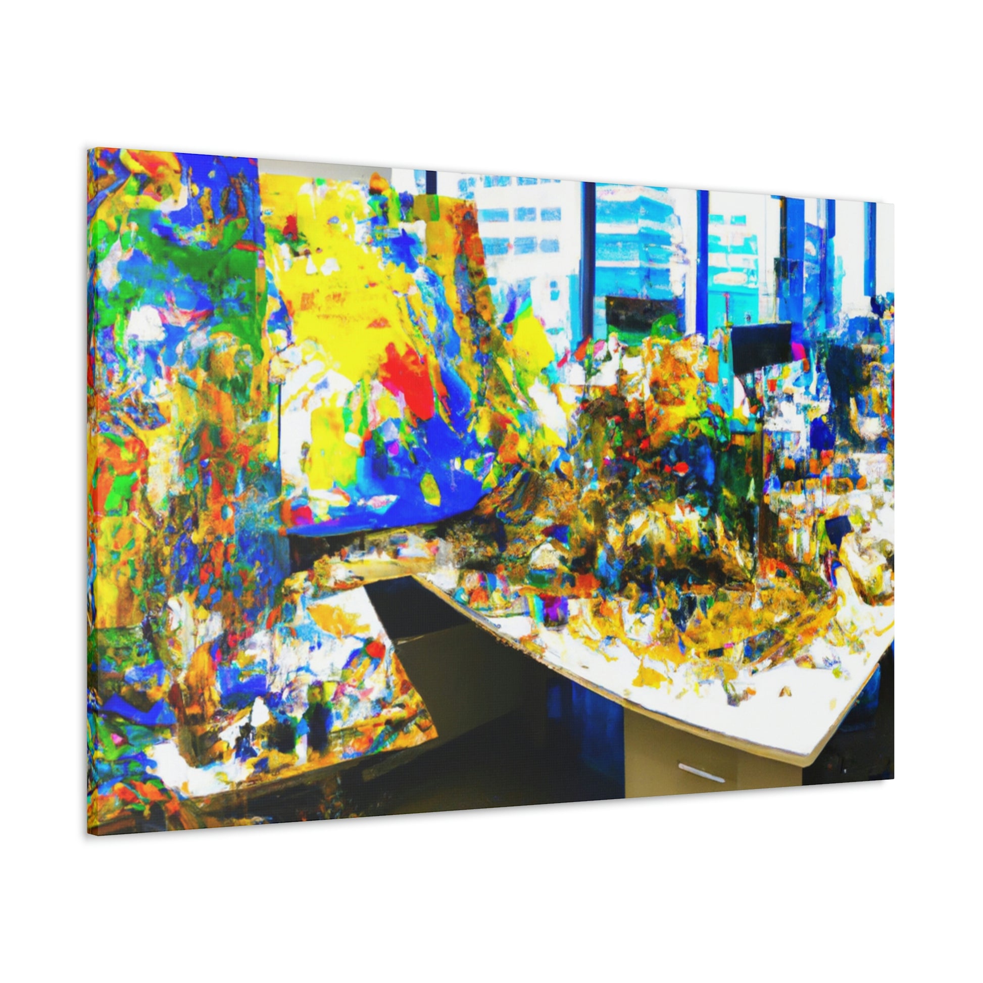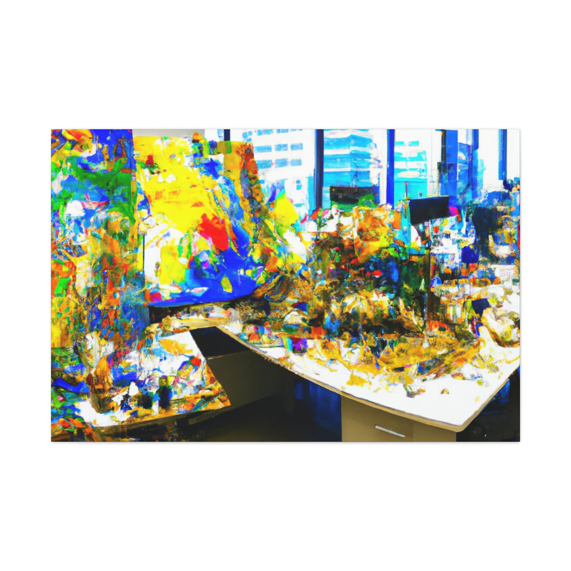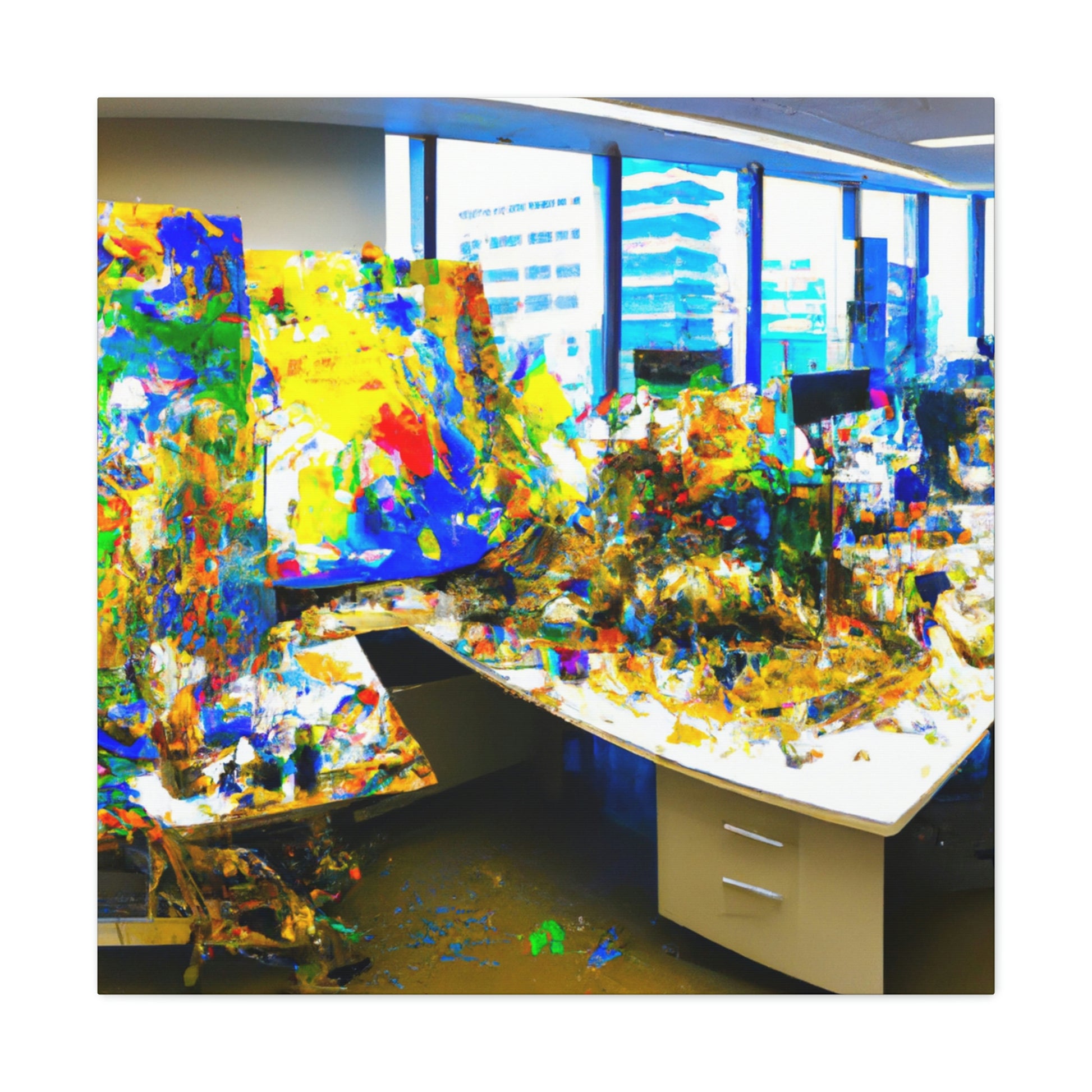 This spectacular canvas painting of abstract art by a great artist is sure to be the perfect addition to any office. The vibrant colors pair beautifully with the intricate brush strokes, creating a work of art that is both beautiful and engaging. This canvas painting is sure to make a great conversation and focal point in any room. #AbstractPainting #OfficeDecor #ArtistCanvas #AbstractArt #AbstractOffice #IntricateBrushStrokes #VibrantColors #CanvasPainting #AbstractOfficePainting #FocalPoint #ConversationPiece