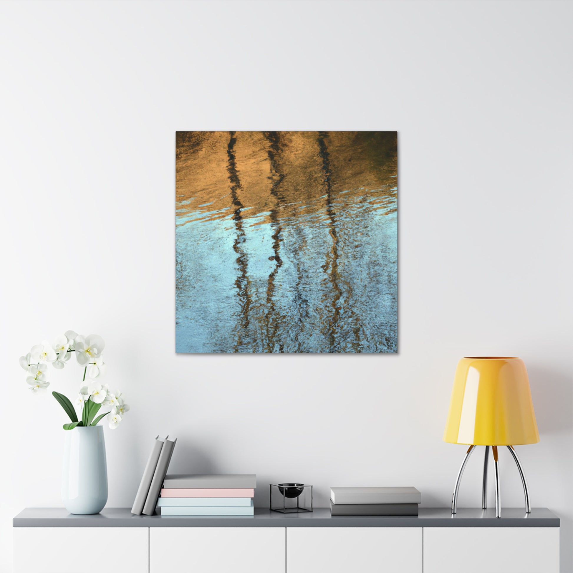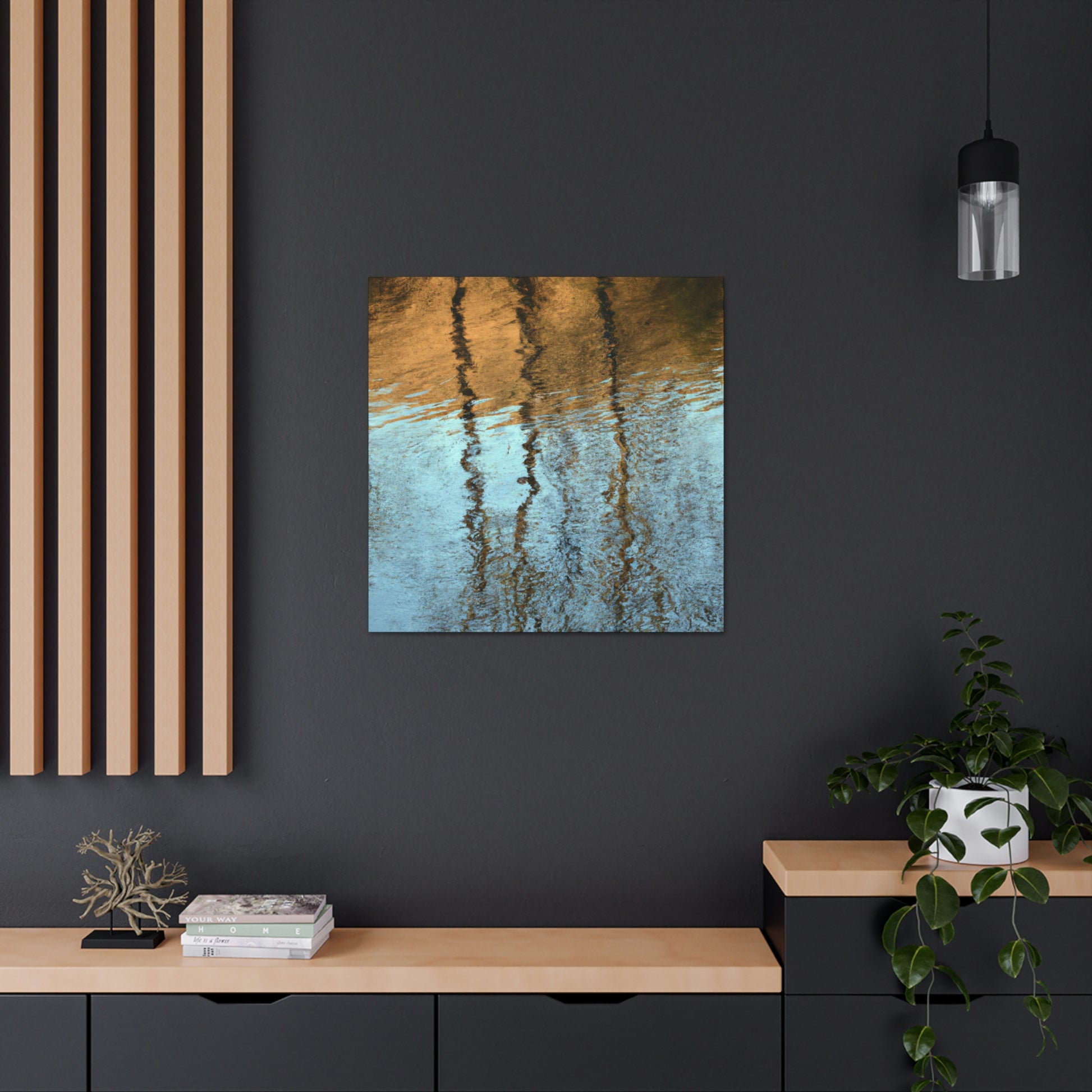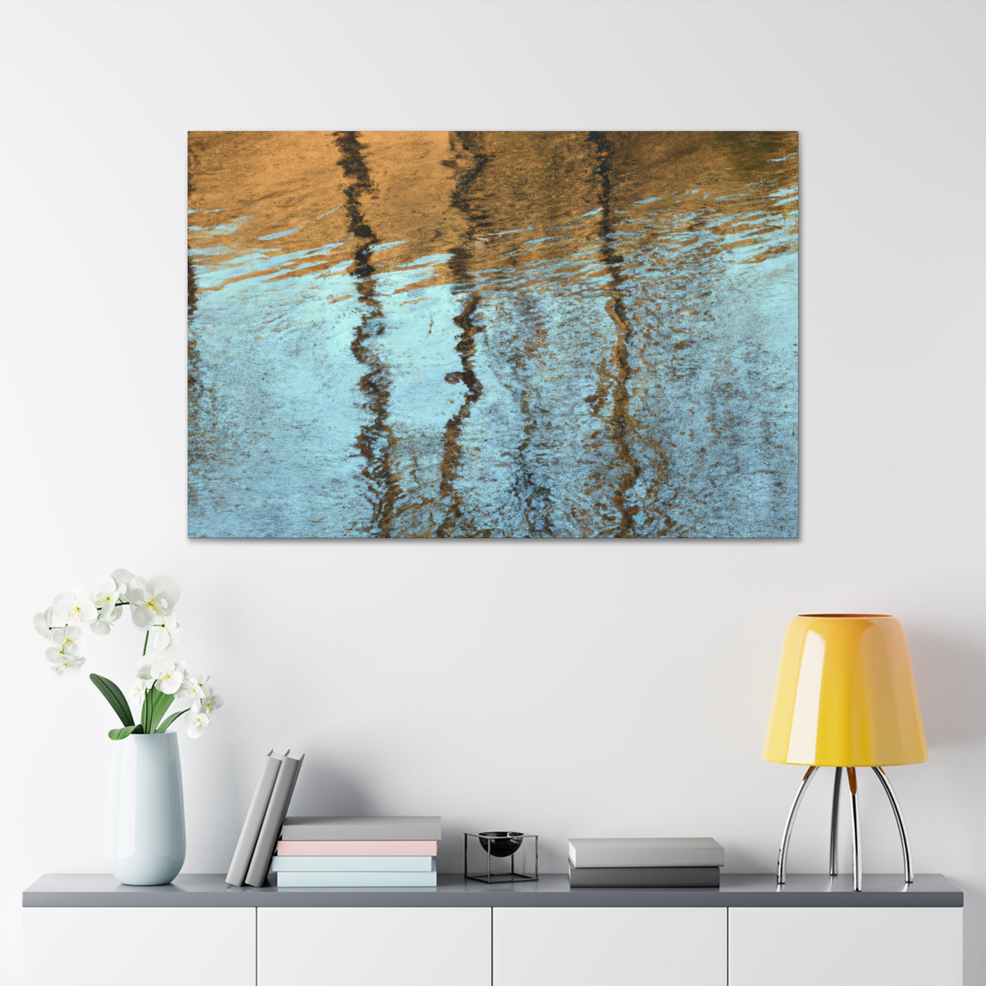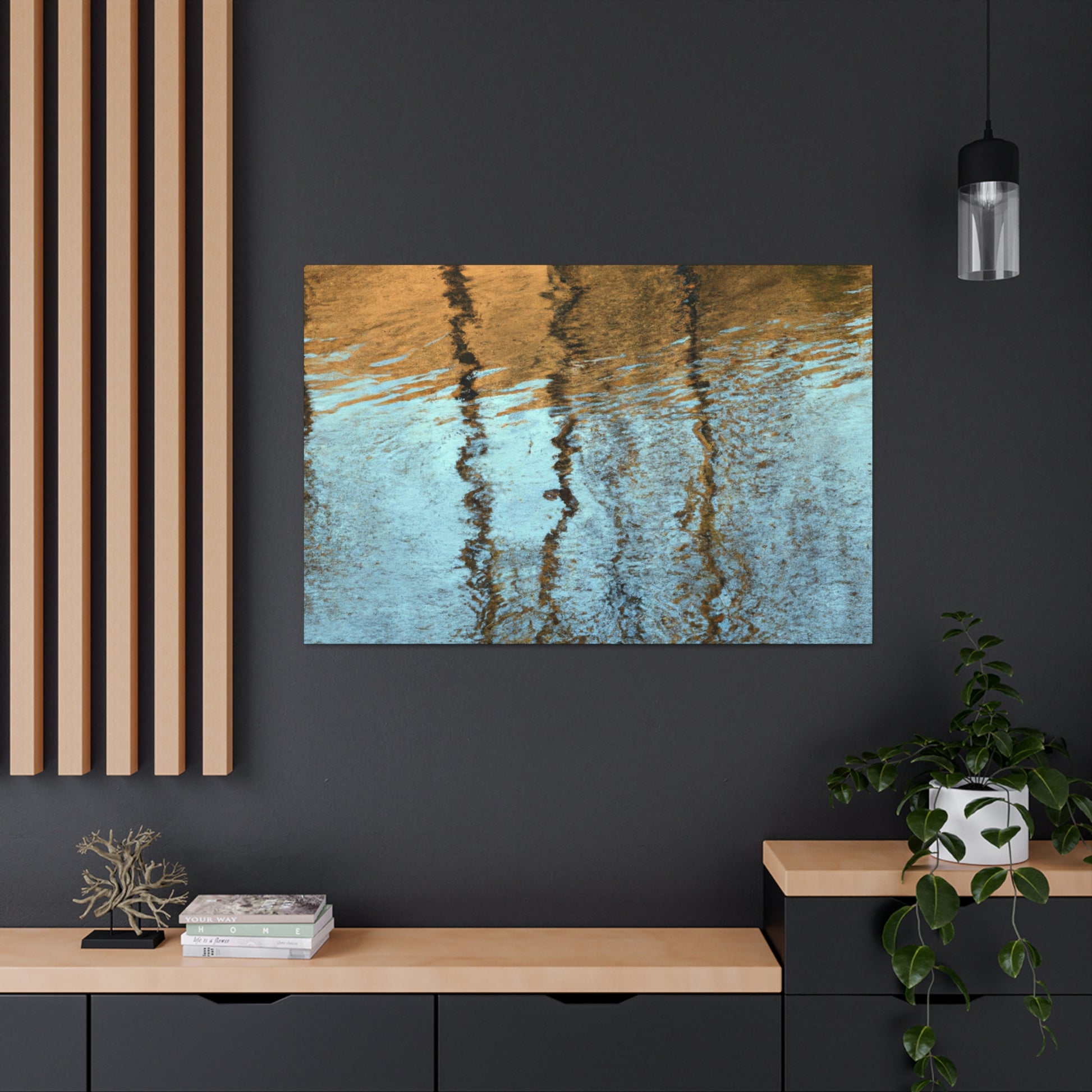 This canvas featuring the work of a great artist, displays beautiful reflections and water painting. Their intricate brushstrokes and deliberate use of color create an abstract work completely unique to them, sure to impress. Hang this canvas in any room to bring the beauty of the piece to life and leave an impression. #abstractart #reflections #waterpainting #art #canvas #painting #artist #canvasart #color #brushstrokes #uniqueart #décor