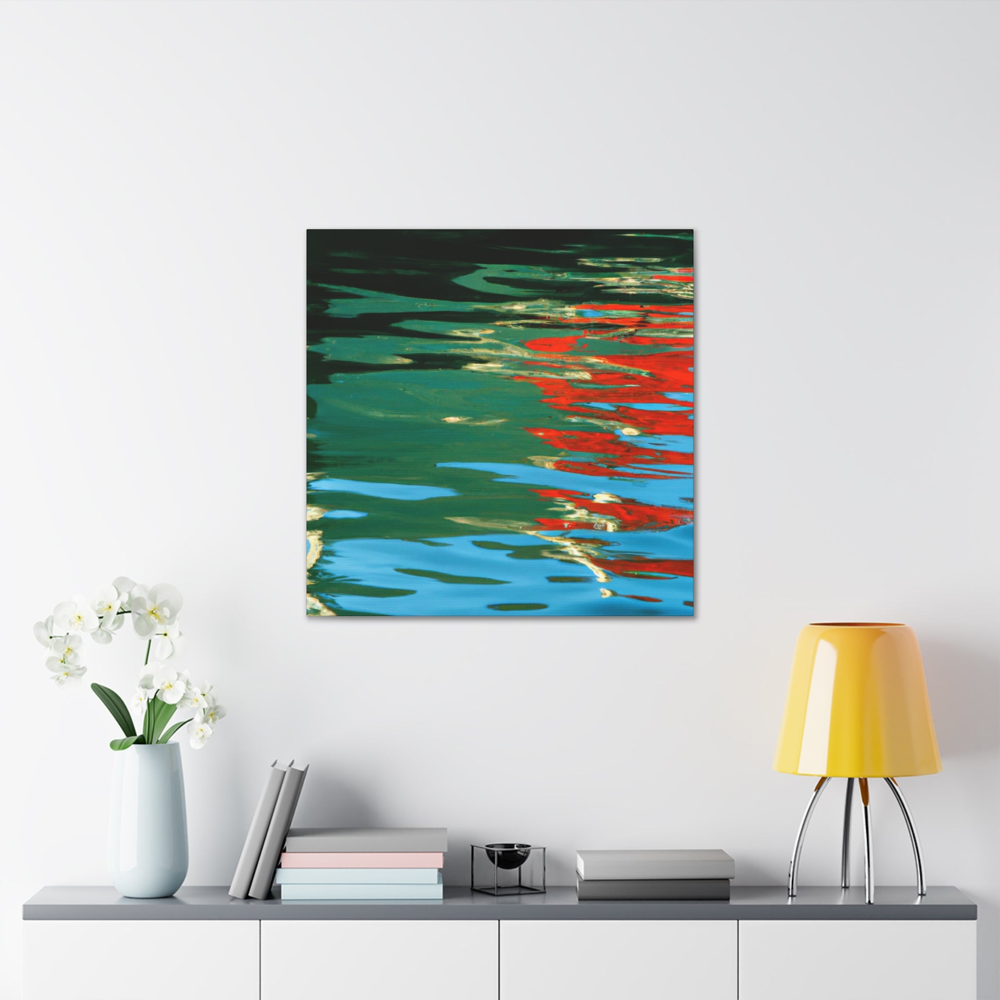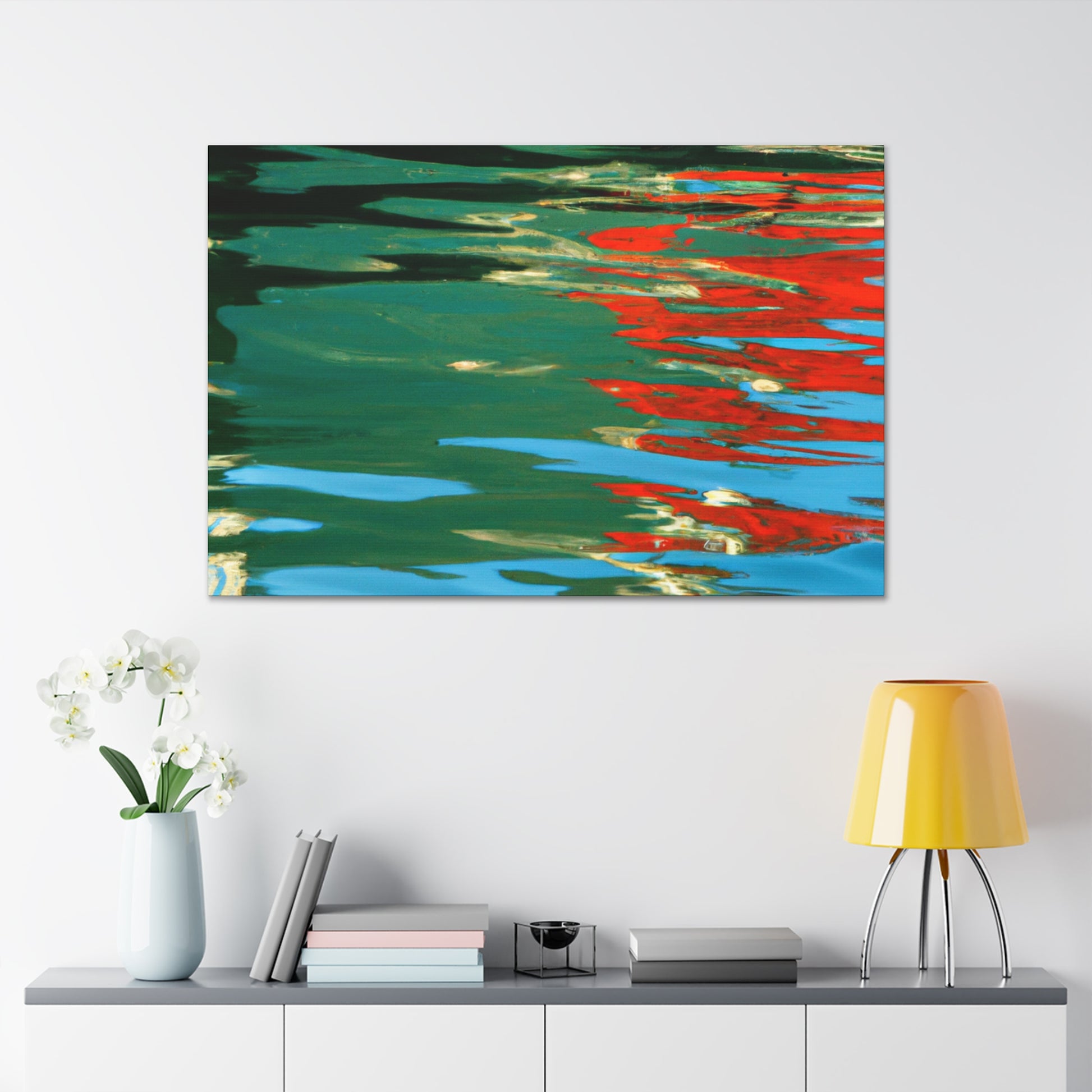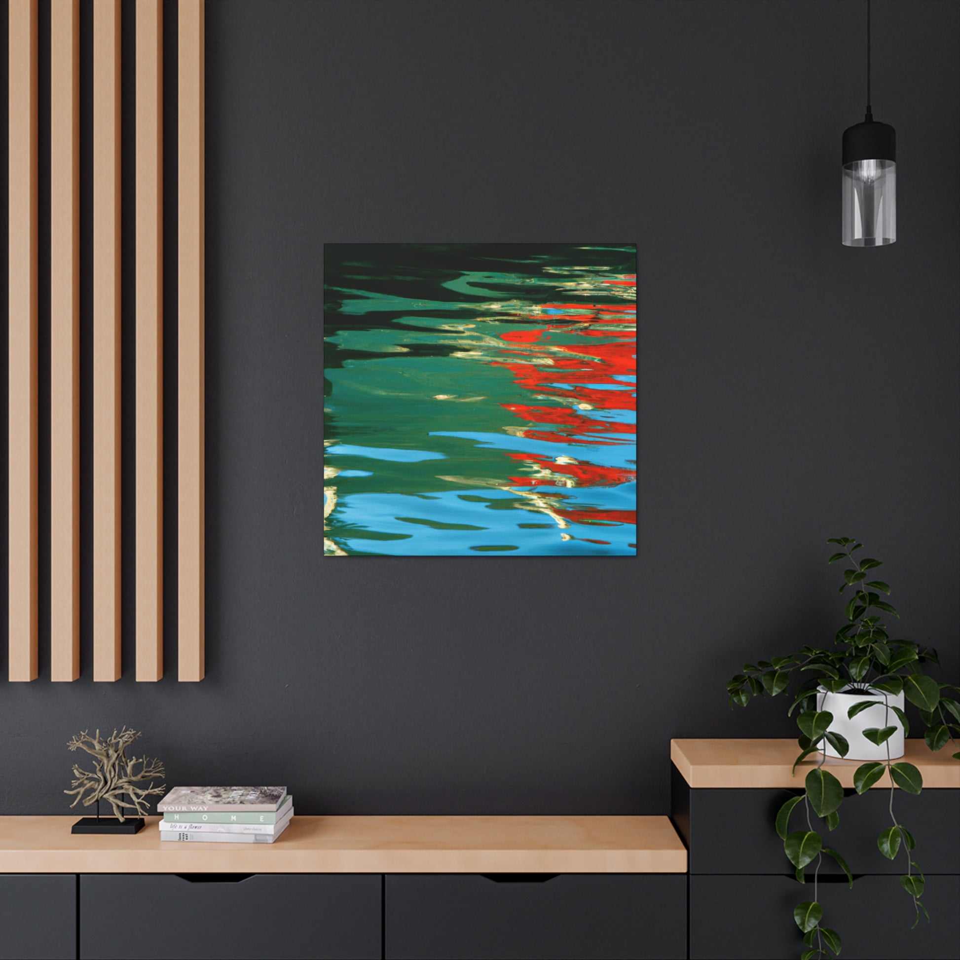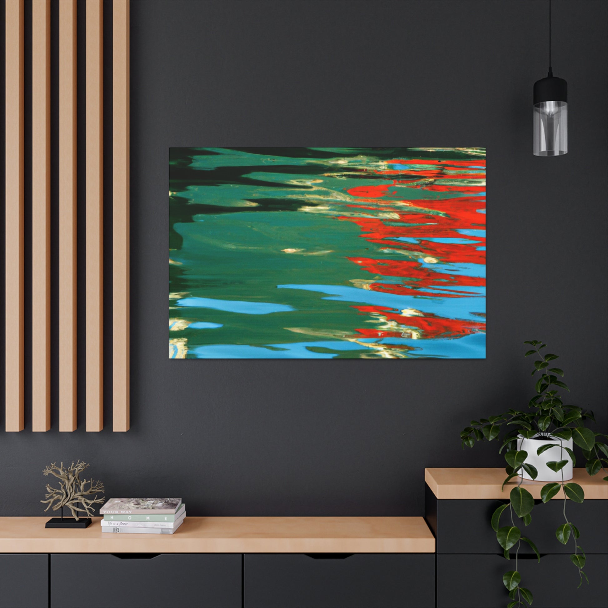 This canvas features the beautiful reflections and water painting work of a great artist. The painting merges bold colors and themes, perfect for bringing a bright and cheery atmosphere to any room. From the depth of color to the texture of the brush work, this canvas is an amazing visual expression of the artist’s passion. #waterpainting #reflection #painting #canvas #art #artist #colorful #roomdecor #bold #visualexpressions #passion