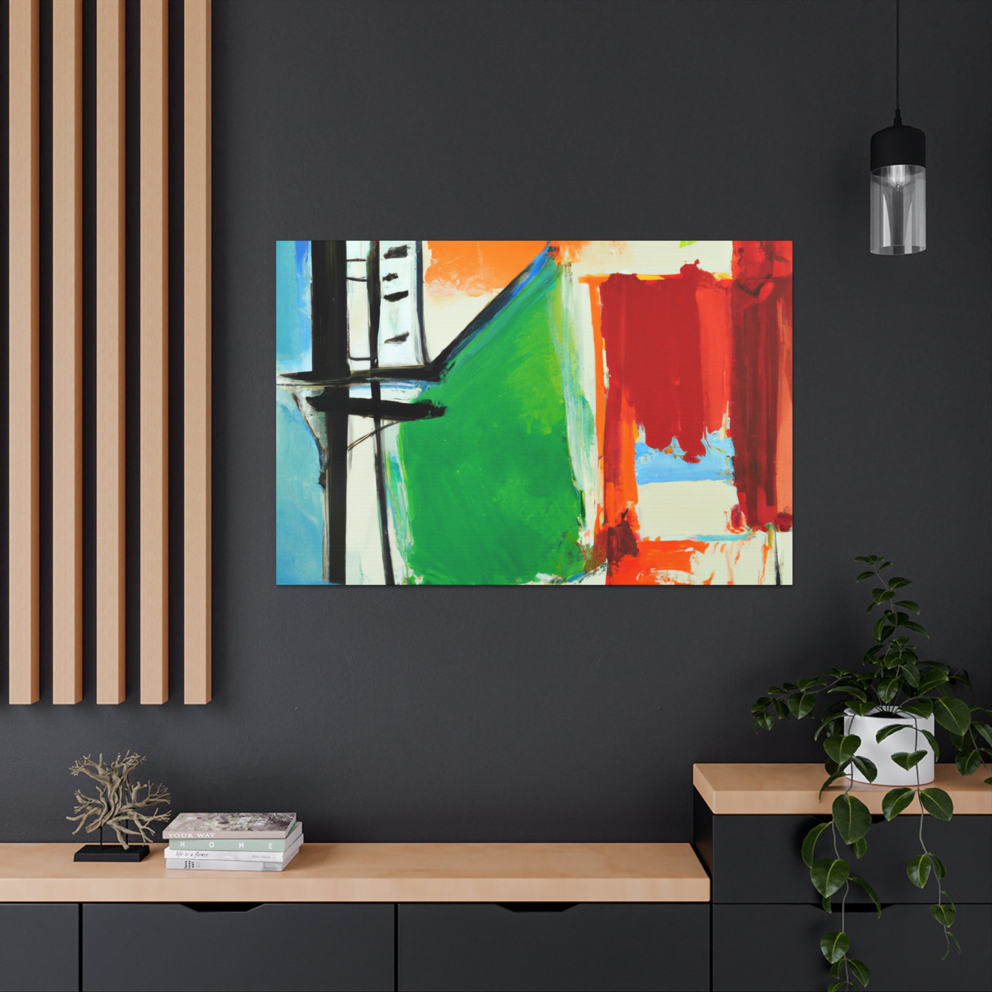 This eye-catching abstract office painting is sure to inspire creativity and set the tone of your office. It features an ethereal balance of curves and bright colors, moving against a muted background. The canvas is well-crafted and has a glossy texture. Bring a sense of art and modernity to your office and energize your workspace. #abstractart #officeart #metalart #modernart #artwork #canvas #painting #contemporaryart #creativeart #wallhanging #wallartand