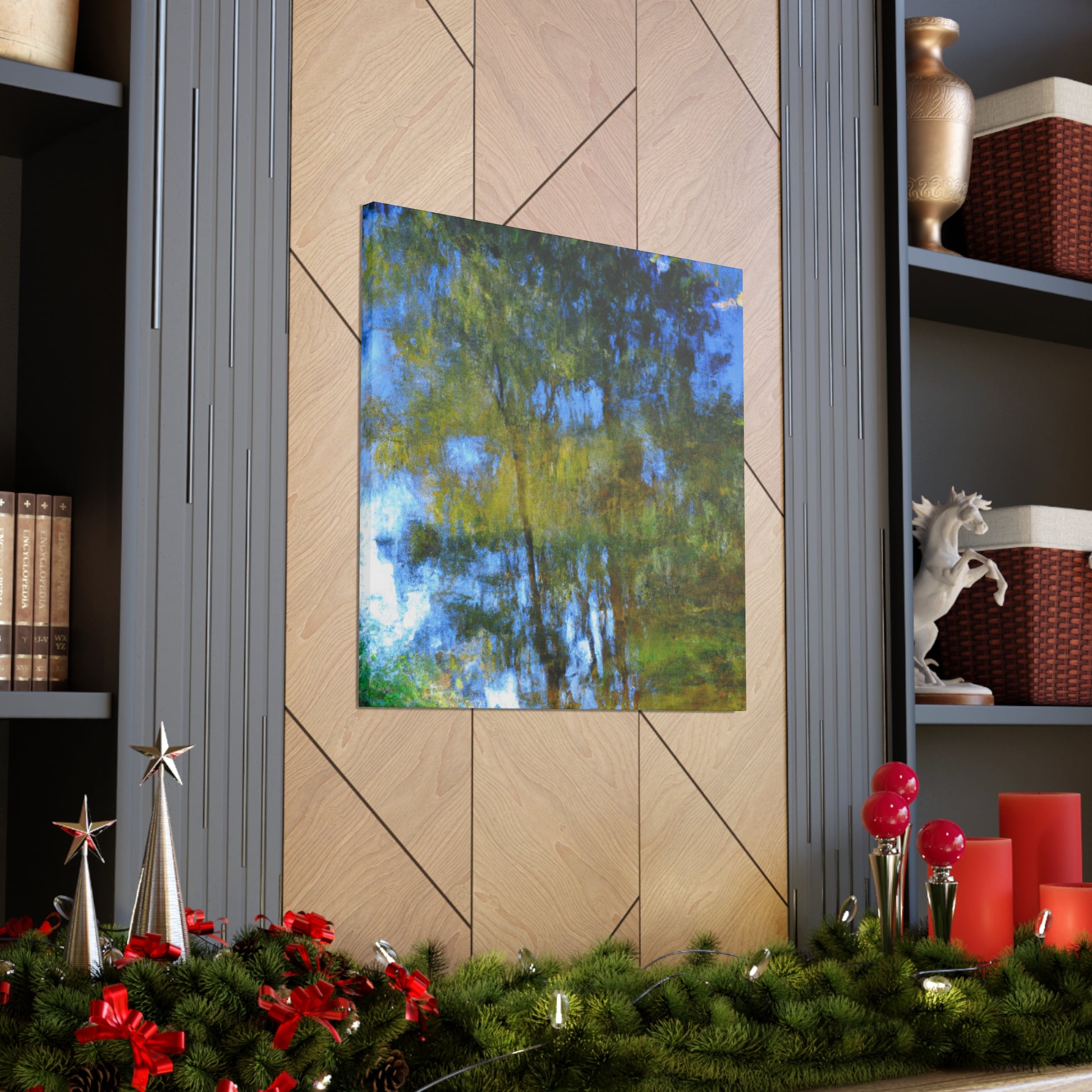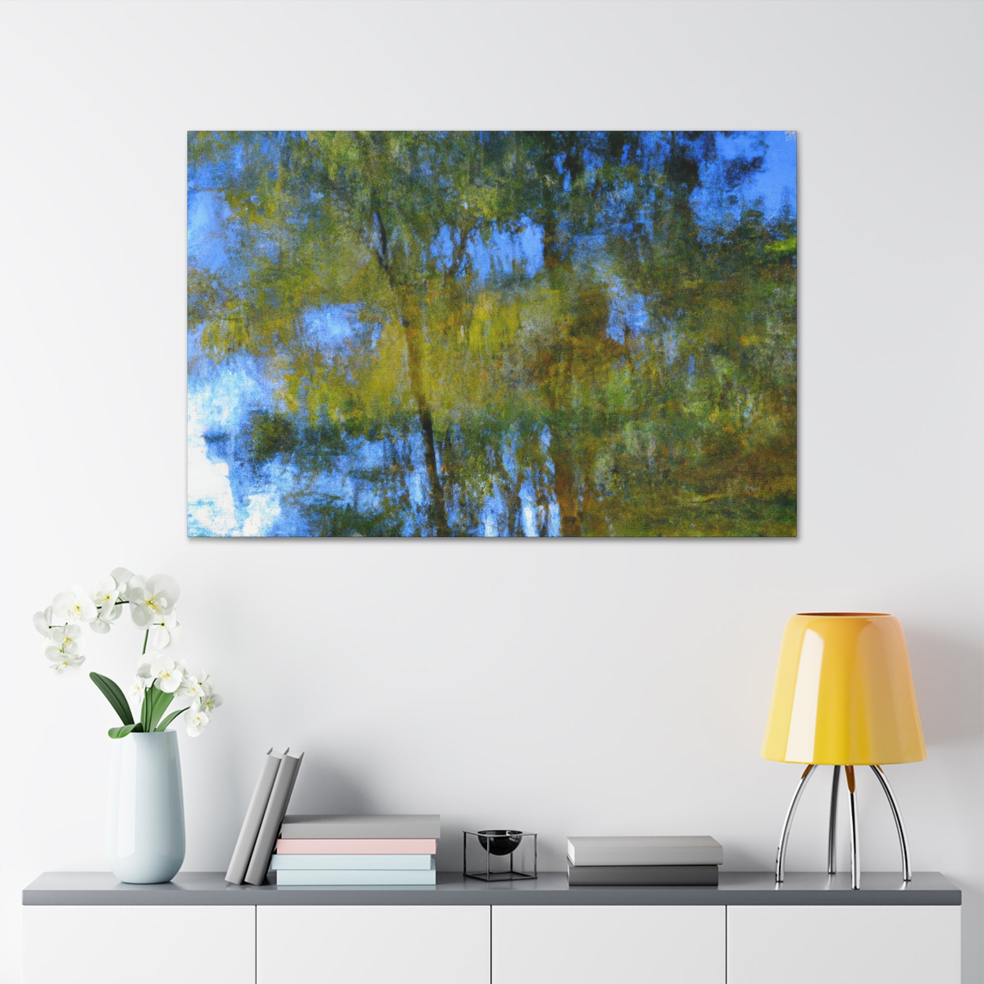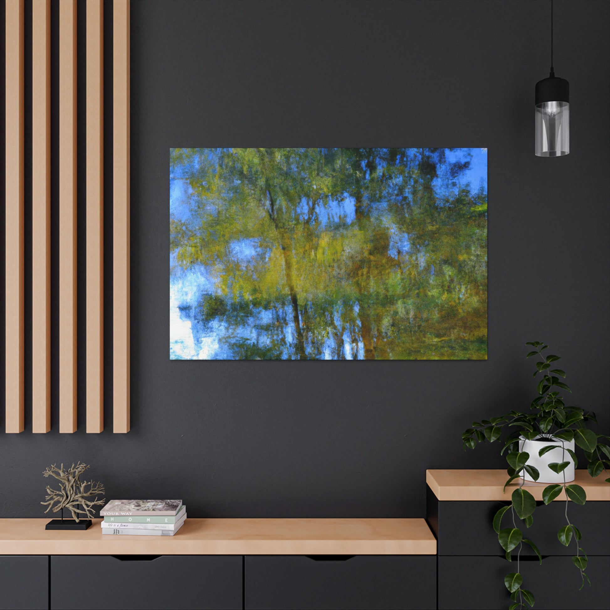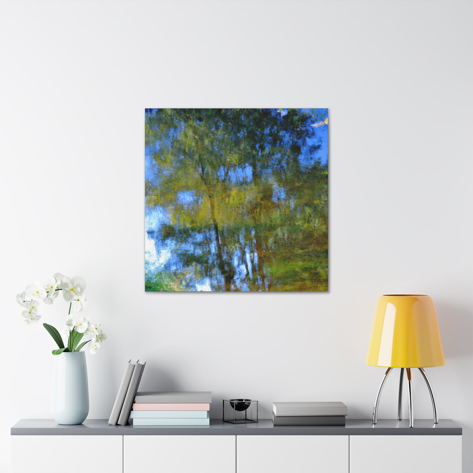 This beautiful canvas features a reflection-style painting perfect for any art lover. Each piece is detailed with a watercolor painting in hues of blues and greens. Its simple yet bold design is unique and captivating. Hang on a wall, draped over a couch, or placed on any shelf to brighten up any living space. #acrylicpainting #artlife #watercolorartist #artstyle #reflectionpaints #livingroomdecor #interiordesign #abstractstyle #watercolors #paintingcanvas #artanddesign