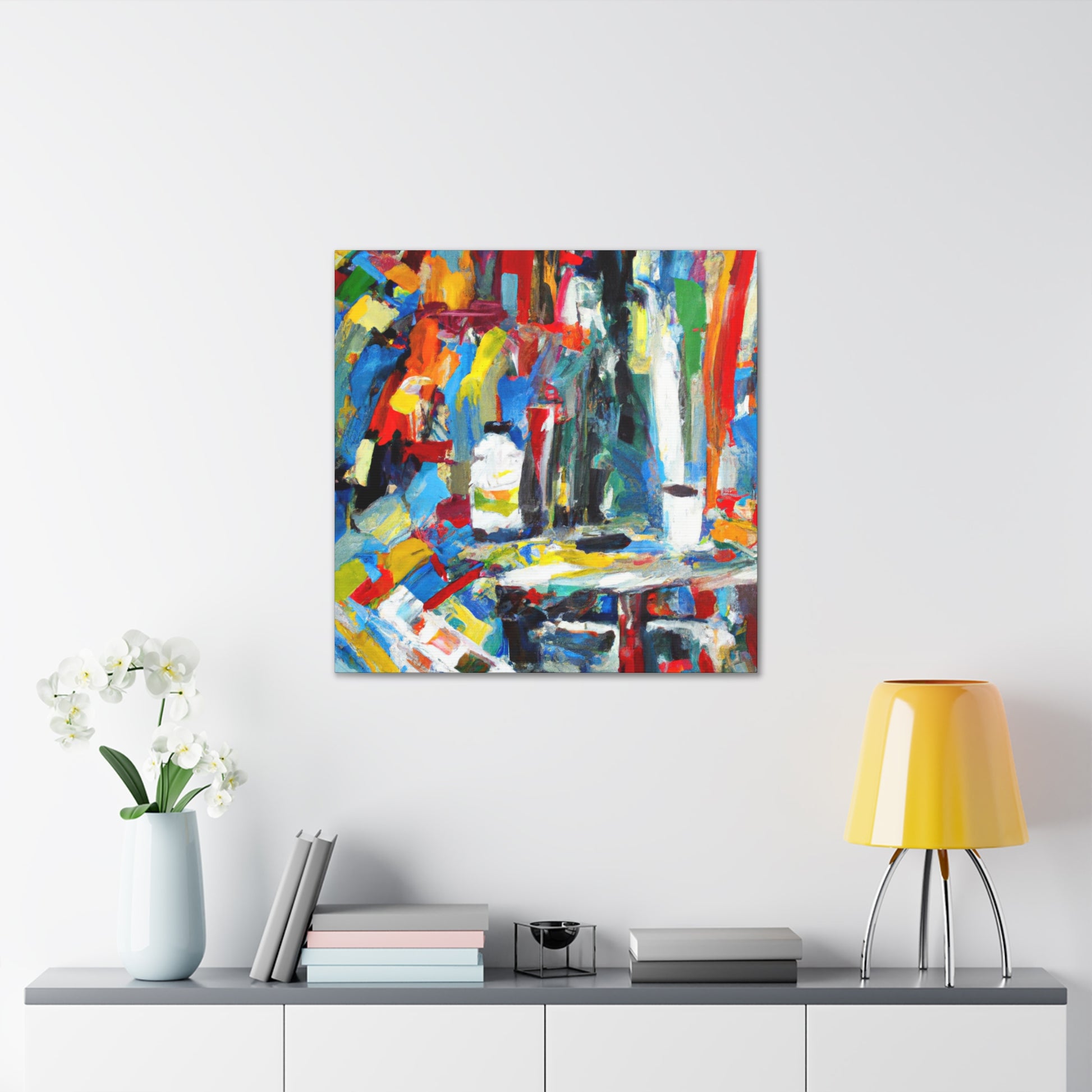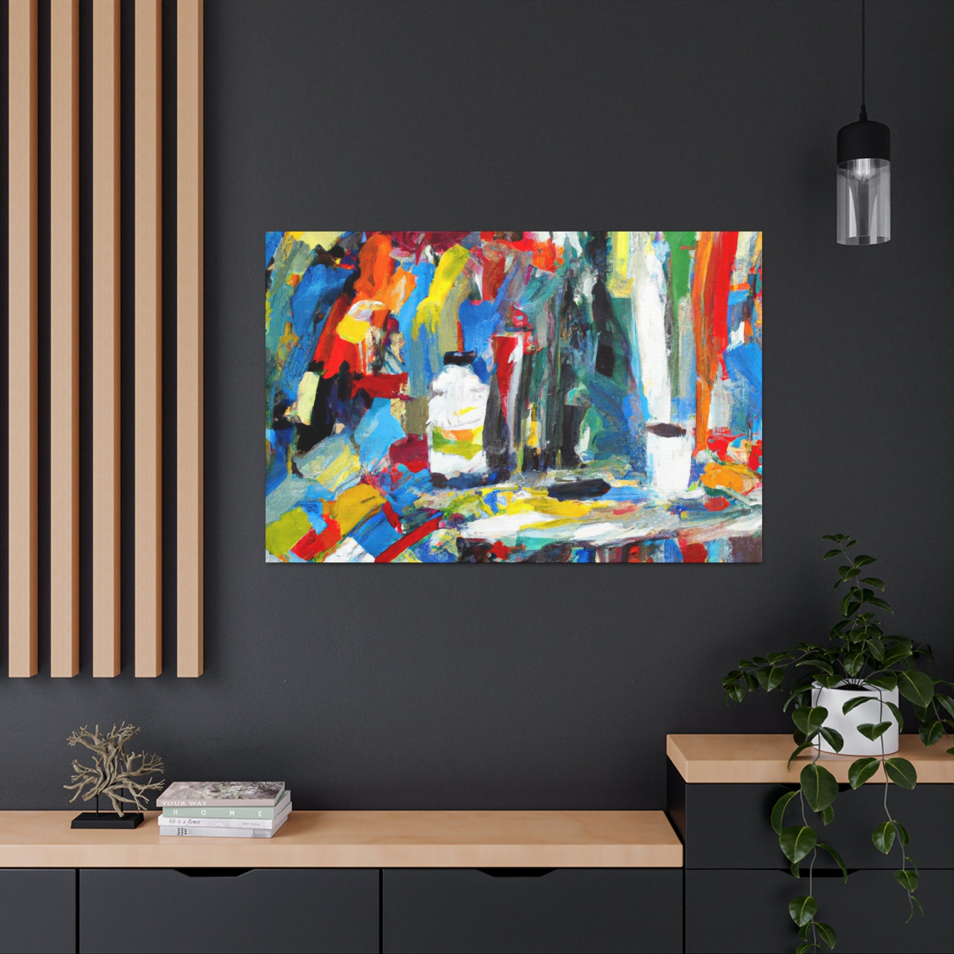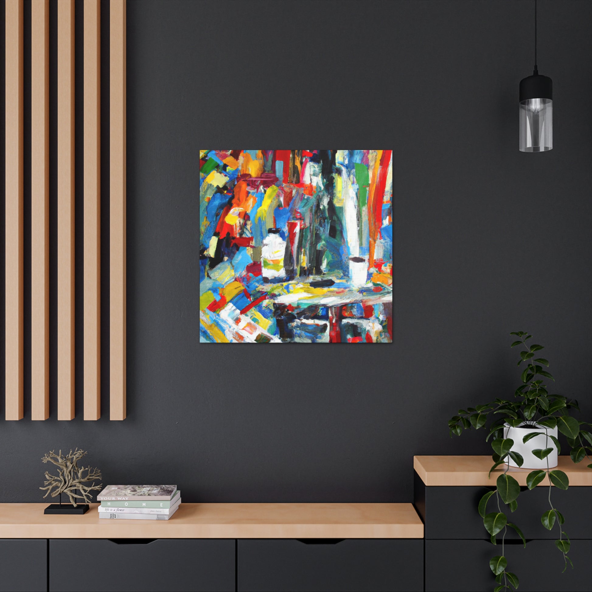 This original abstract office painting is perfect for brightening up the walls of your work space. Flowing lines and vibrant colors bring out the energy of creativity and create a calming atmosphere. This piece of art will intrigue your colleagues and serve as a true conversation starter. The canvas is printed with museum-quality ink and is framed in a contemporary red wood frame. Let it add a touch of sophistication and modernity to your workplace #abstractpainting #framedcanvas #modernart #officespace #artists #creativity #worklife #vibrantcolors #modernstyle #originalart #museumquality