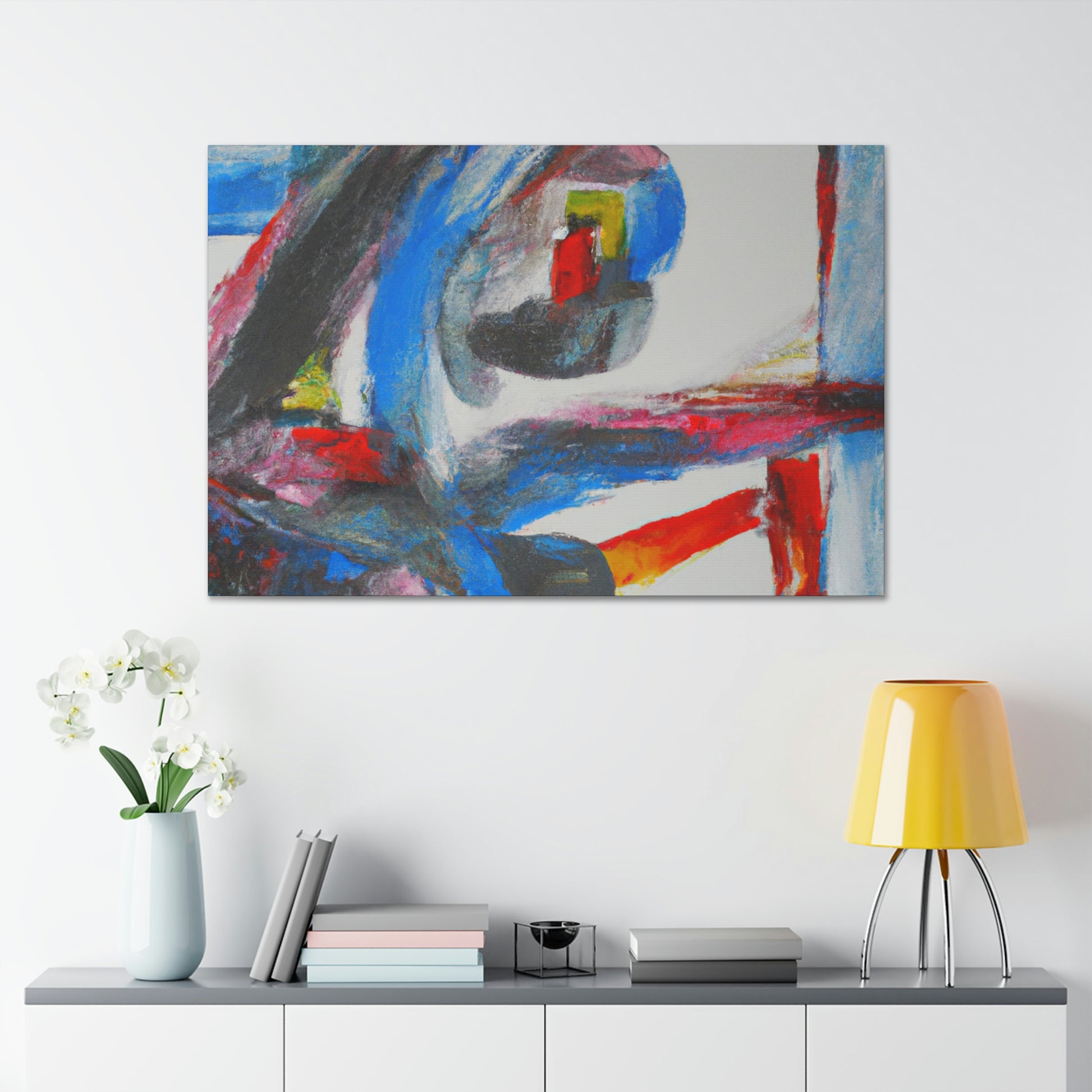 Stun your office with this vibrant abstract painting by a great artist. Bold colors, brush strokes, and intricate detail make this piece truly one-of-a-kind. Fit to spruce up any workspace. Hang this canvas up to bring life and motivation to your office! #abstractart #abstractpainting #officeart #officespace #greatartist #canvasart #explorecreativity #motivationmonday #vibrantart #brushstrokes #homedecorand