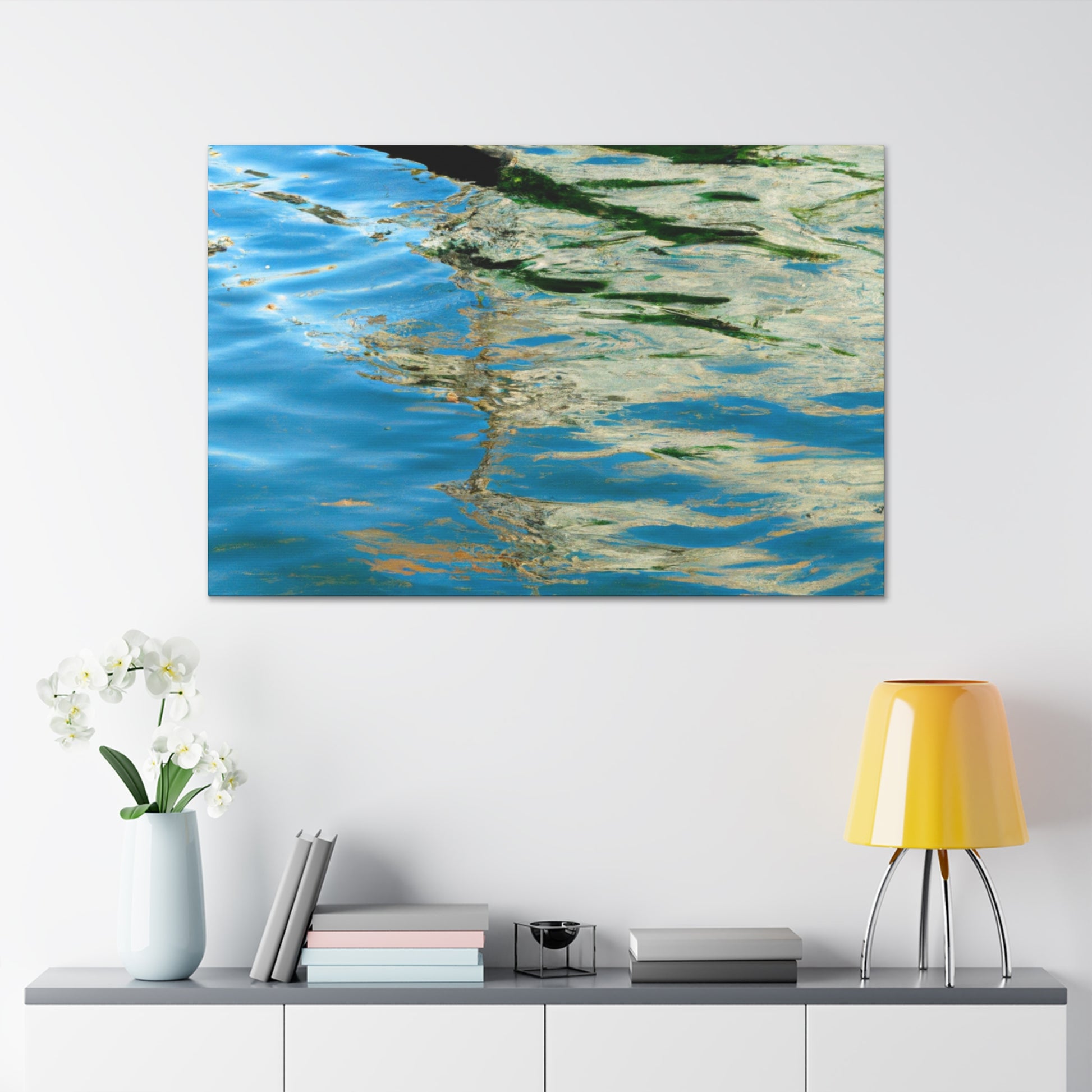 This exquisite canvas is full of beauty and wonder, showcasing the artistry of a great master. It captures the warm sun reflecting off of the water, creating a dreamlike atmosphere. Whether it's hung up in a living room, office, or studio, the painting serves as a reminder to take the time to appreciate the finer things in life. #waterpainting #reflections #canvas #art #painting #fineart #artist #masters #serenity #landscape #nature #scenery
