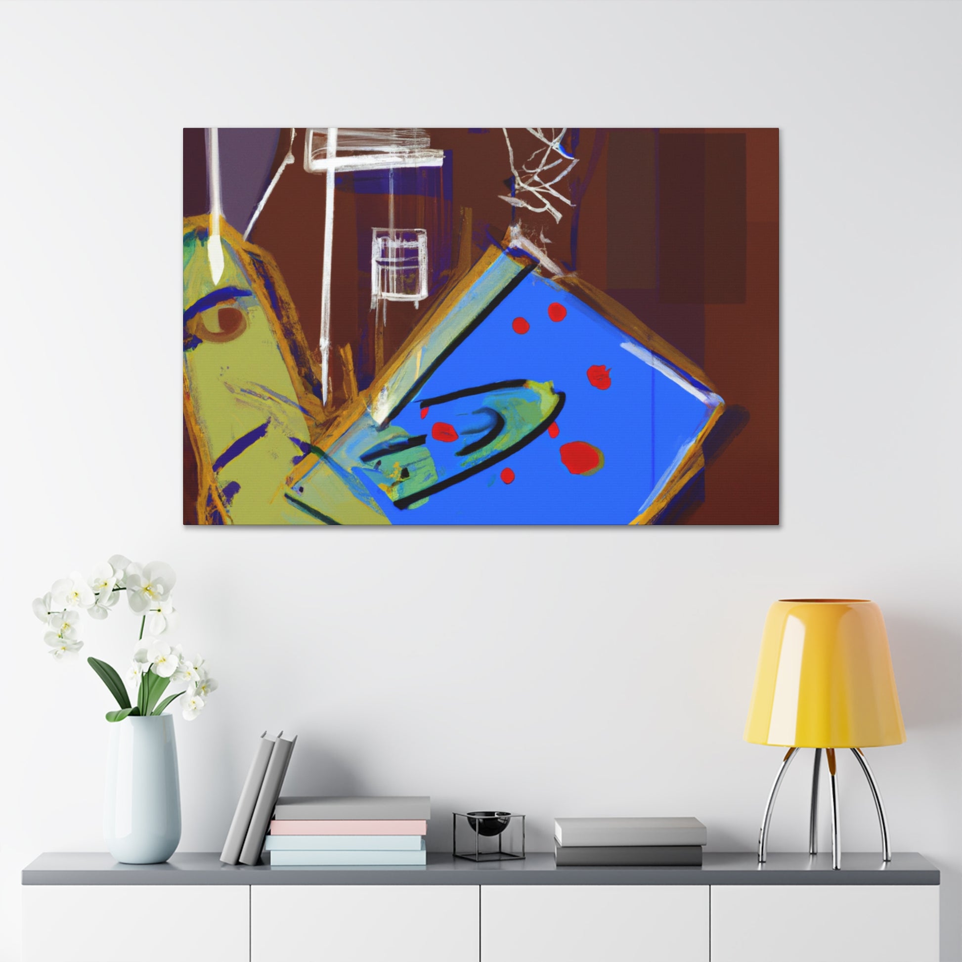 This abstract office painting is a stunning art piece that will have your guests asking "where did you find it?". It captures the spirit of modern business culture with its unique colour palettes and abstract shapes. Its minimalist style fits perfectly in any stylish office interior. Hang it with pride and let it be a source of inspiration! #abstractofficepainting #abstractart #officeart #minimaliststyle #artpiece #abstractshapes #colourpalettes #statementart #modernbusinessculture #homeinterior #inspirationalart
