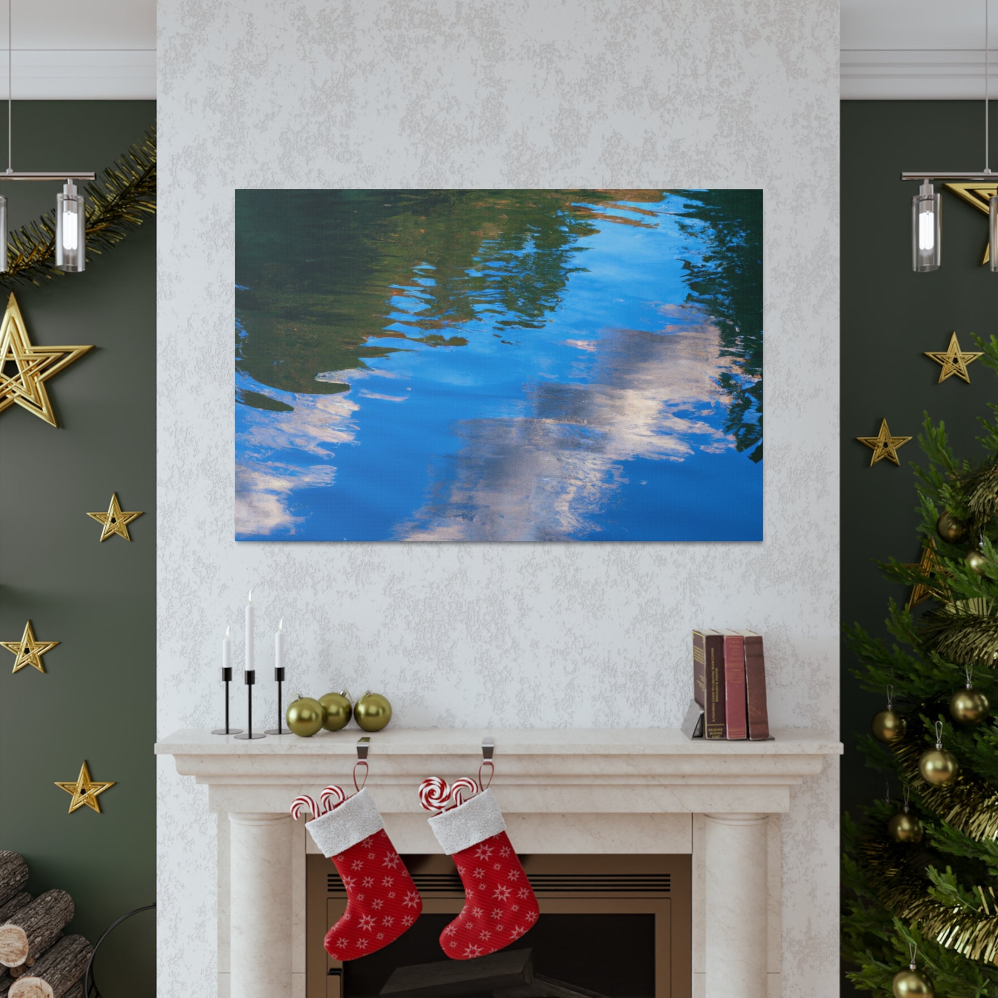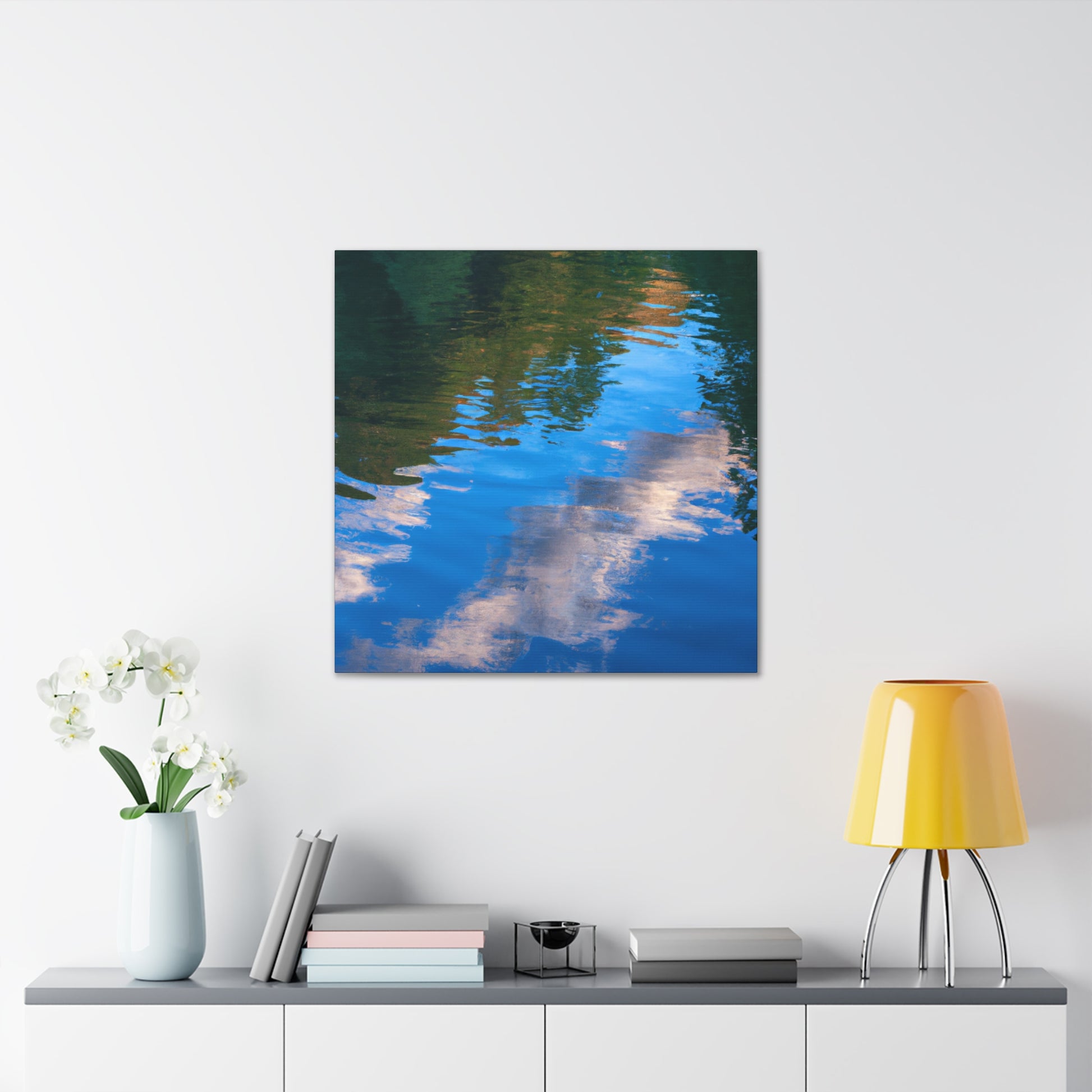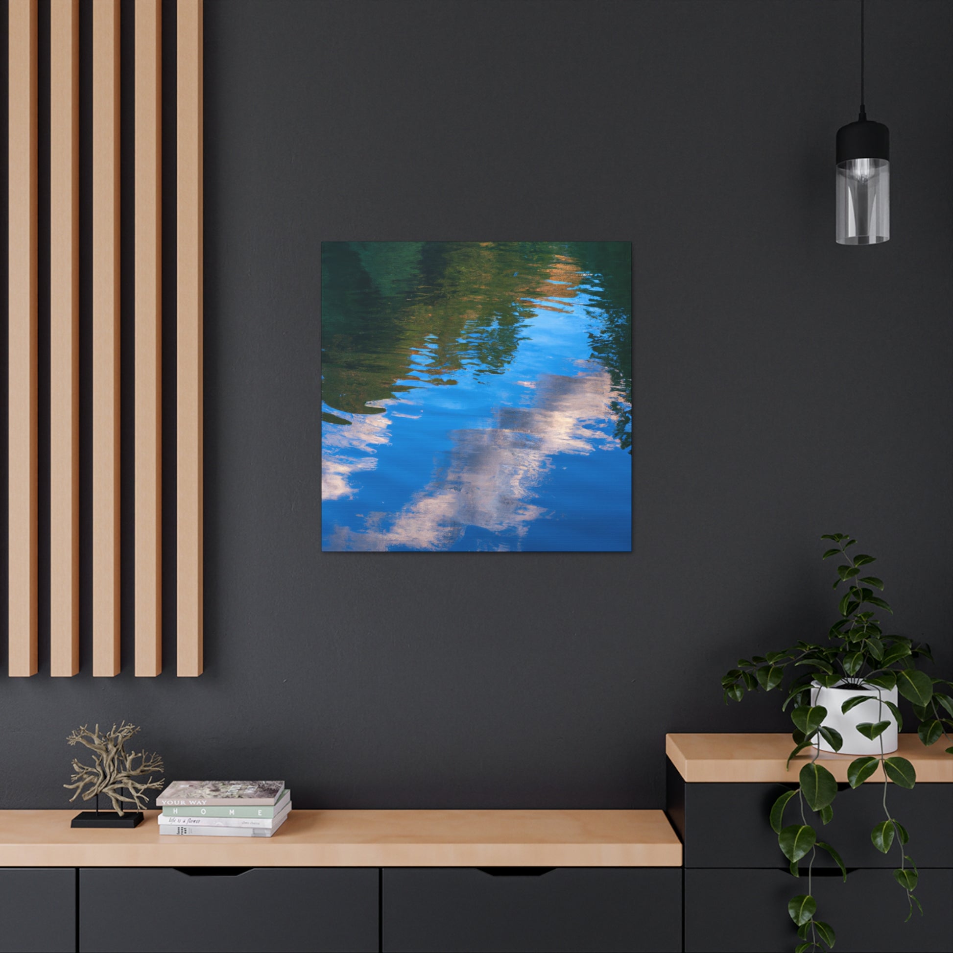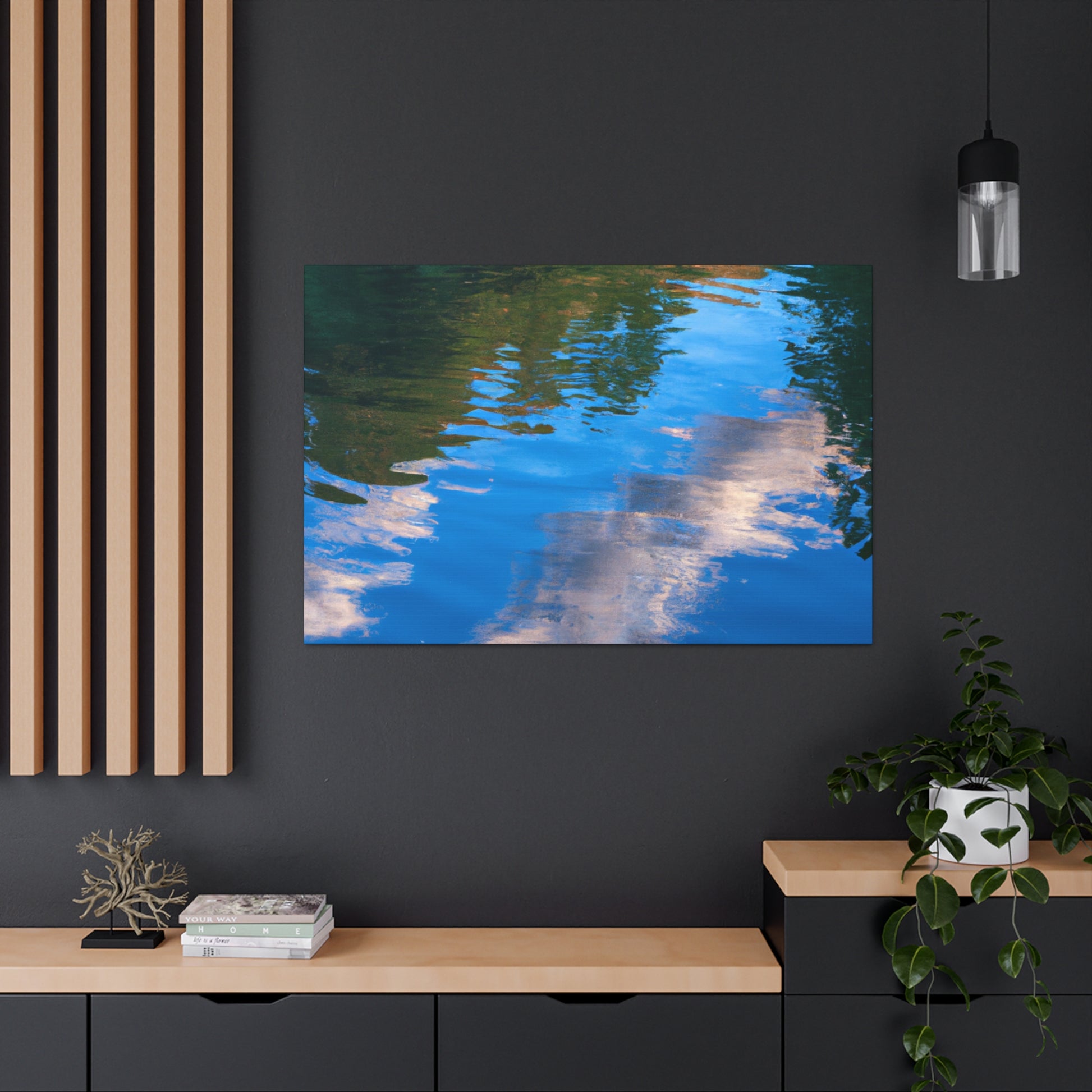 This canvas captures the beauty of nature through a reflection of light and watter painting. It is carefully crafted to show the best of the artist's work. Its crisp, vibrant colors bring the painting to life. With a unique combination of modern and classic elements, it's a great piece to add to your art collection. #canvas #art #painting #waterpainting #reflection #light #wallart #homedecor #interiordesign #beauty and #landscape