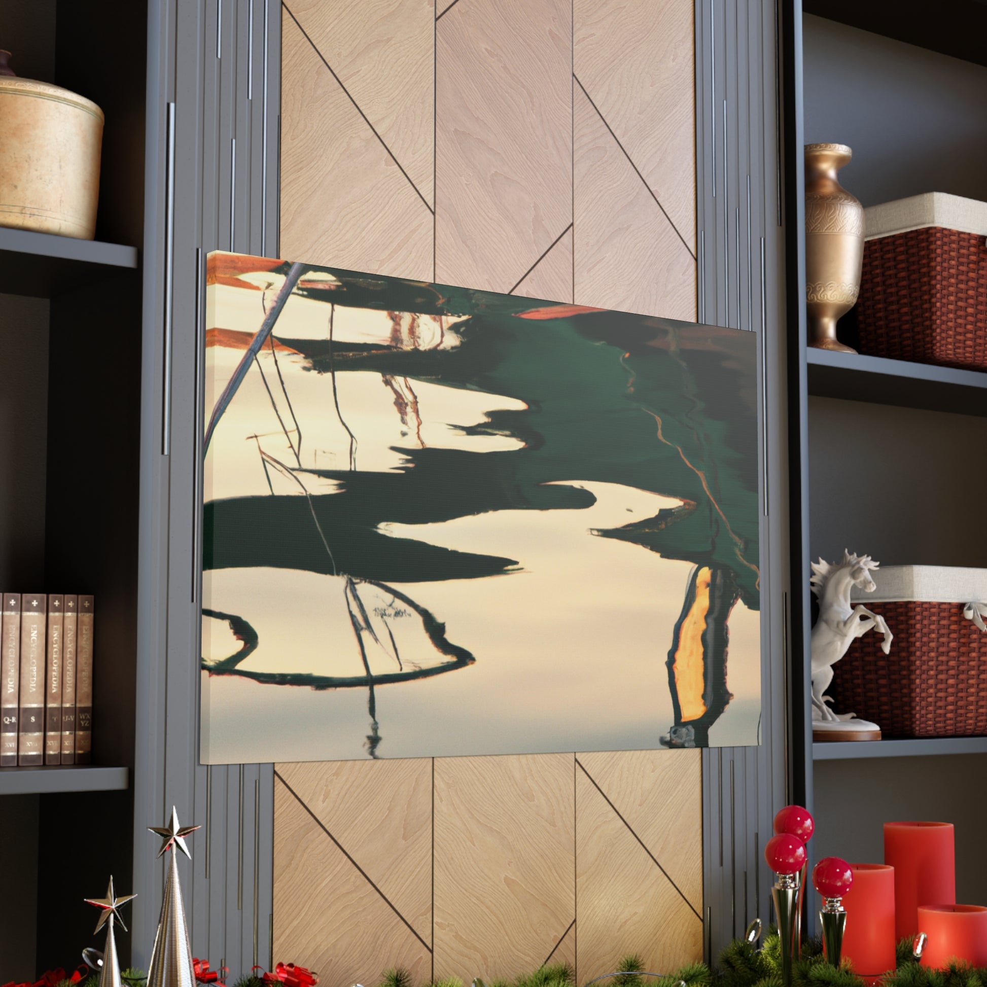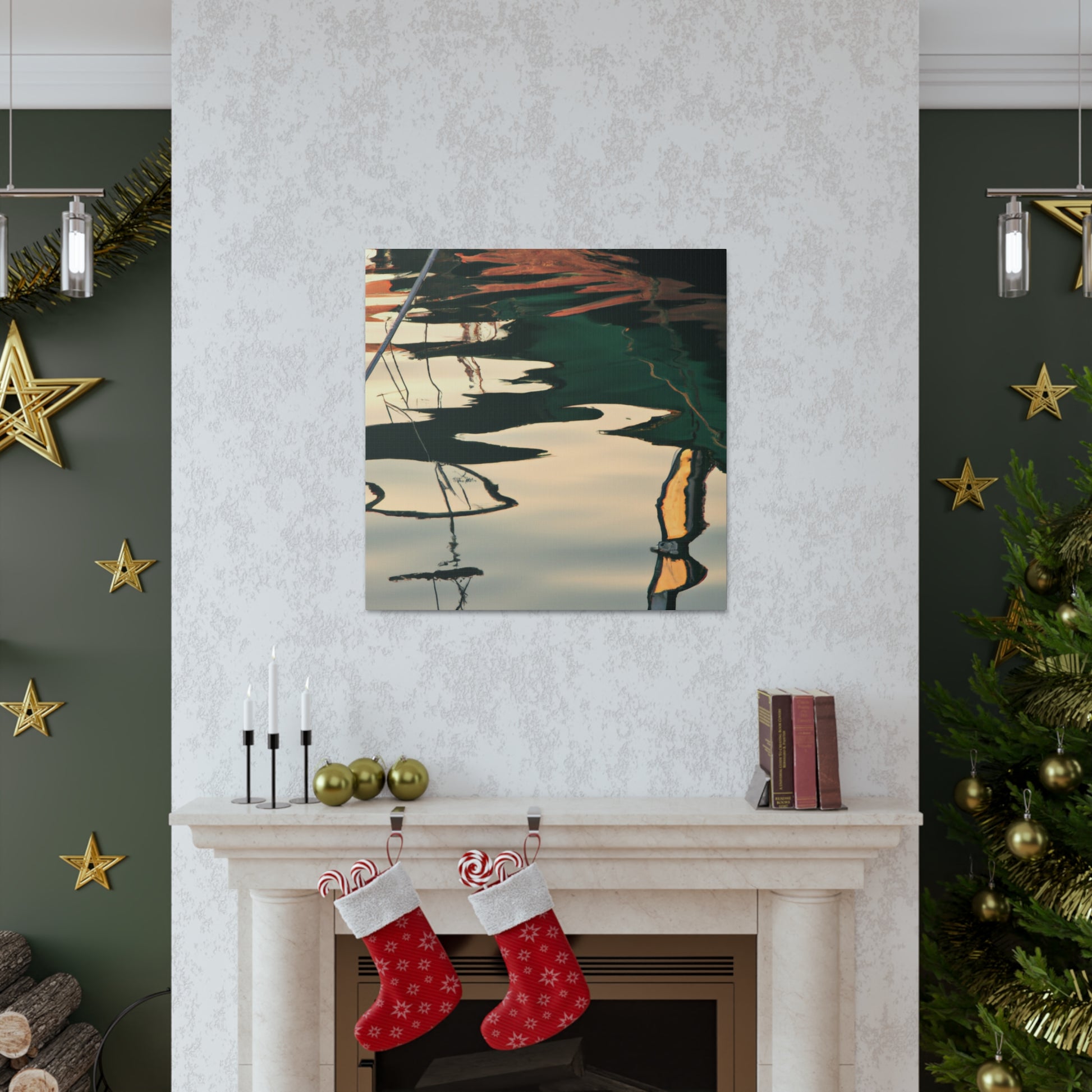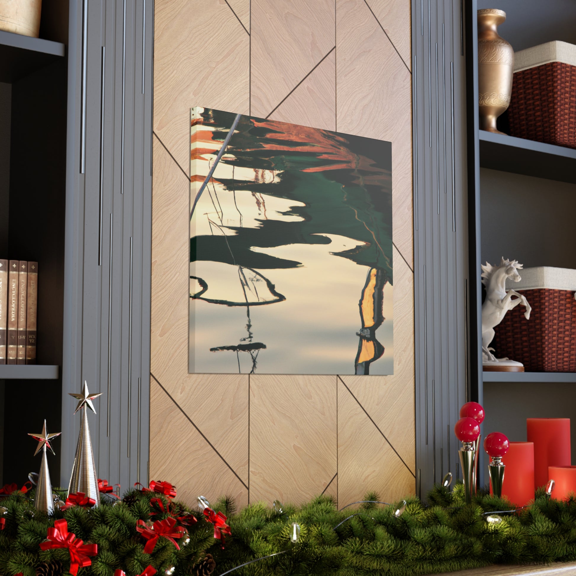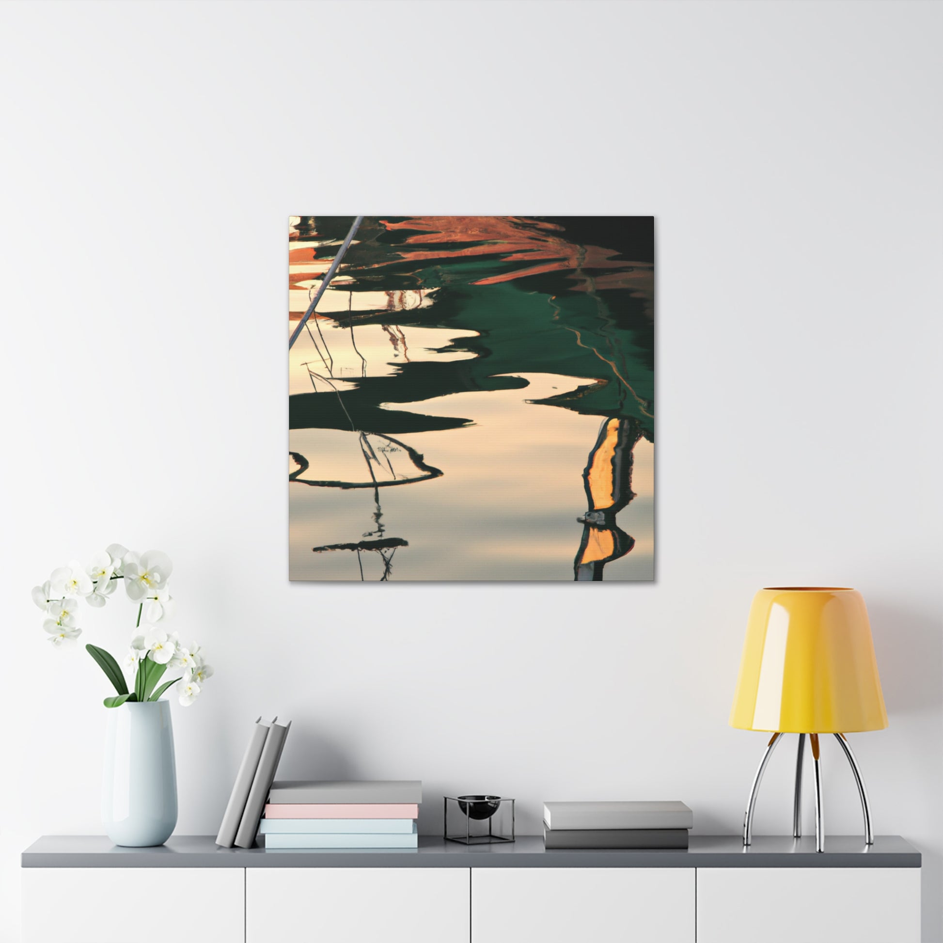 This gorgeous painting of a tranquil water body reflects the repose and beauty in nature. Carefully crafted to capture every detail, this canvas is sure to captivate those who admire it. The watercolour paints bring a vibrancy to the scene that can't be matched anywhere else. Perfect for inspiring art lovers far and wide! #waterpaintings #canvaspainting #landscapepainting #relections #tranquilscene #artistsoninstagram #beautifulart #inspiringpainting #greatart #originalartwork #natureloversand