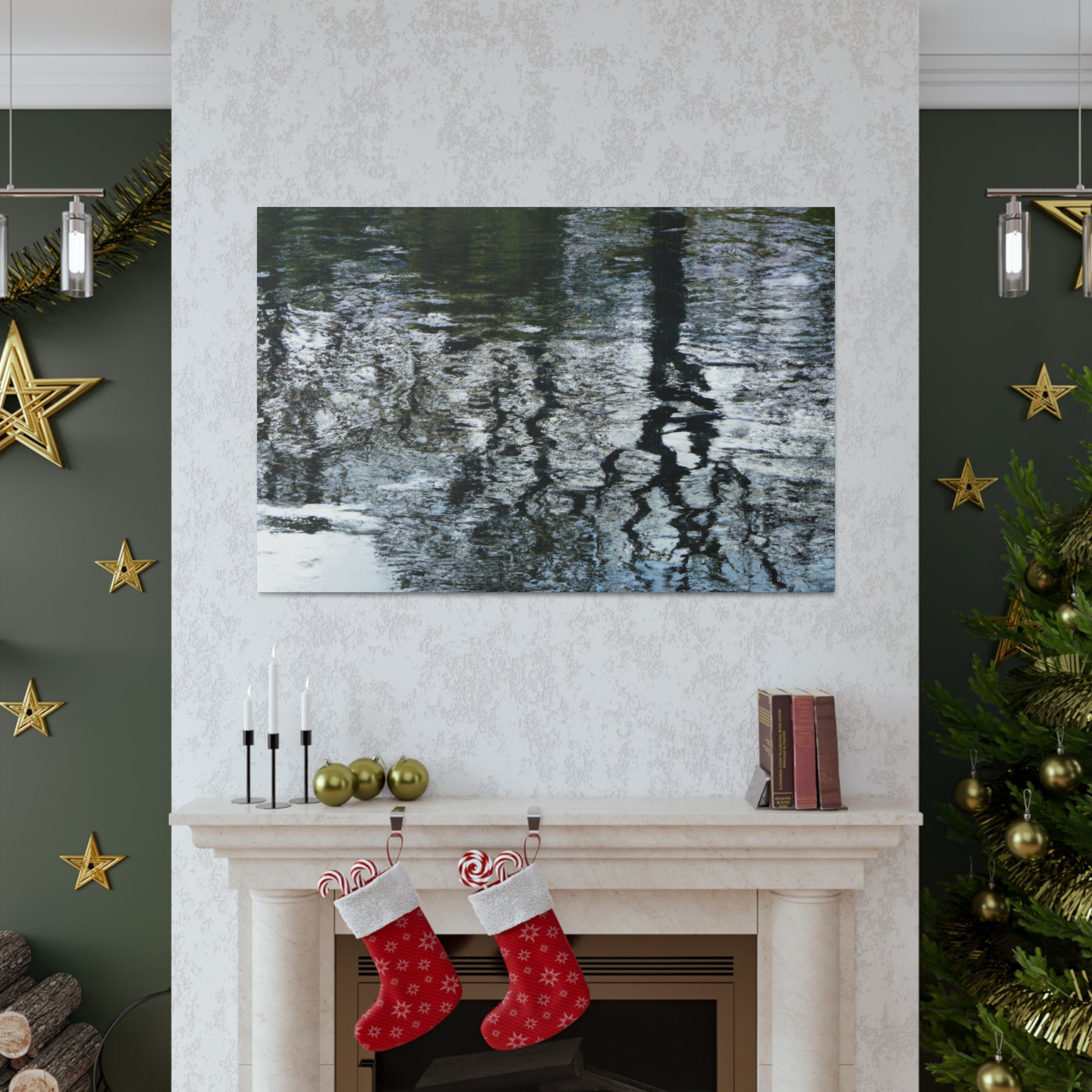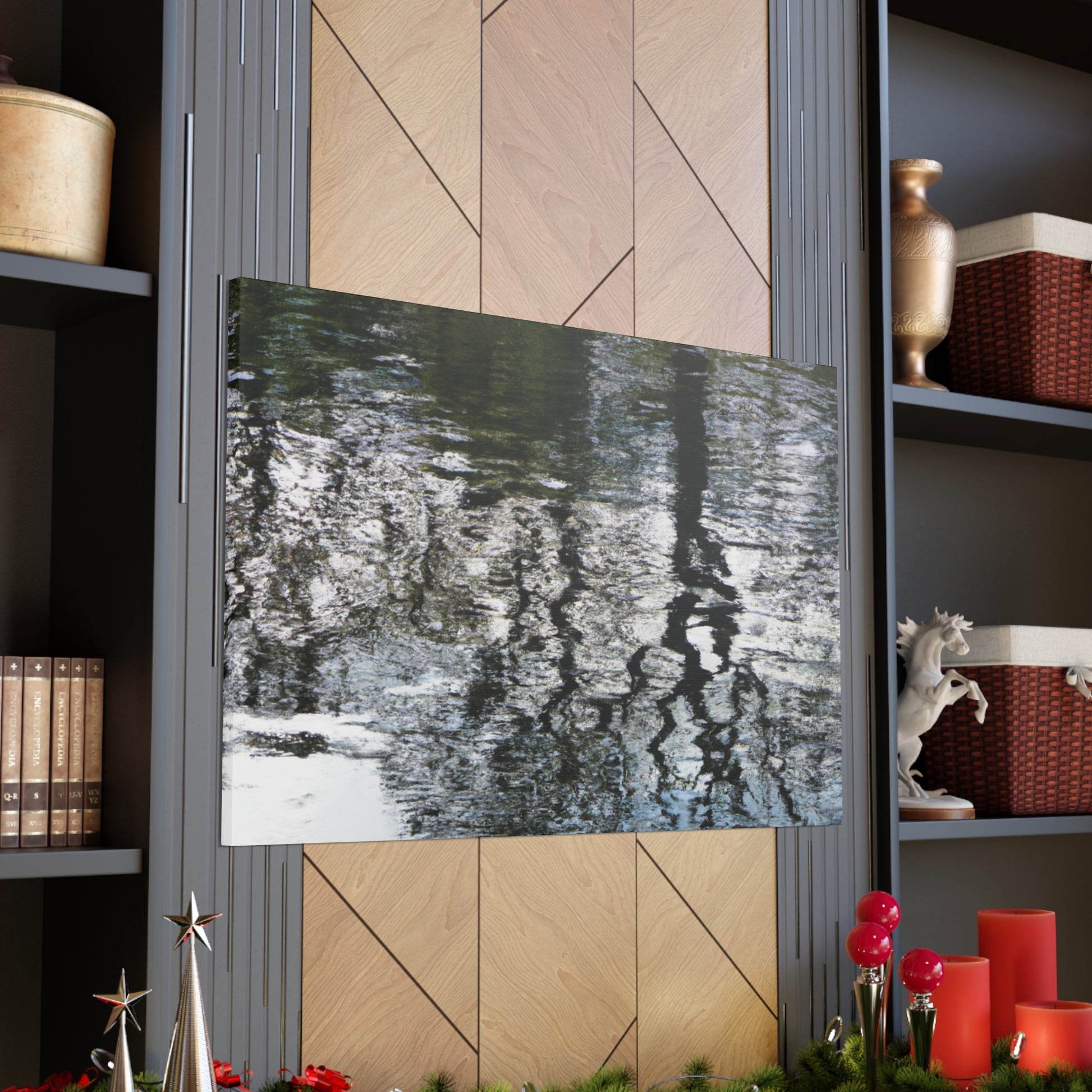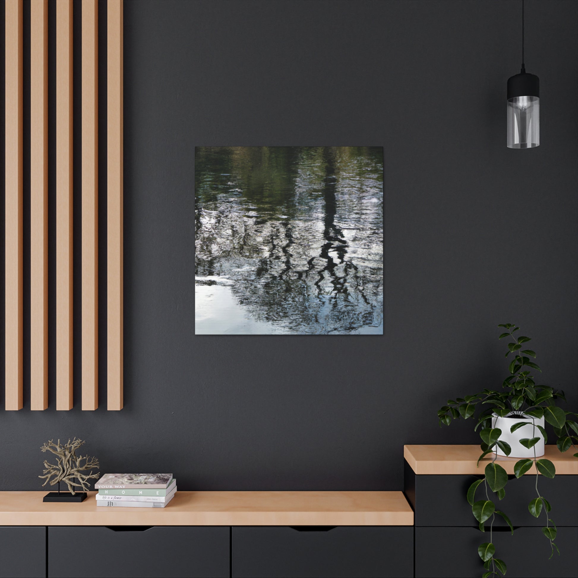 This beautiful canvas captures the watery reflections of light captured through the brushstrokes of a great artist. Vivid colors and softly blended lines create an aesthetically pleasing piece that will bring life to any wall. Whether you hang it in your living room, bedroom or office, this canvas will be sure to leave you in awe. #waterpainting #canvas #art #reflections #light #colors #brushstrokes #wallart #interior #aesthetic #details #greatartist