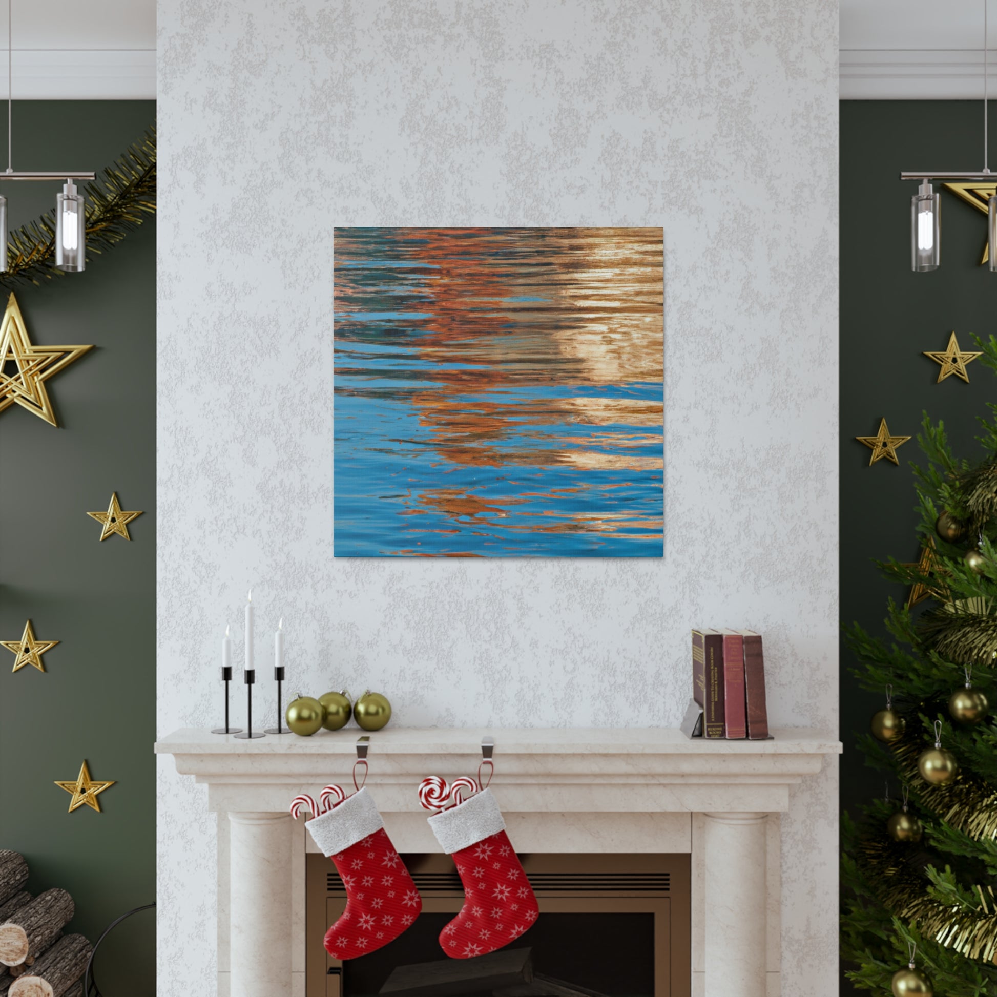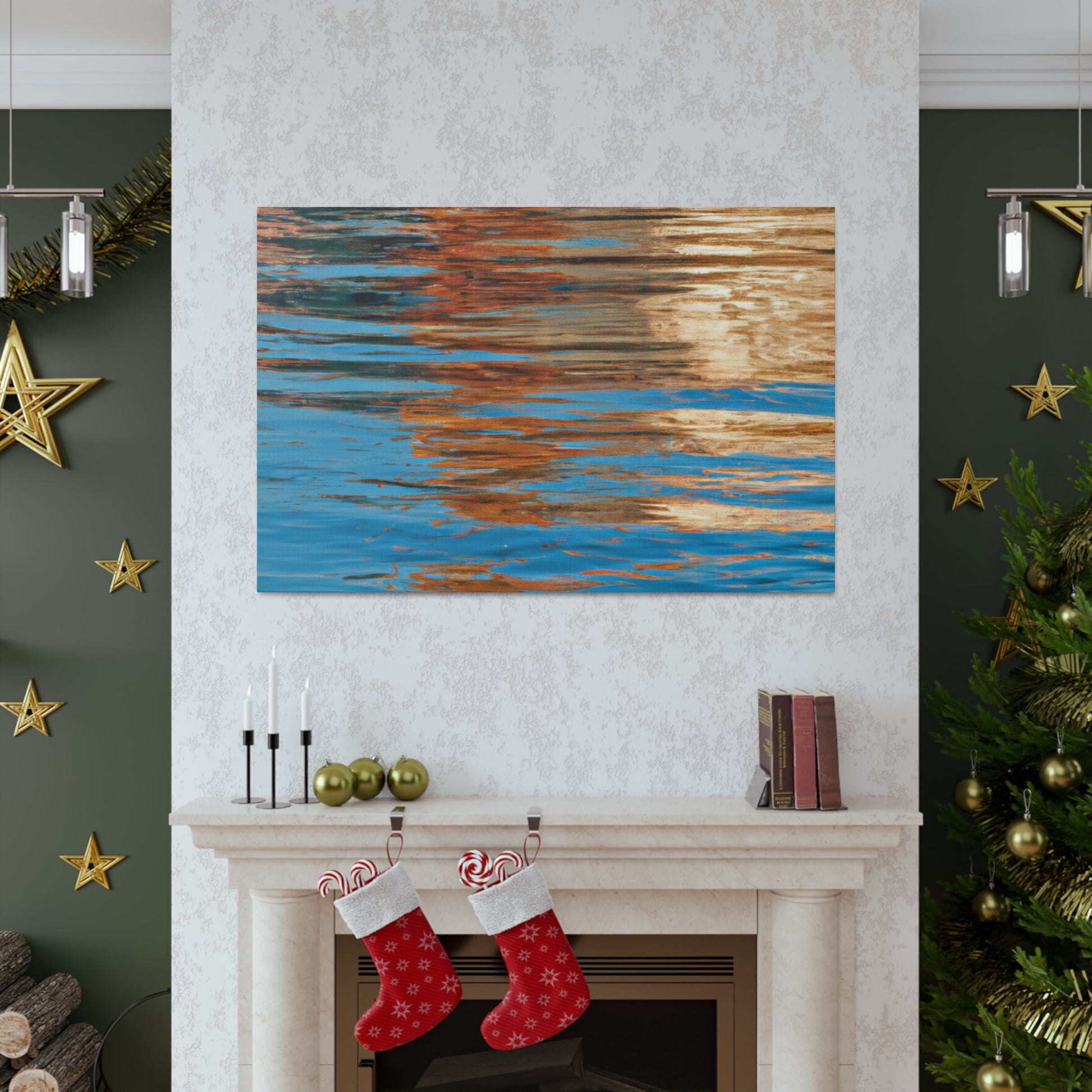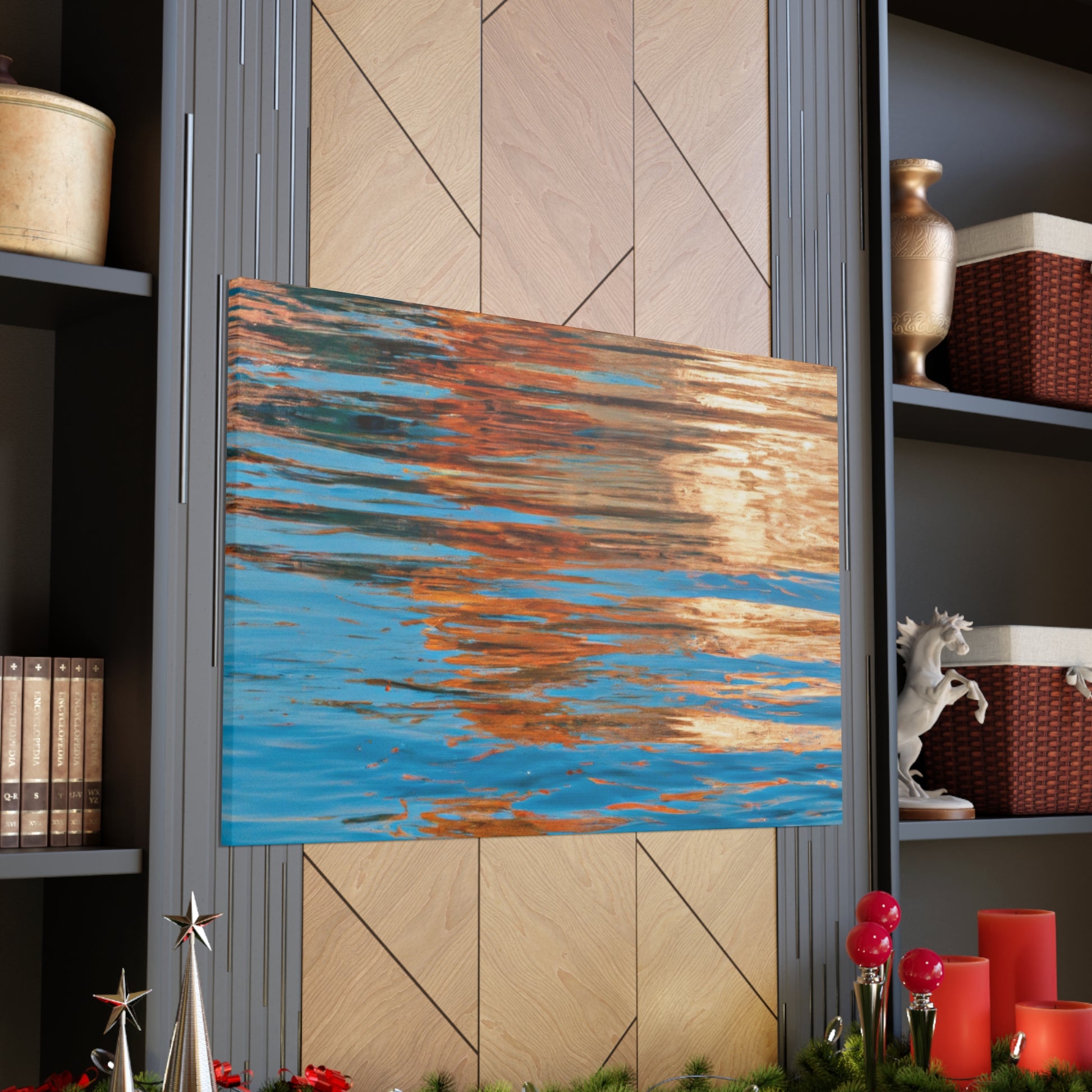 This beautiful canvas displays stunning reflections of light and water. An excellent piece of modern art for your home, this painting encapsulates the imagination and talent of the great artist. Accentuating movement and depth, this canvas is a truly unique addition to your home. #art #canvas #reflection #paining #modernart #light #water #talent #imagination #home #unique