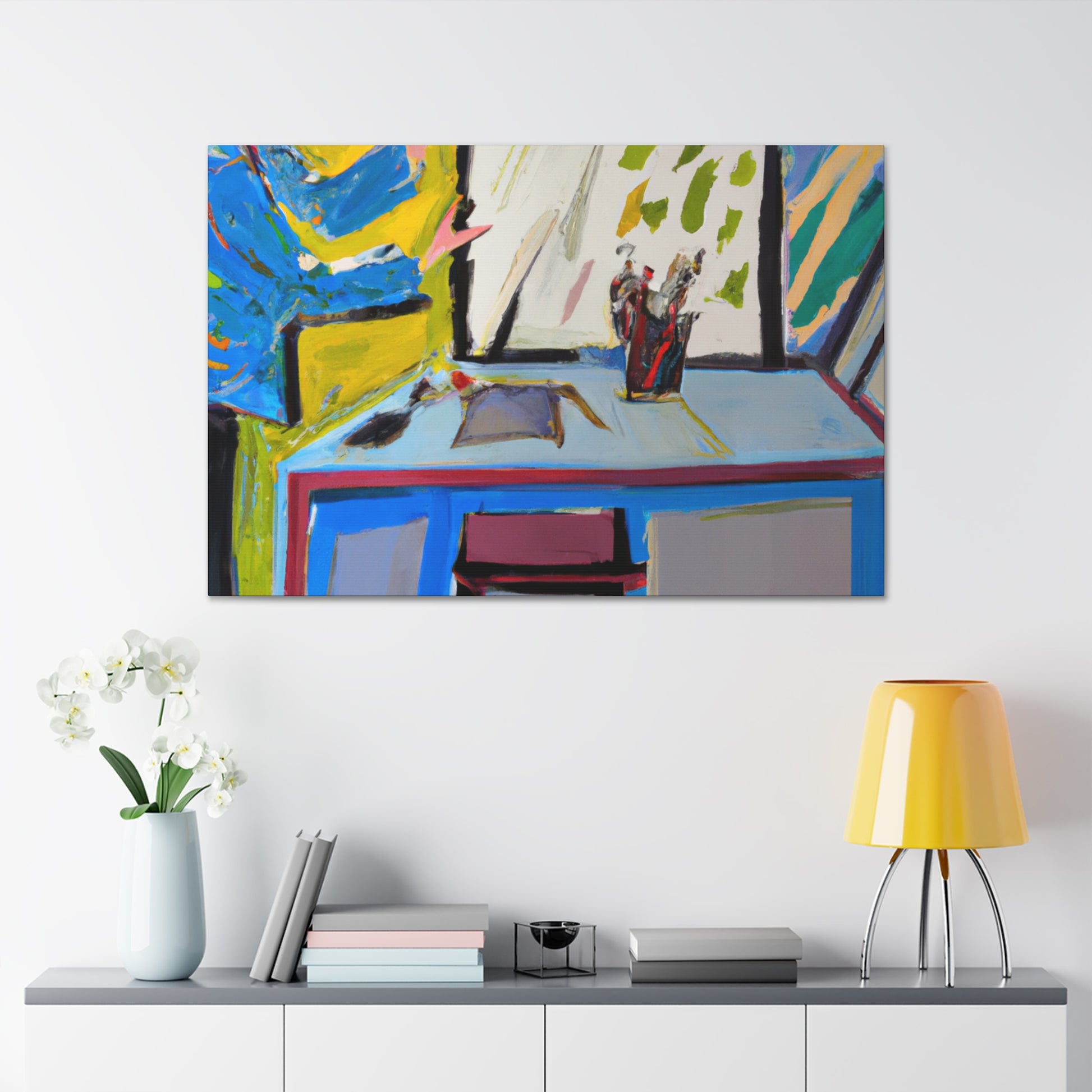 This abstract office painting has vibrant colors and smooth brush strokes that will capture your attention. The bold colors will bring energy to your office and the thought-provoking design will encourage creativity. Add this mix of unique colors to your office to bring some joy and positivity to your everyday.#abstractArt #officeDecor #wallArt #homedecor #canvasPaintings #artistsOnVideo #colorfulWalls #creativeIdeas #abstractPainting #creativeDesign #motivationAndHappiness