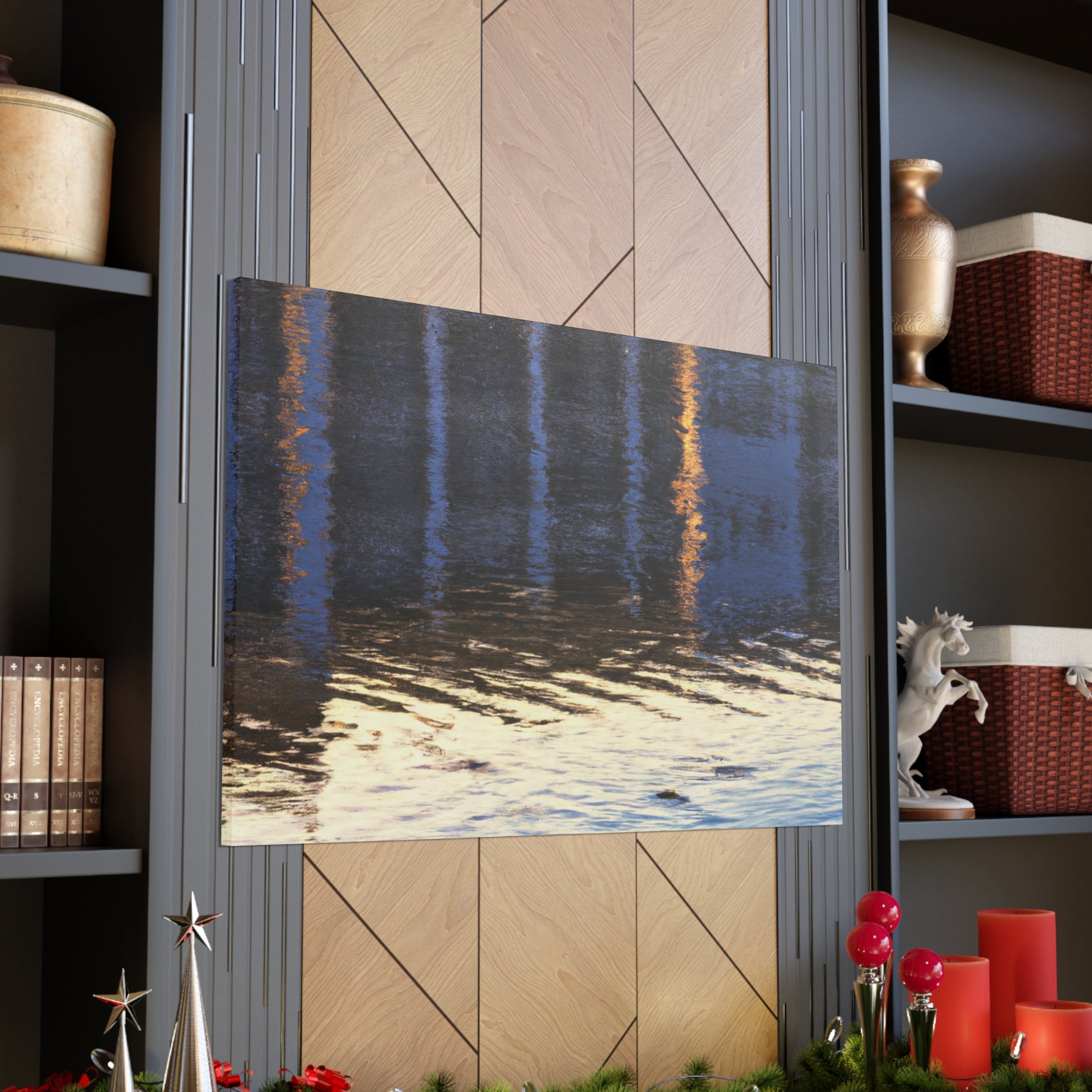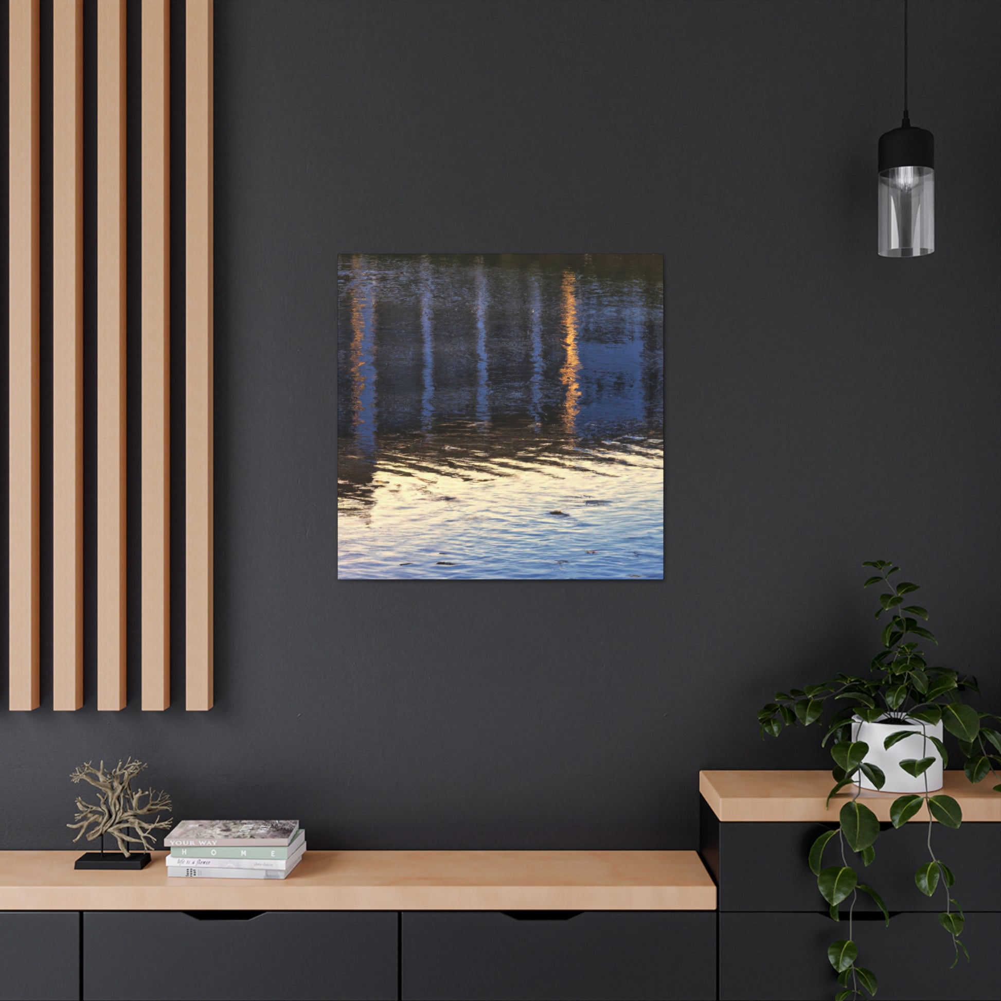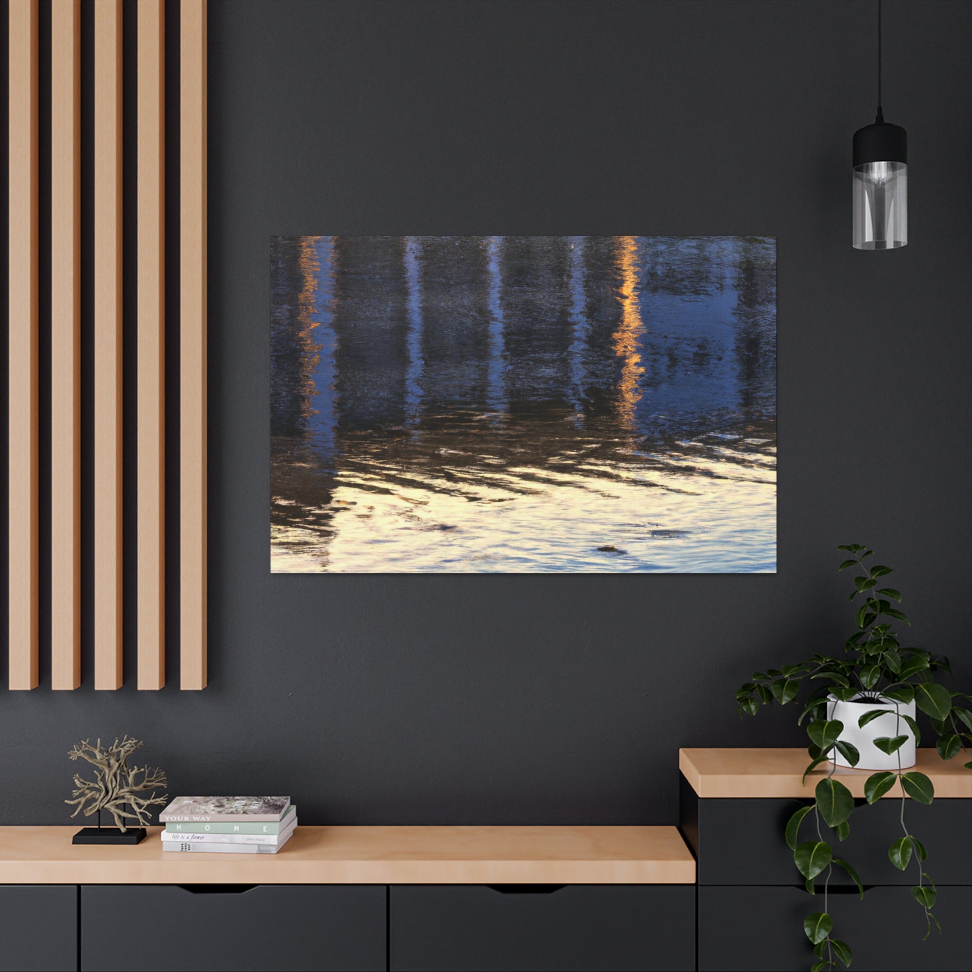 This beautiful painting is a one of a kind canvase. Created with a combination of watter colors, it has a beautiful reflexting lake surrounded by the breathtaking scenery of nature. Get lost in it's serenity and beauty. It brings an artistic touch to any room! #art #painting #canvase #waterreflects #naturescenery #landscape #lakeview #ootd #peacefulvibes #roomdecor #roominspo and #wallart