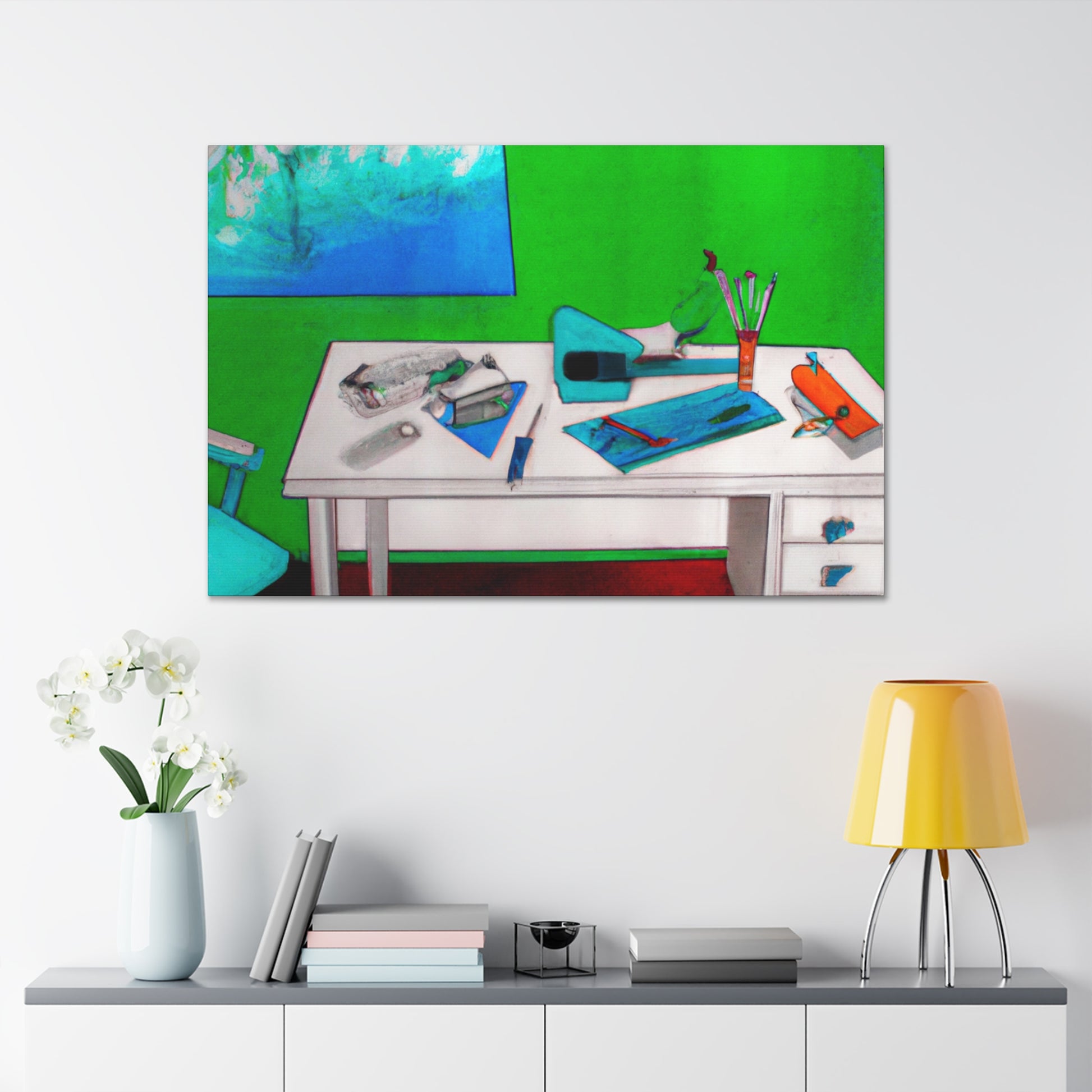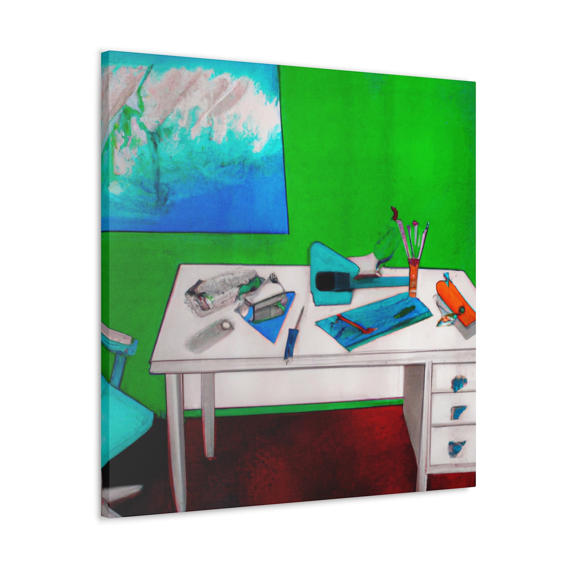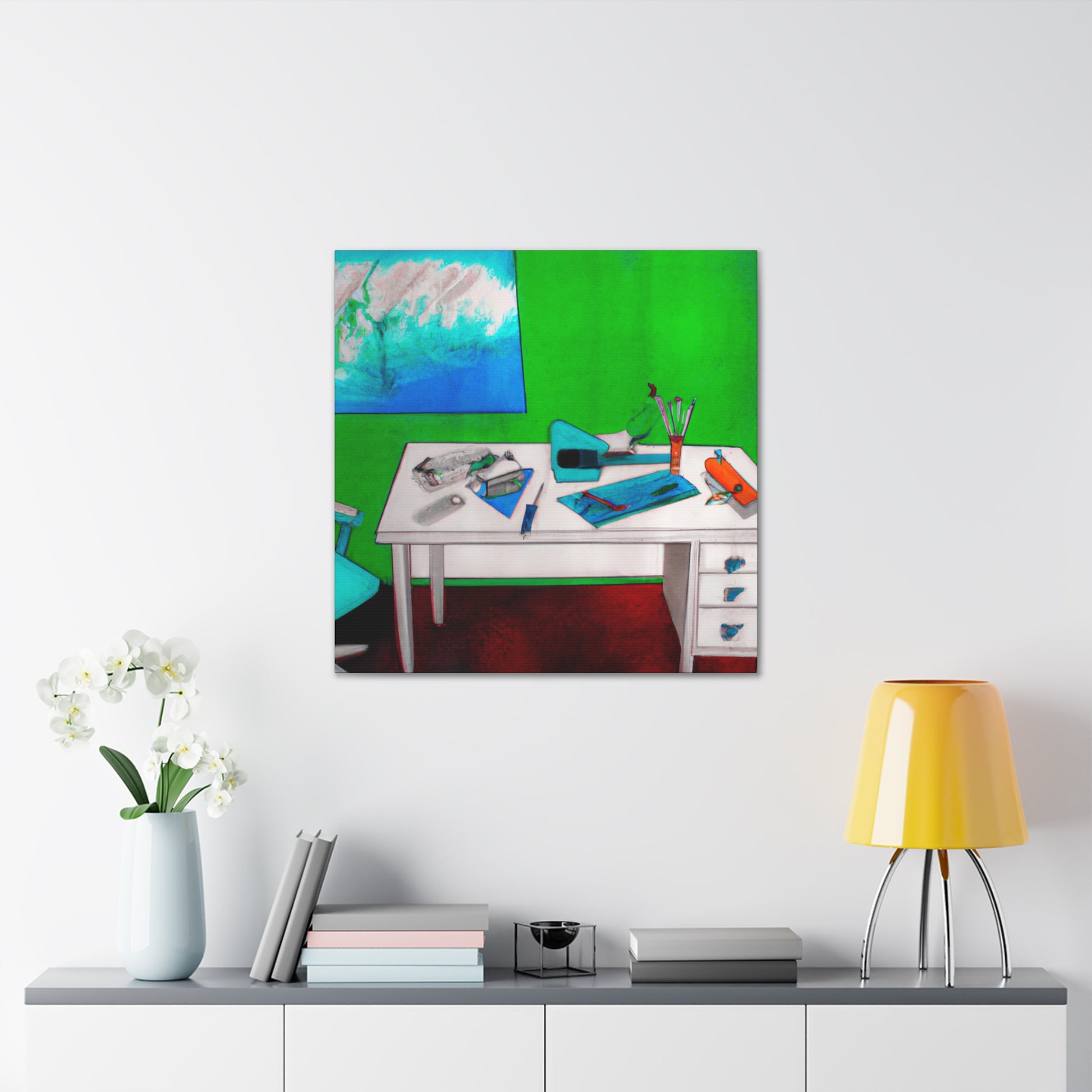 Make a bold statement in your office with this stunning abstract painting. It provides a nice subtle contrast to the traditional corporate decor. The base is painted with a bright vivid color, the mixed colors create a unique and eye-catching mix that stands out against the possible corporate tones. The canvas has been finished with a special clear coat so it’s protected against dust and dirt. #boldstatement #abstractart #ofcoredecor #vividcolors #canvas #statementpiece #brightcolors #modernoffice #wallart #contrast #protection and #artprotectors
