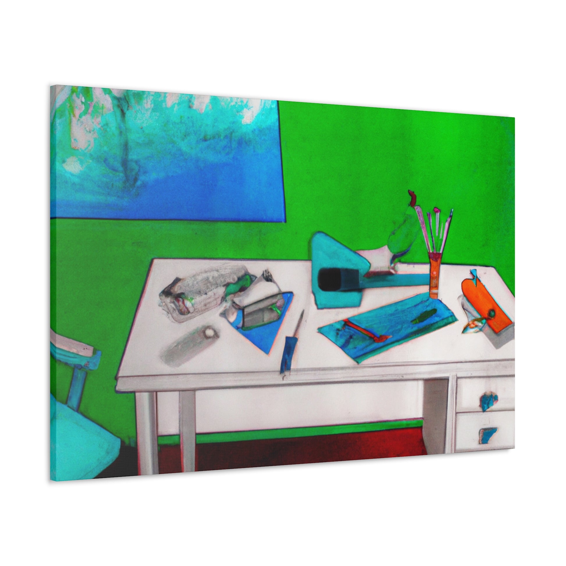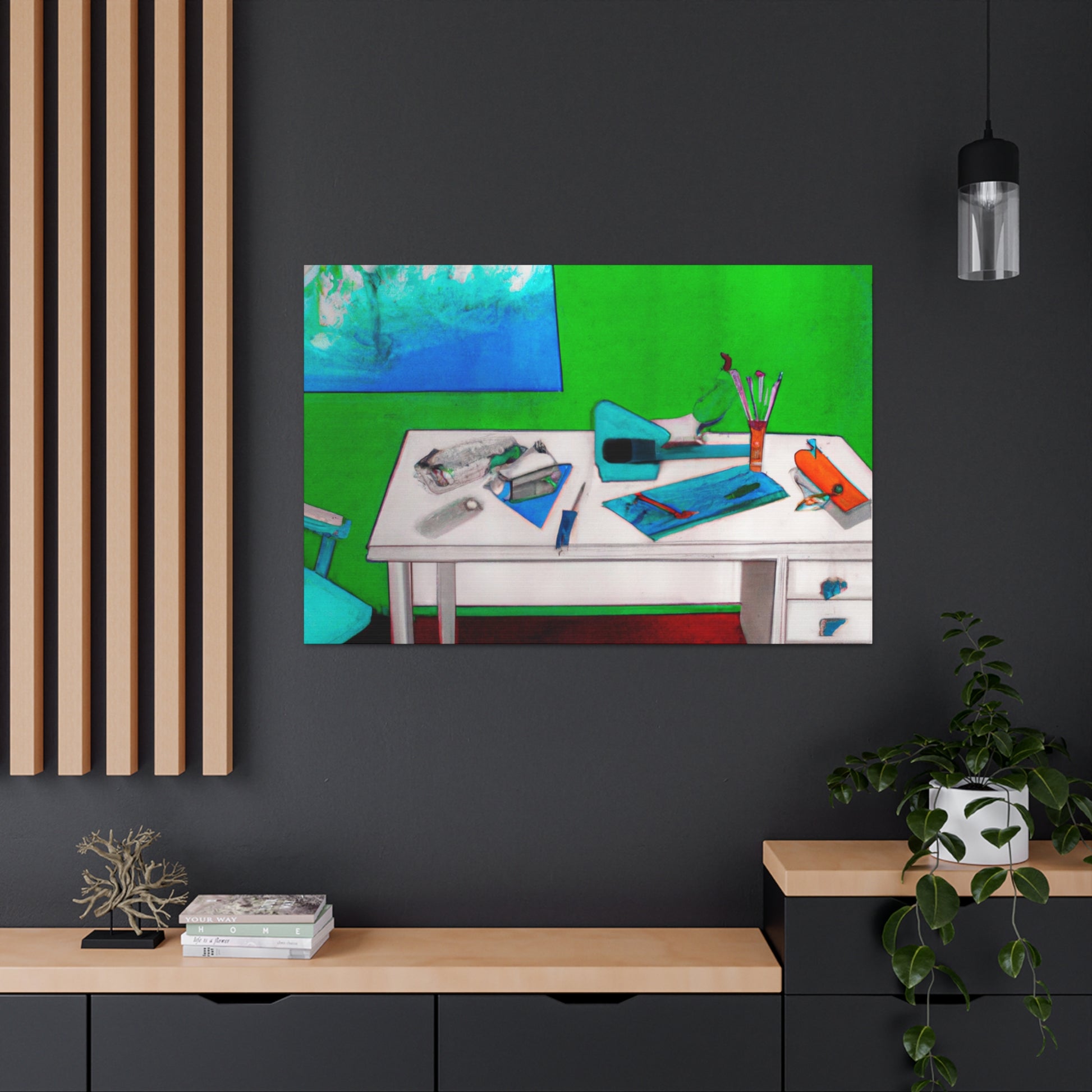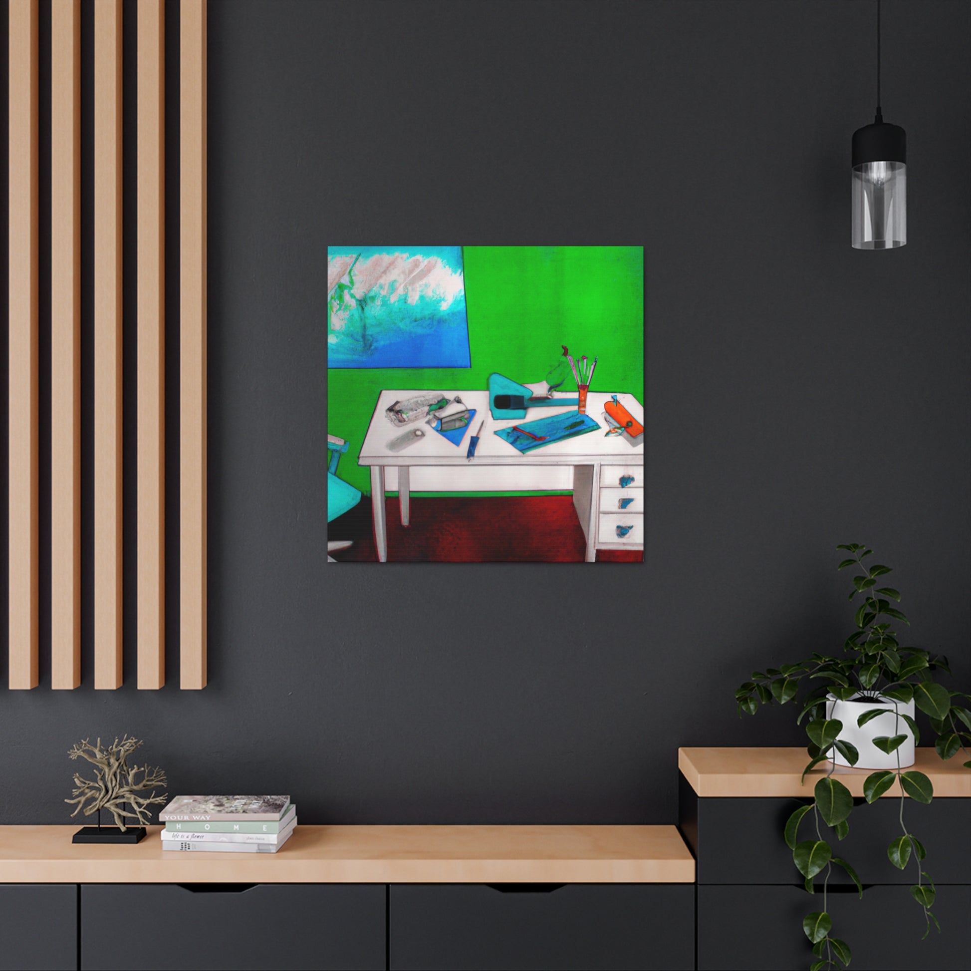 Make a bold statement in your office with this stunning abstract painting. It provides a nice subtle contrast to the traditional corporate decor. The base is painted with a bright vivid color, the mixed colors create a unique and eye-catching mix that stands out against the possible corporate tones. The canvas has been finished with a special clear coat so it’s protected against dust and dirt. #boldstatement #abstractart #ofcoredecor #vividcolors #canvas #statementpiece #brightcolors #modernoffice #wallart #contrast #protection and #artprotectors