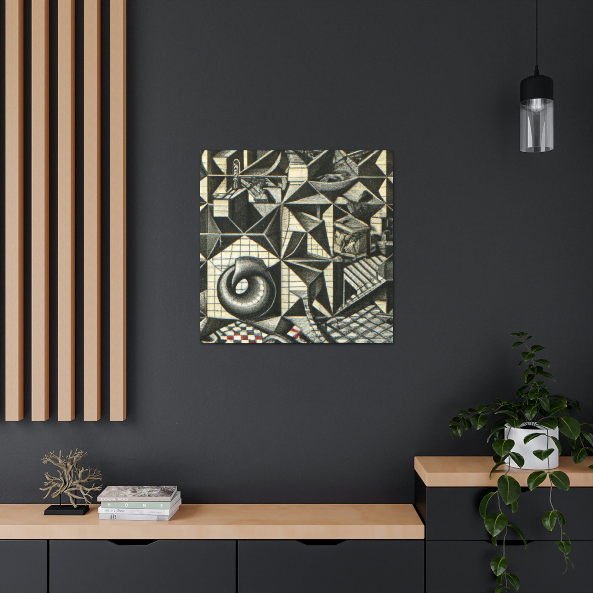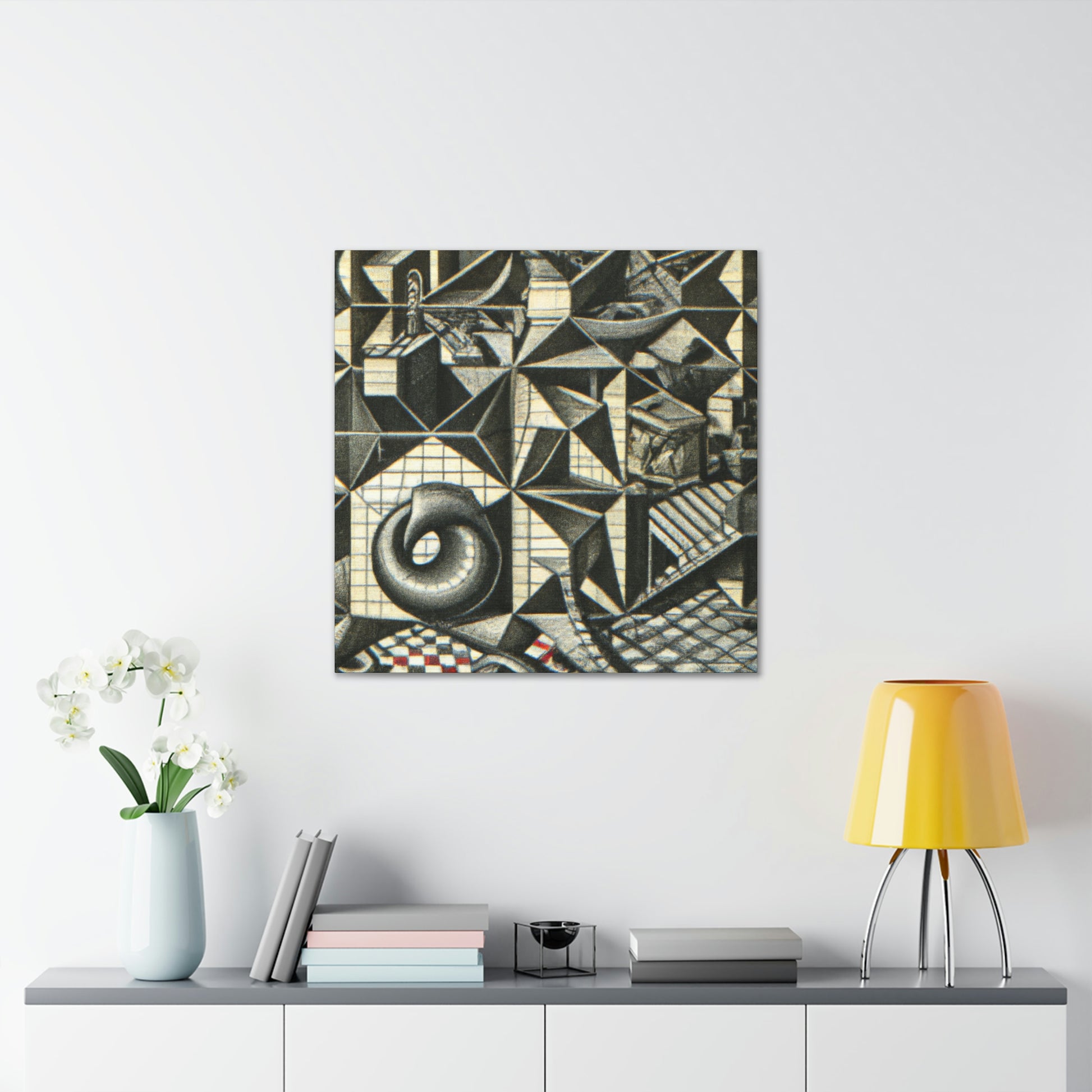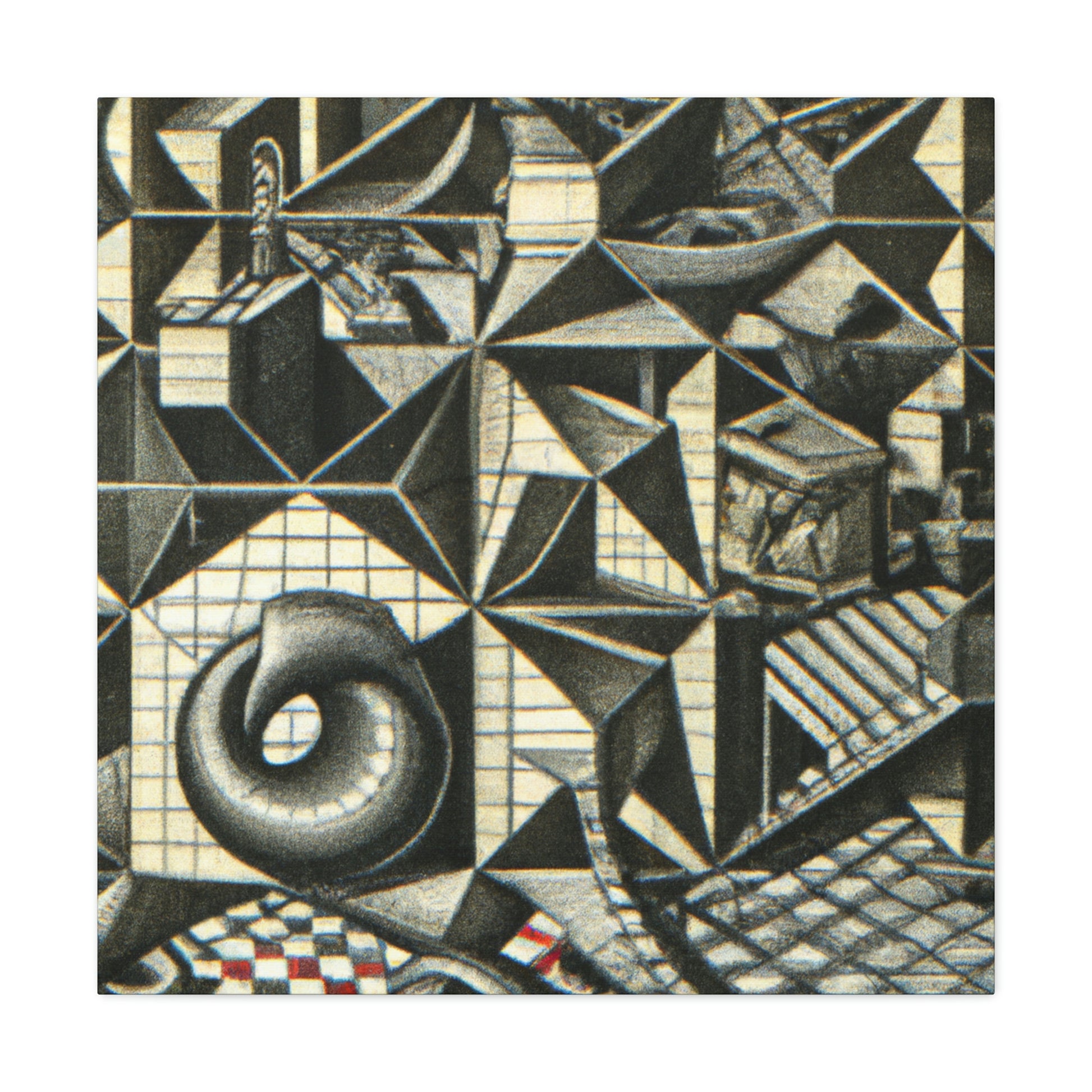 This M.C. Escher Canvas prints a sumptuous mezzotint on canvas with intricate detail, mathematical precision and eye-popping optical illusions. Enjoy the symbolic artistry and colors of this iconic artist right in your home. This museum-quality display of M.C. Escher will create a lasting visual impression of beauty and creativity. #Lithography #Mezzotint #MCEscher #DutchArtist #OpticalIllusions #Printmaking #Engraving #MathArt #ColorfulArt #Surrealism #AbstractDesign