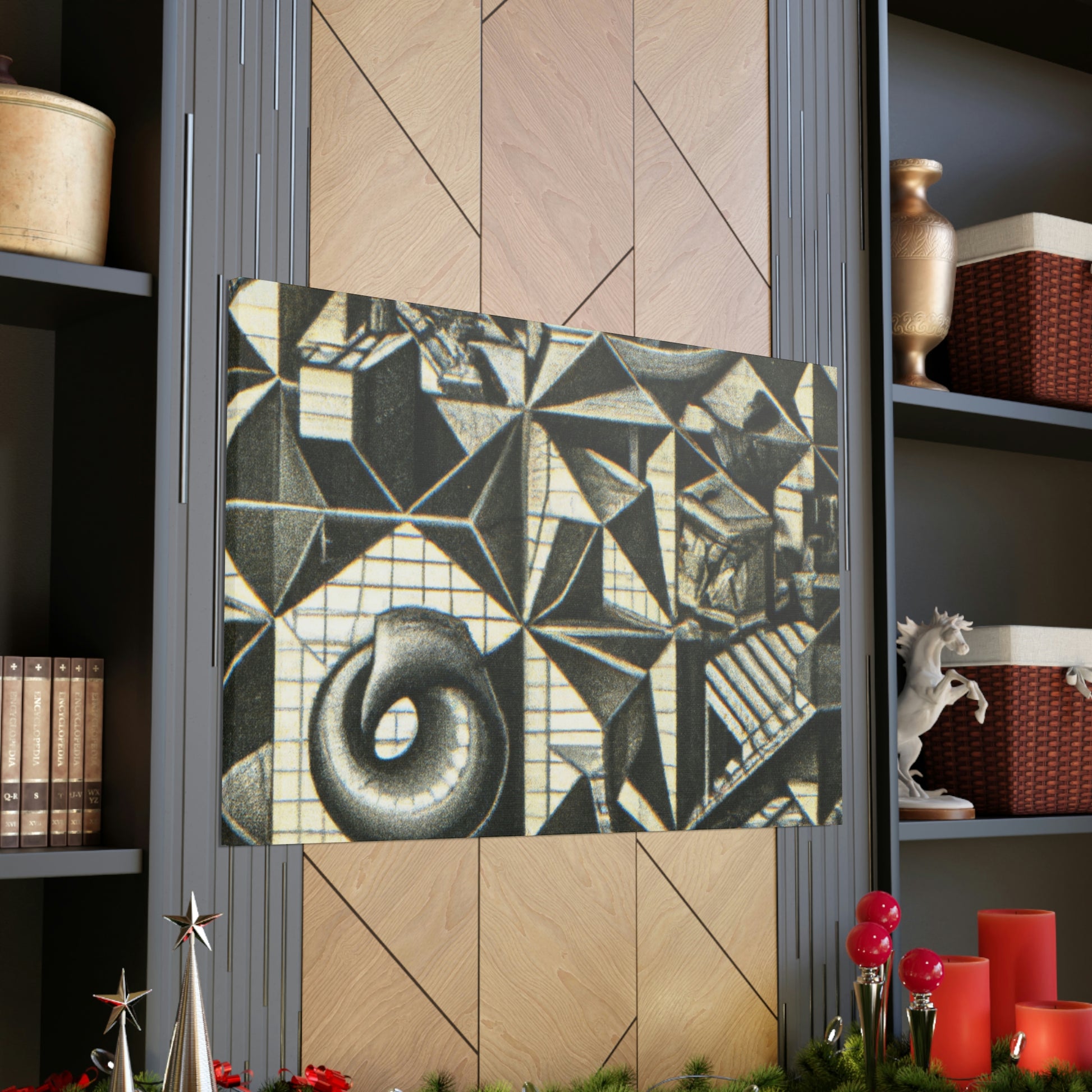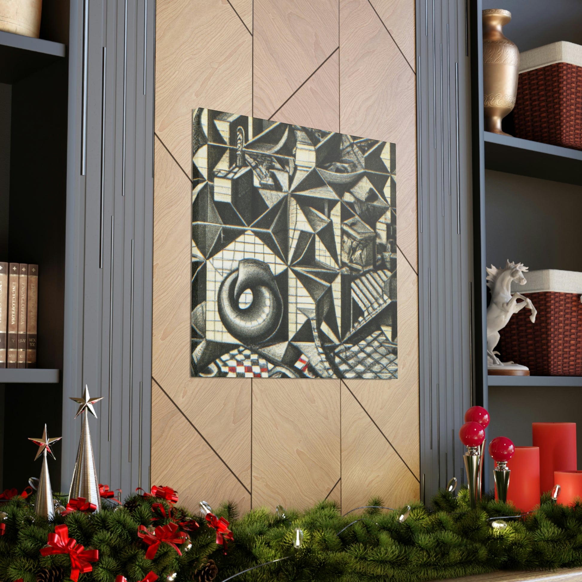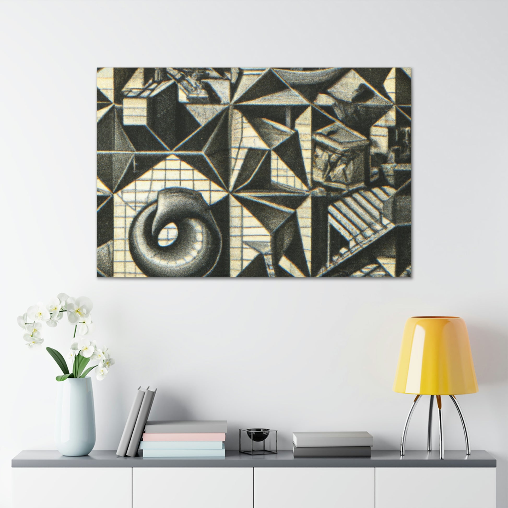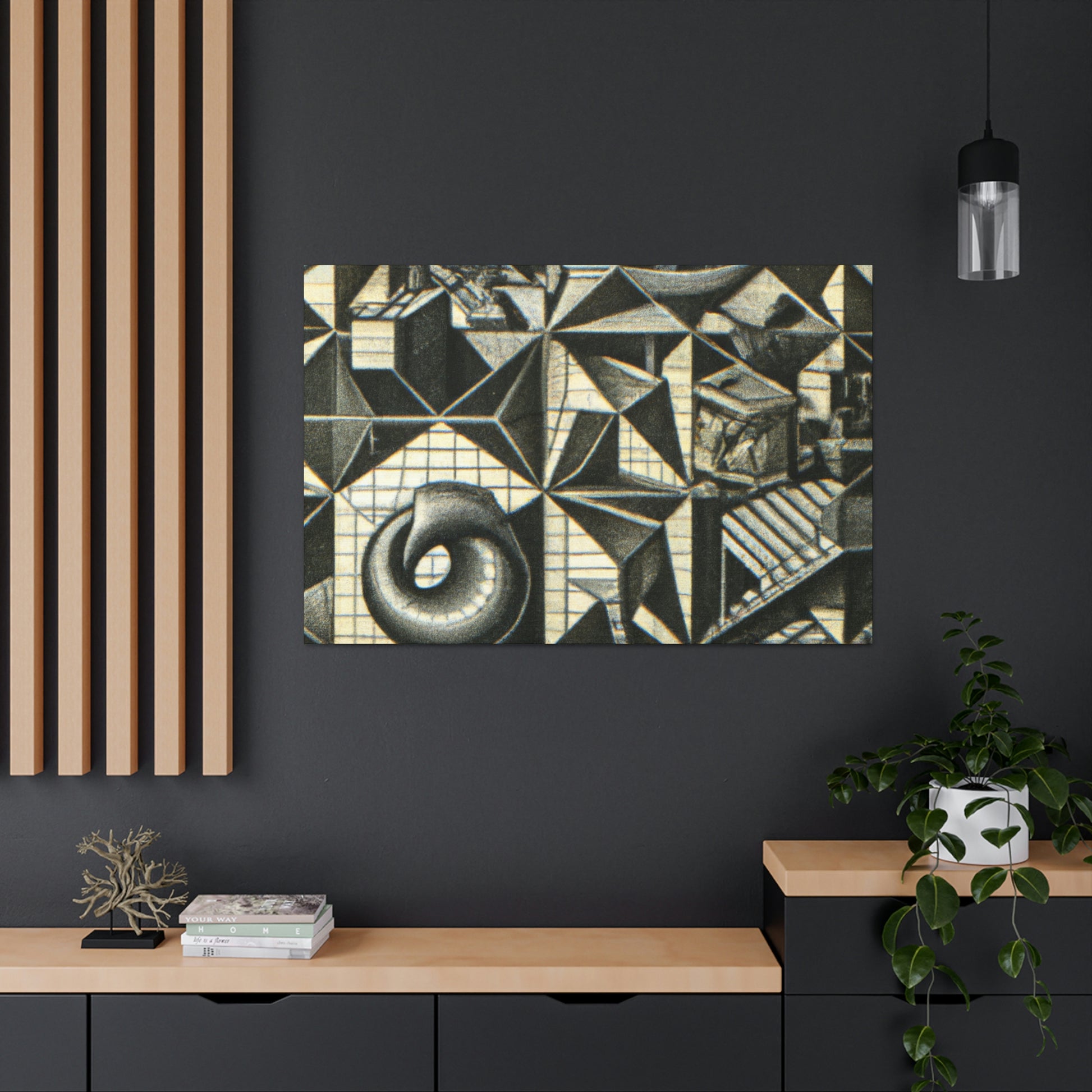 This M.C. Escher Canvas prints a sumptuous mezzotint on canvas with intricate detail, mathematical precision and eye-popping optical illusions. Enjoy the symbolic artistry and colors of this iconic artist right in your home. This museum-quality display of M.C. Escher will create a lasting visual impression of beauty and creativity. #Lithography #Mezzotint #MCEscher #DutchArtist #OpticalIllusions #Printmaking #Engraving #MathArt #ColorfulArt #Surrealism #AbstractDesign
