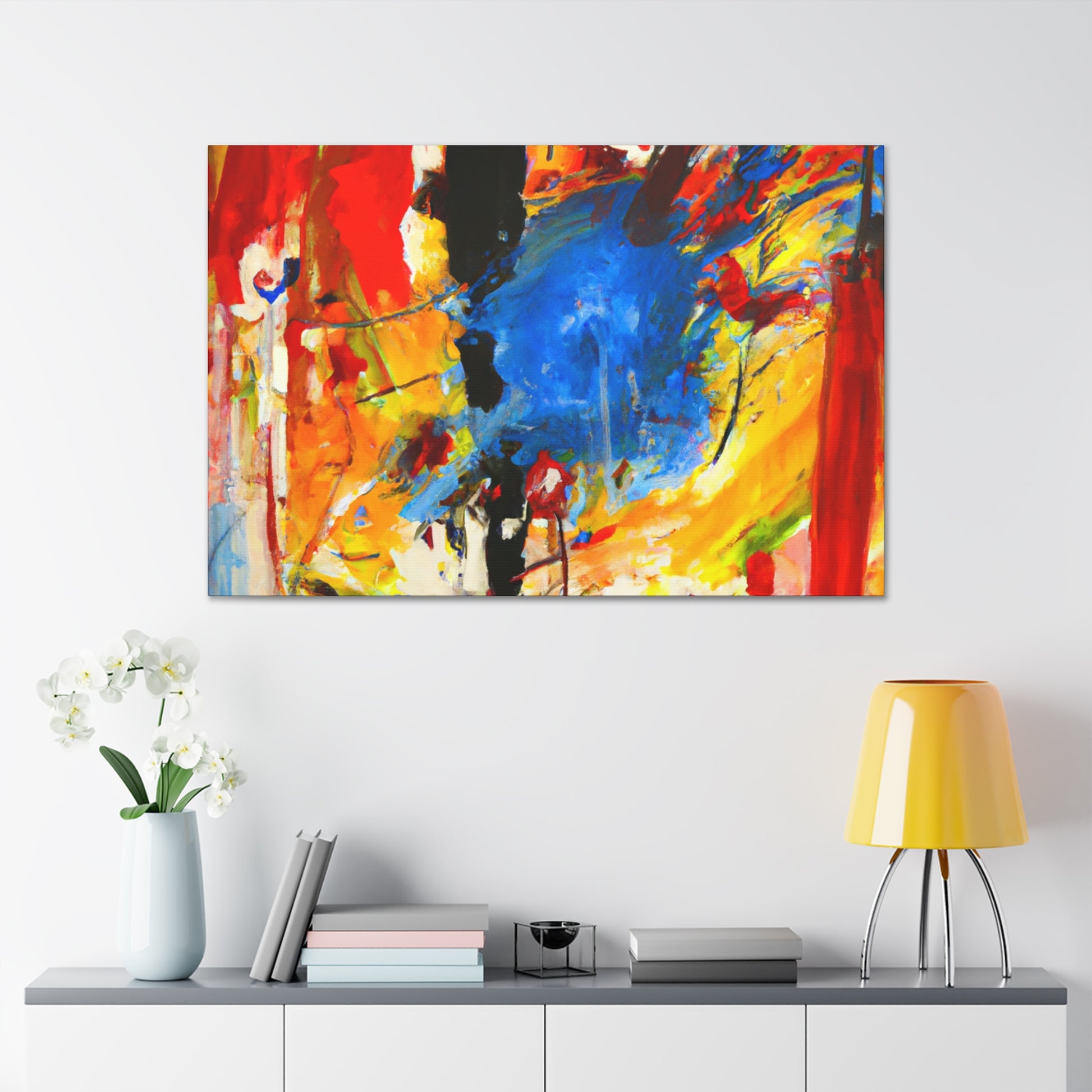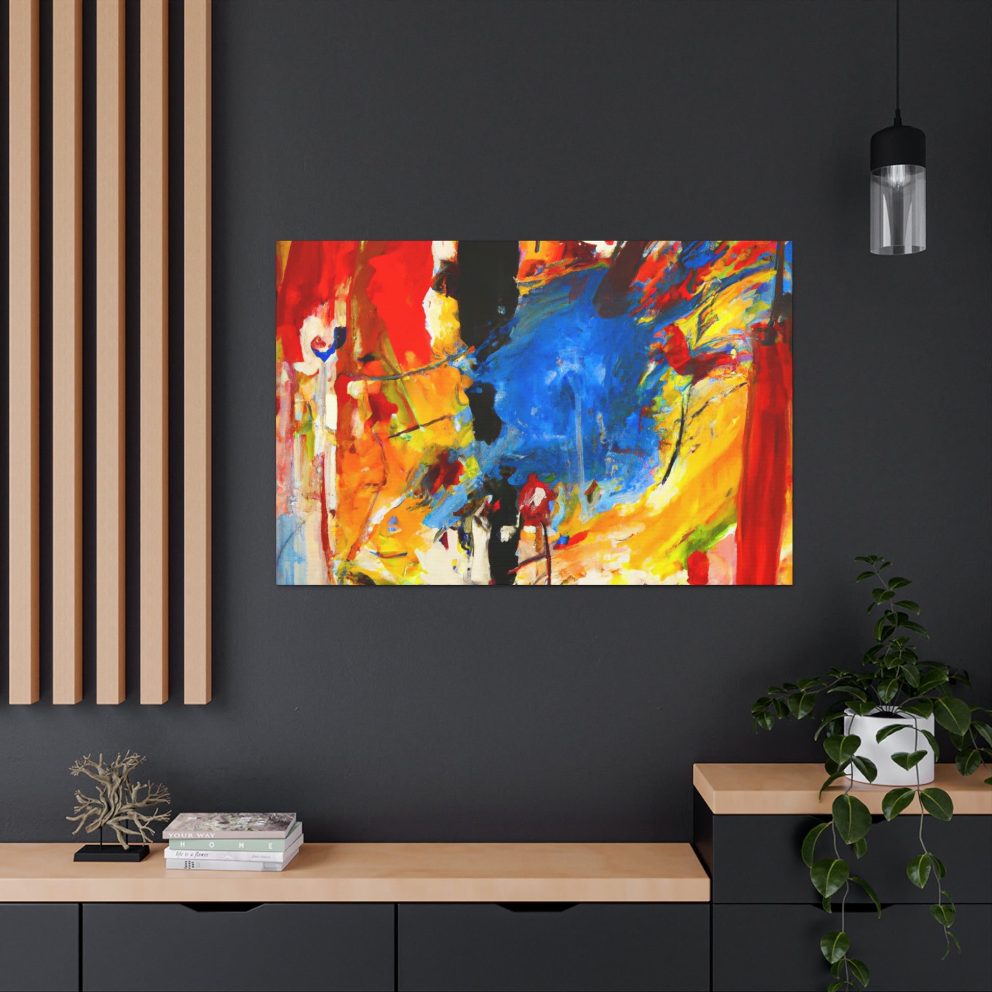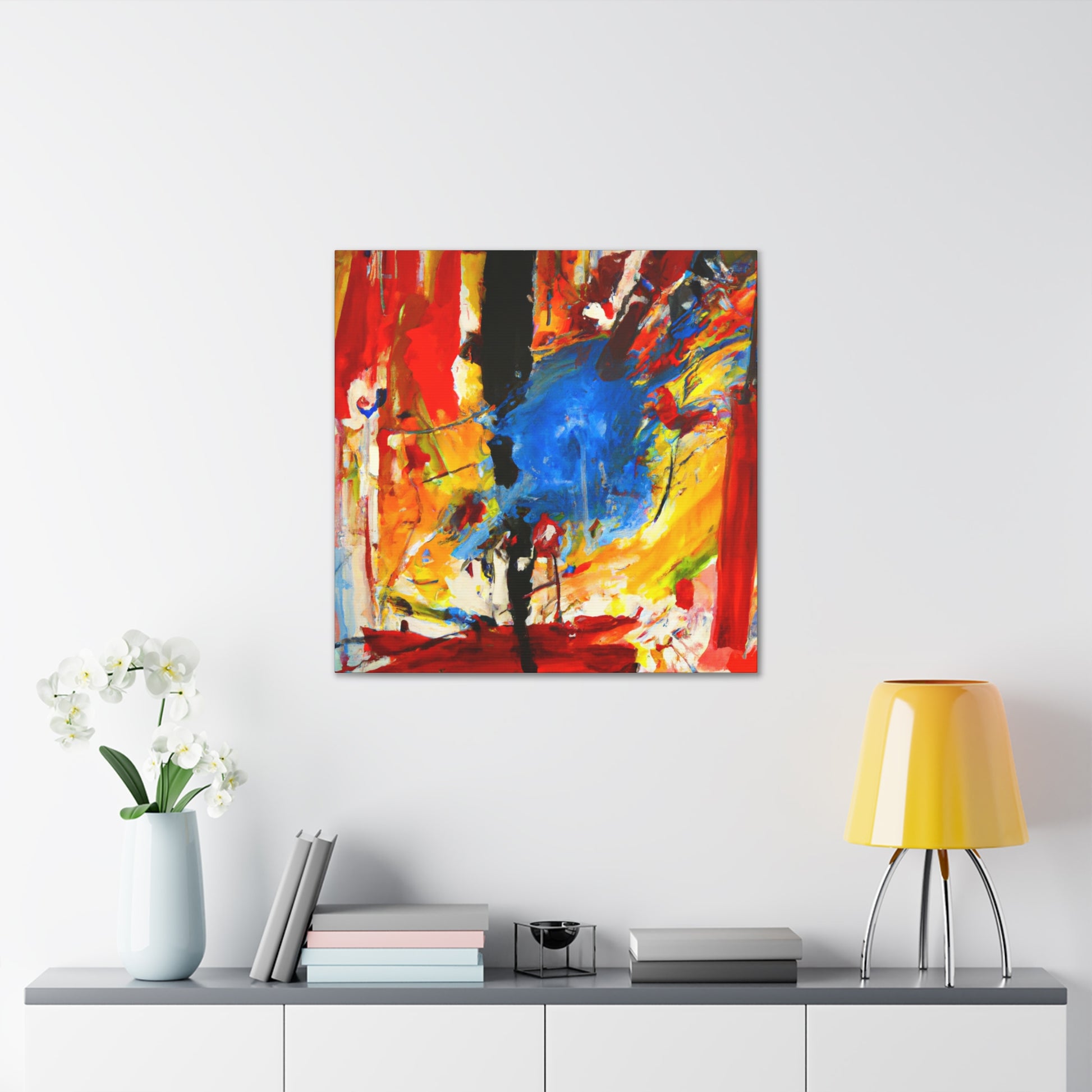 This abstract painting is a great addition to any office space! The bold and vivid colors in the painting are sure to add a pop of color to your decoration. With its modern design, this painting is perfect to add a touch of stylish artistry to any area. Showcasing a unique texture and print, this canvas is guaranteed to bring an interesting, yet bold look to your home or office decor. #AbstractPainting #CanvasArt #OfficeDecor #ModernDesign #WallDecor #UniqueTexture #VividColors #BoldPrint #StylishArtistry #InterestingLook #OnlineArtGallery