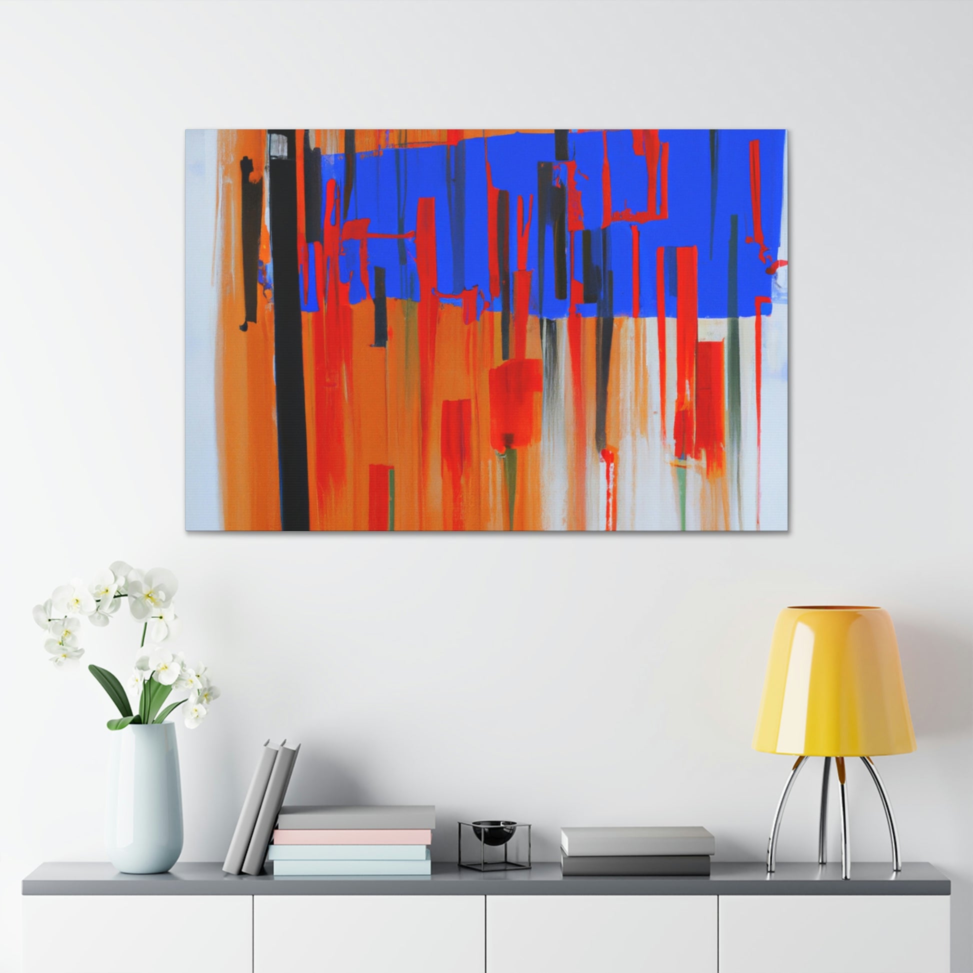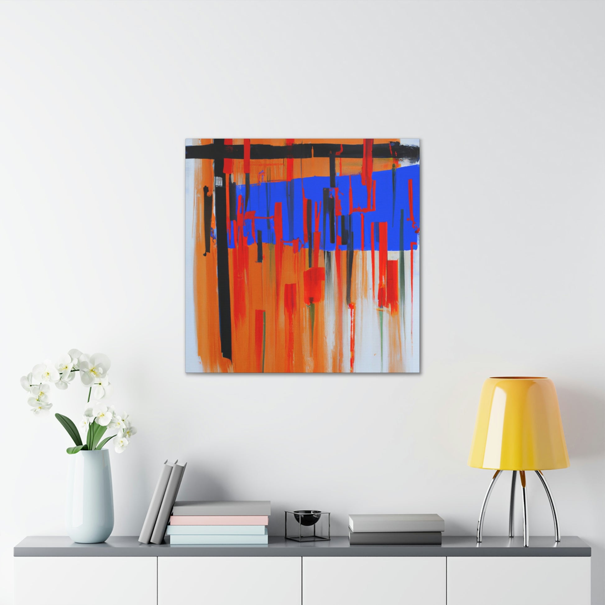This abstract office painting will make your workplace look modern and tranquil. Perfect for brightening up meetings, conference rooms, and work desks, this canvas will give your office a unique abstract feel. Printed on gallery-grade canvas in high-resolution, the painting will bring long-lasting color and shine to your décor. Its loose brushstrokes and contrasting shades of grey, blue, and yellow offer an abstract but calming vibe. Bring a touch of creativity and a sense of calm to your office by adding this canvas today. #officepainting #abstractart #canvas #gallerygrade #highresolution #modern #calming #brushstrokes #contrastingcolours #greyshades #blueshades #yellowshades #brighteroffice