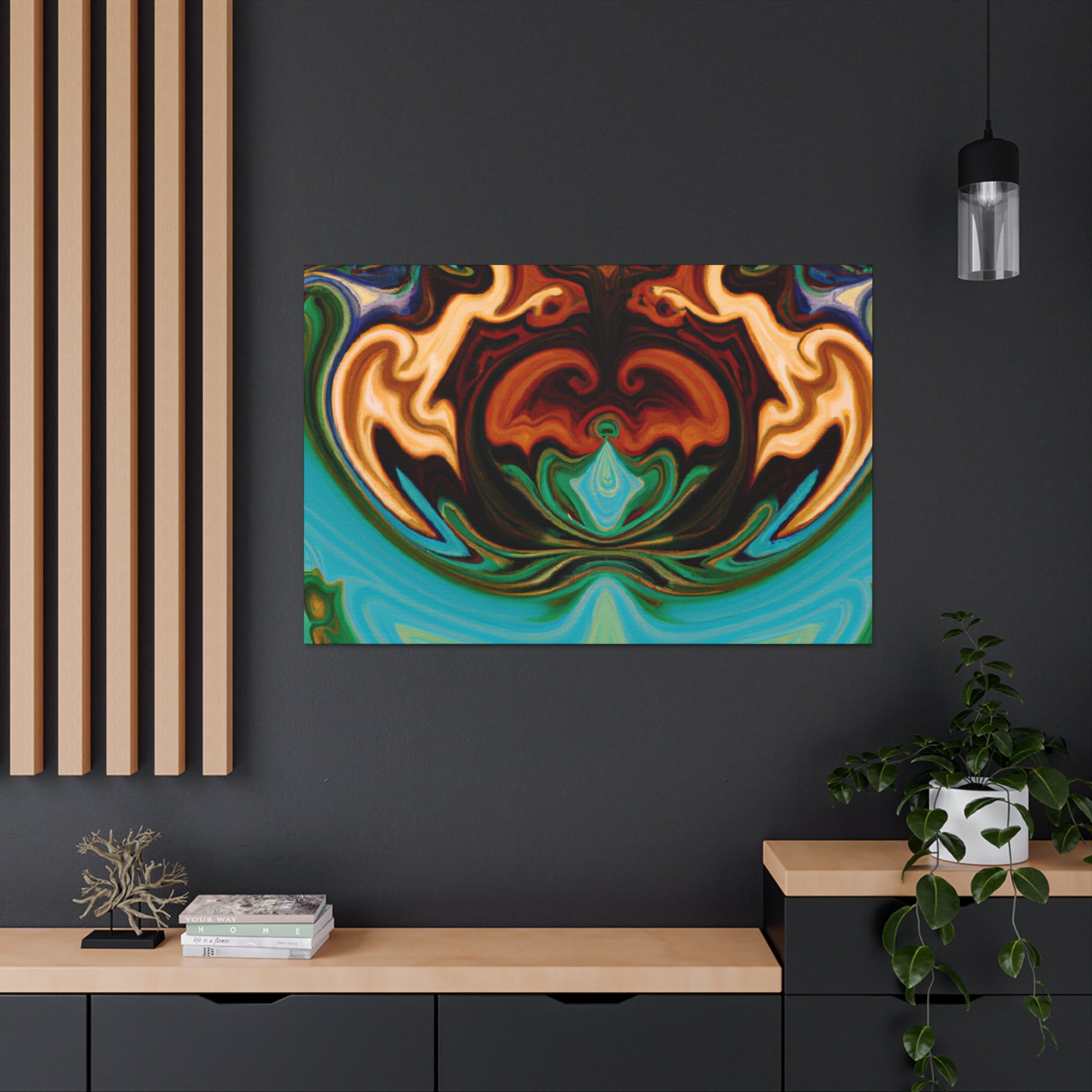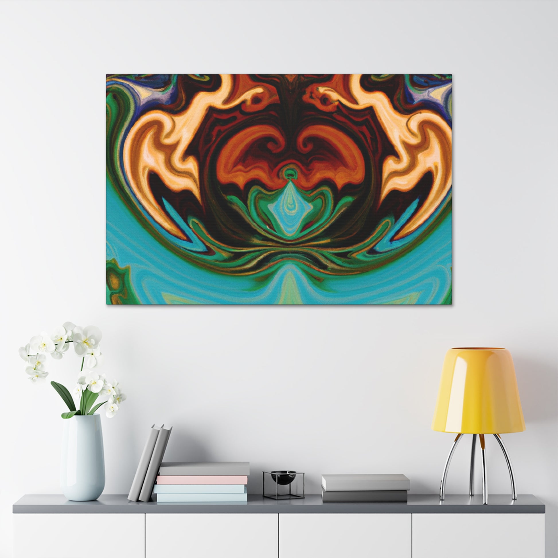 This canvas is a must-have for all art enthusiasts! It features a unique design inspired by some of the great surrealist artists and prints vivid colors in a unique and mesmerizing pattern. Whether its hung in your living room or office, this canvas will be the perfect addition to your décor space! Its eclectic vibes and warm tones will add a special touch to literally any space, making it stand out and enhancing your home's atmosphere. #EcclecticVibes #Surrealism #Patterns #UniqueDesign #TripyPainting #ArtLovers #VividColors #LivingRoomDecor #OfficeDecor #WallDecoration #HomeDecor and #ArtEnthusiasts