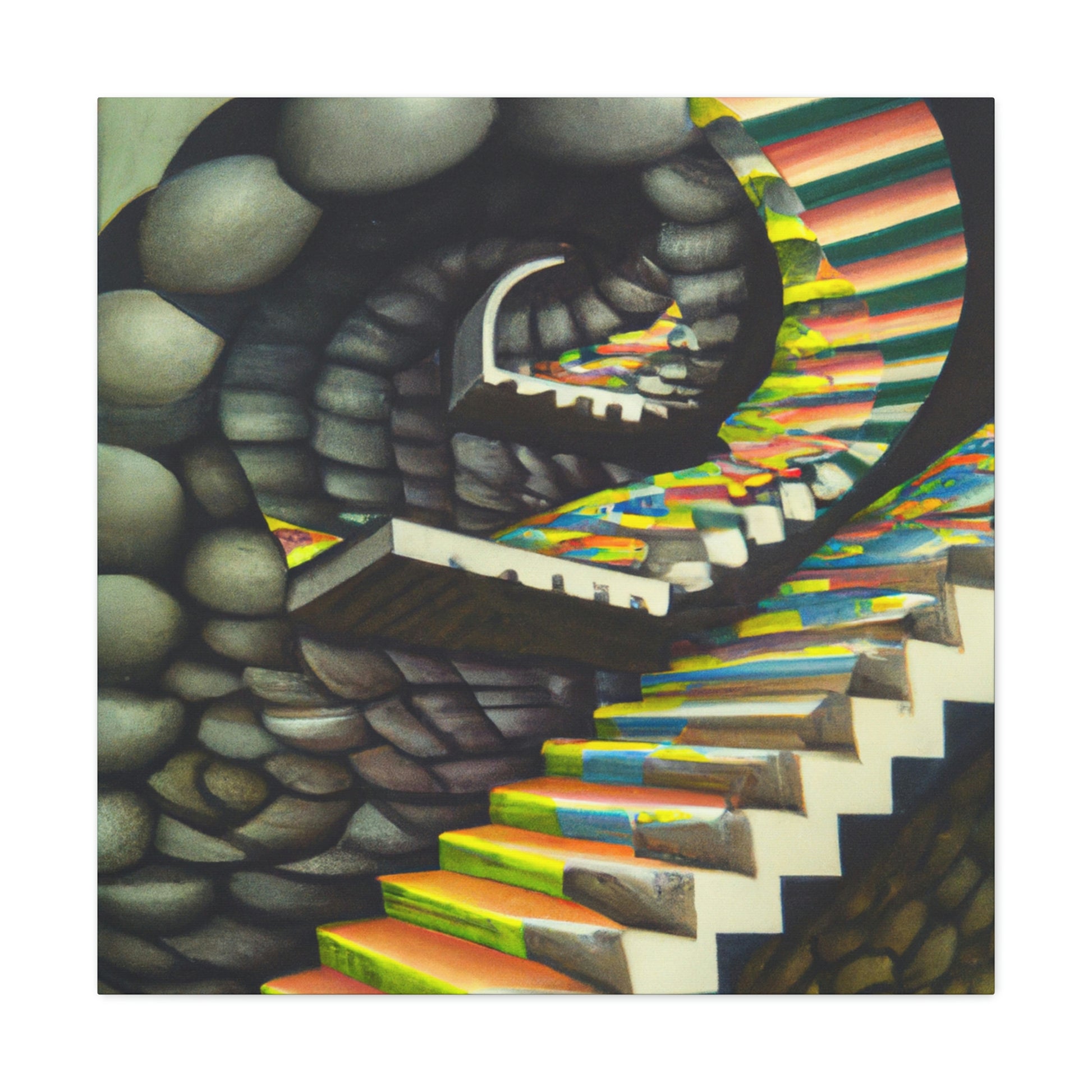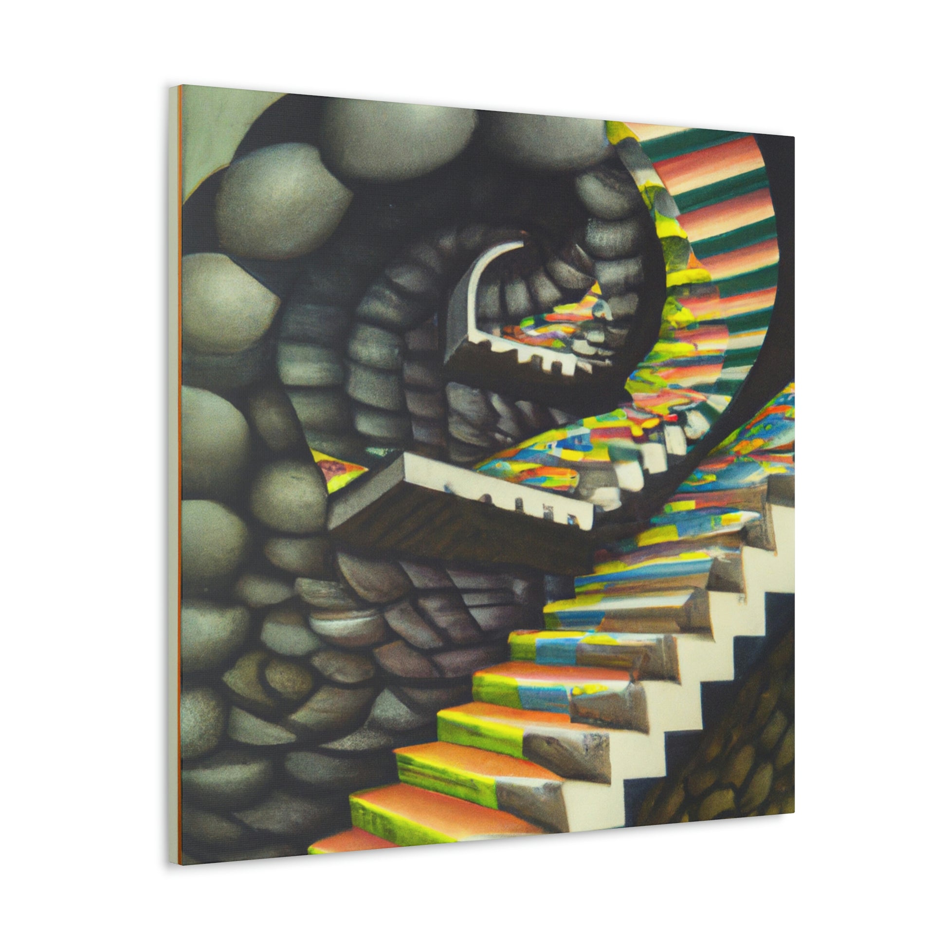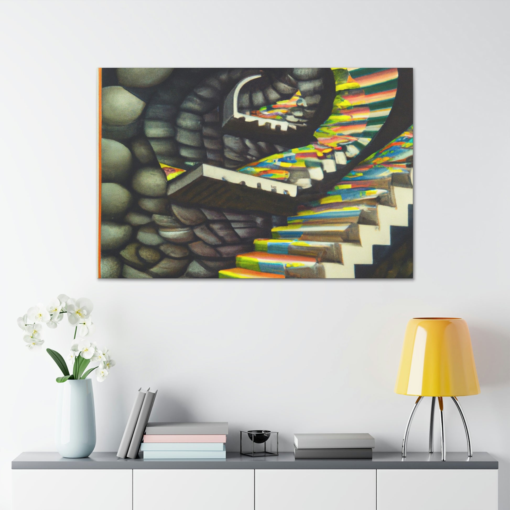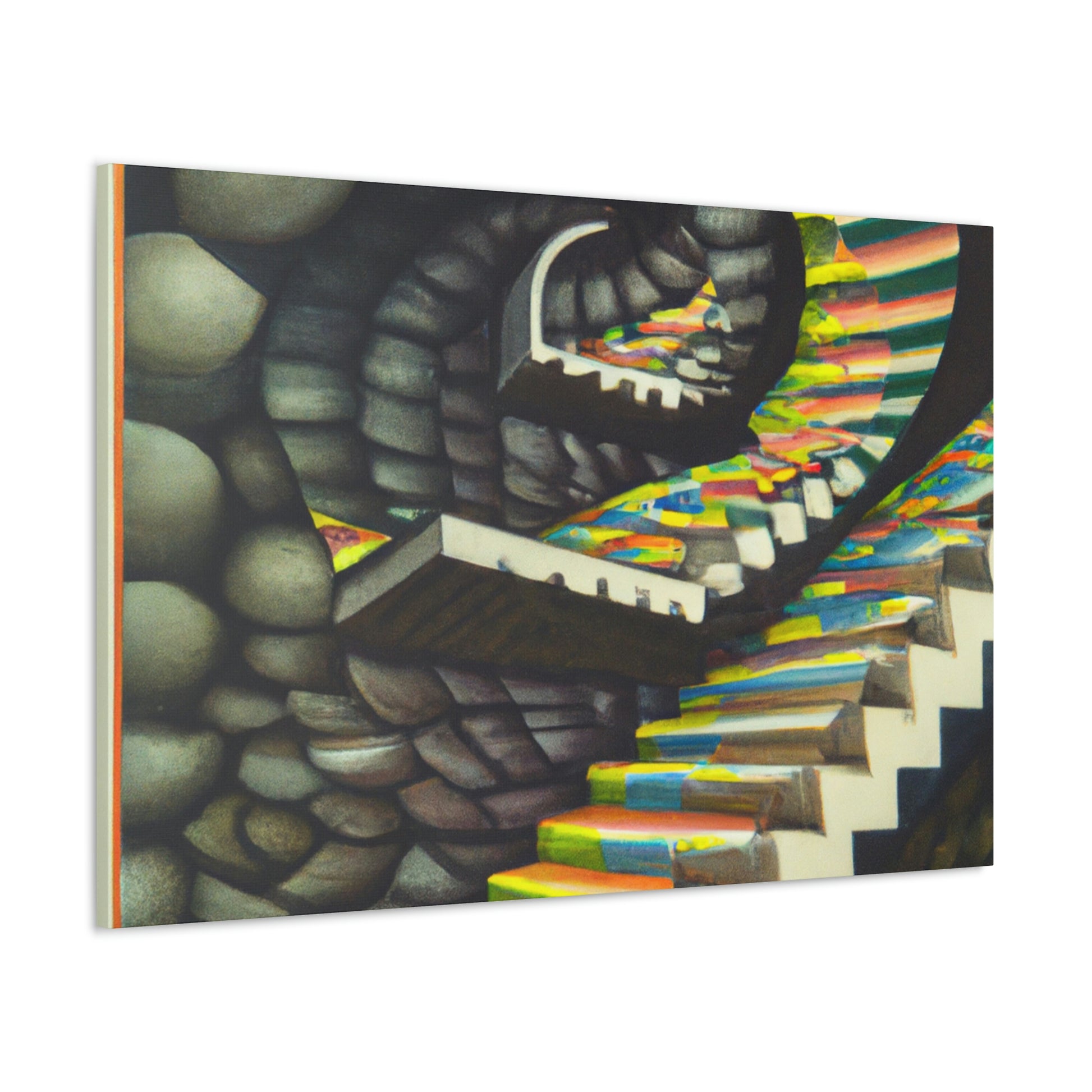 This classic M.C. Escher canvas is a one-of-a-kind piece that will bring vibrancy and creativity to any wall. It captures the unique details, mastery of illusion and geometric precision found in Escher's famous mezzotints paintings. Hang this amazing masterpiece and be sure to have your guests staring in amazement. #Escher #Mezzotint #MathematicalIllusions #MC_Escher #Artwork #OpticalIllusion #ClassicStyle #PopCulture #MastersOfArt #Masterpiece #GeometricPatterns
