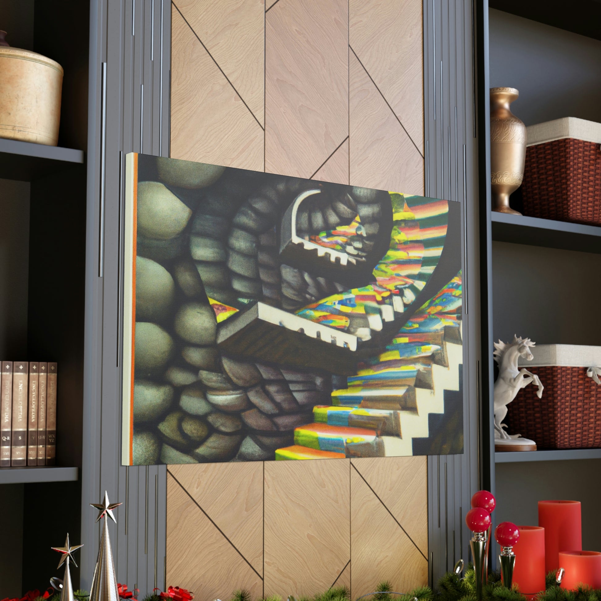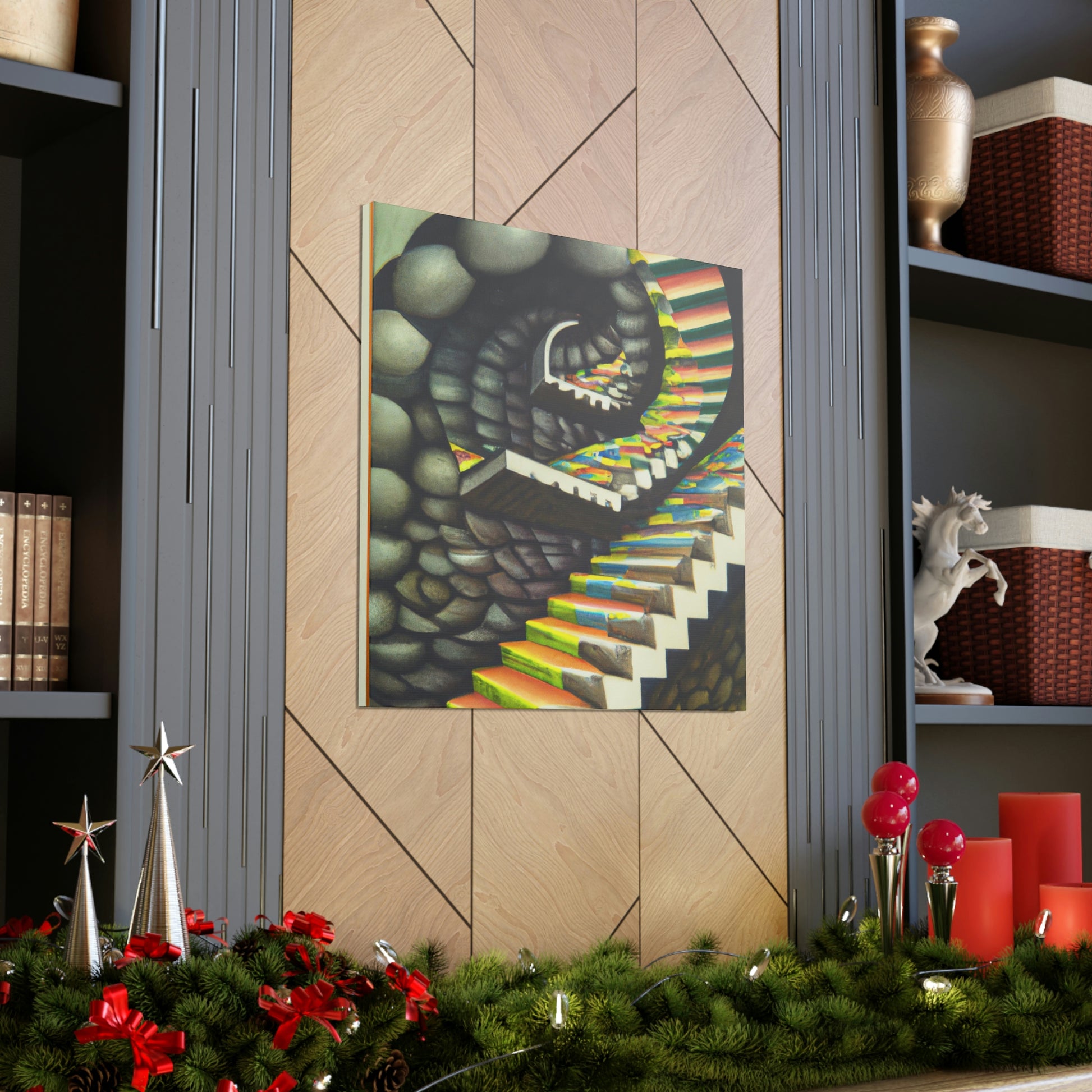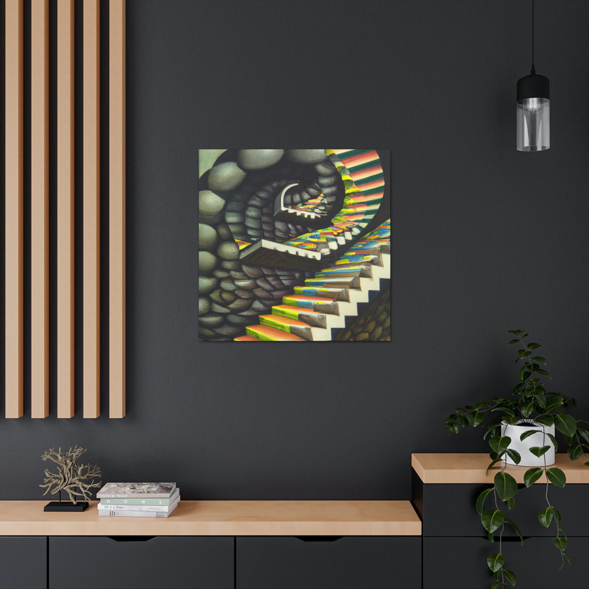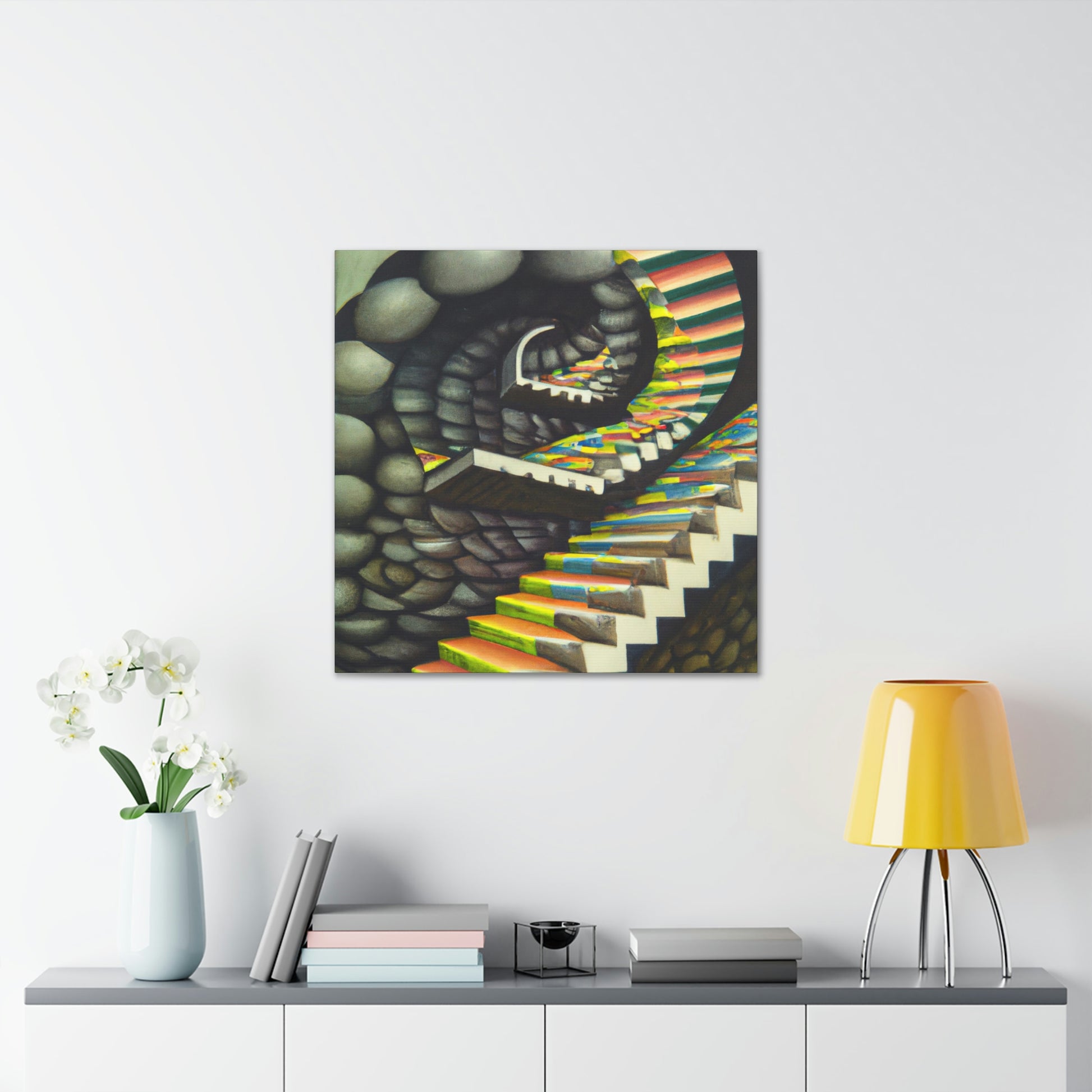 This classic M.C. Escher canvas is a one-of-a-kind piece that will bring vibrancy and creativity to any wall. It captures the unique details, mastery of illusion and geometric precision found in Escher's famous mezzotints paintings. Hang this amazing masterpiece and be sure to have your guests staring in amazement. #Escher #Mezzotint #MathematicalIllusions #MC_Escher #Artwork #OpticalIllusion #ClassicStyle #PopCulture #MastersOfArt #Masterpiece #GeometricPatterns