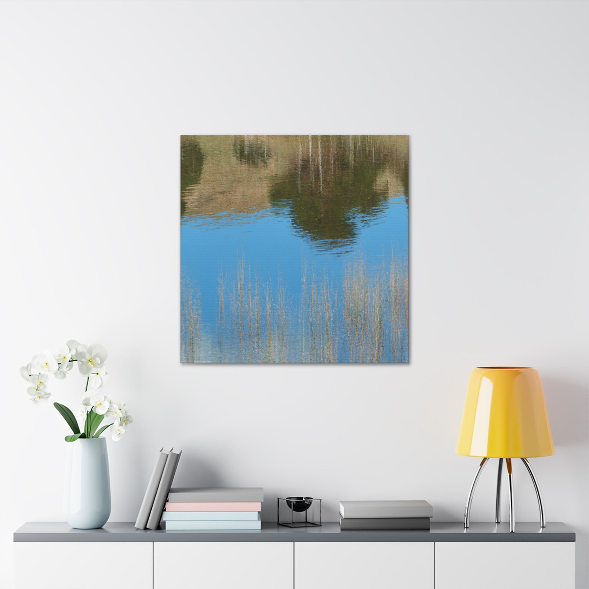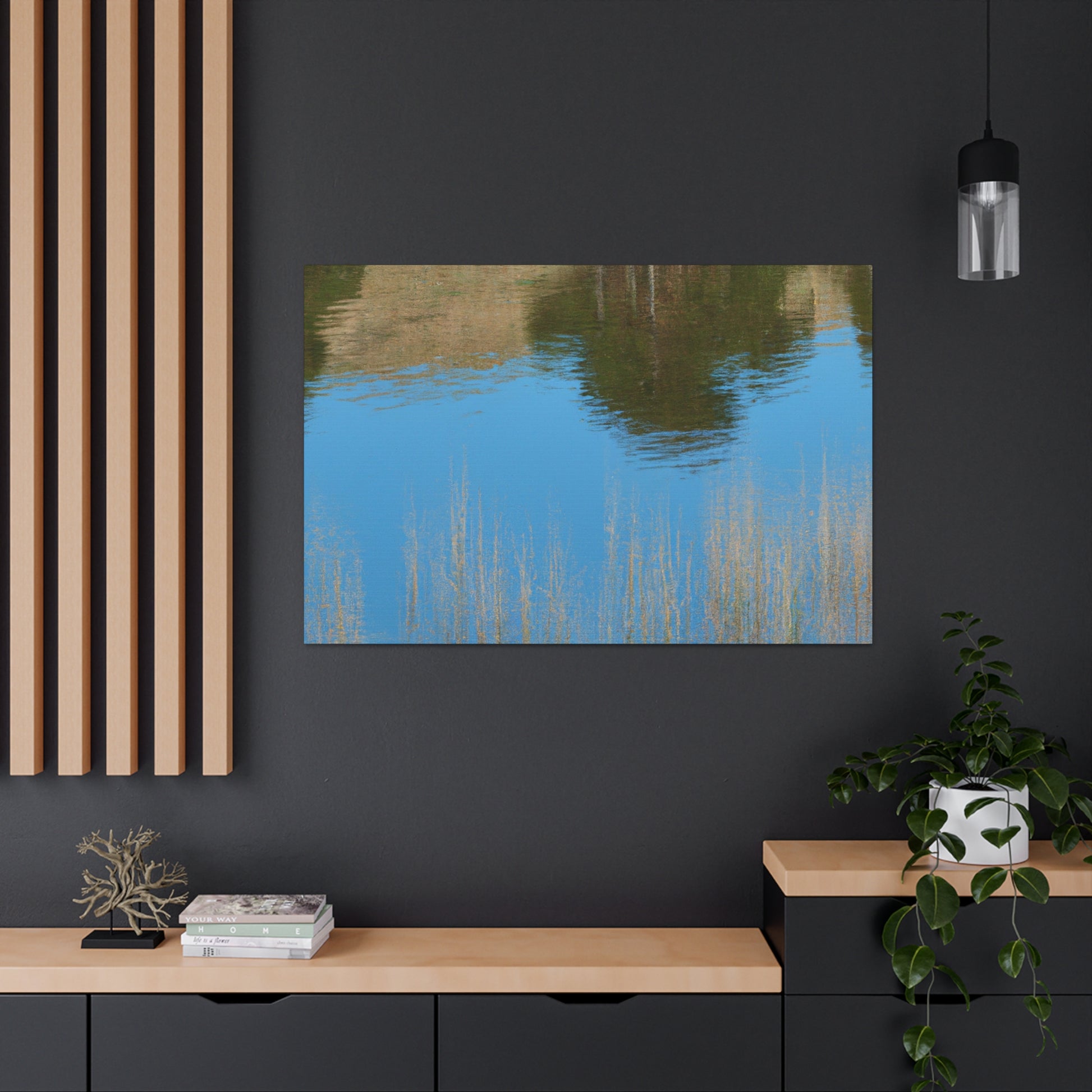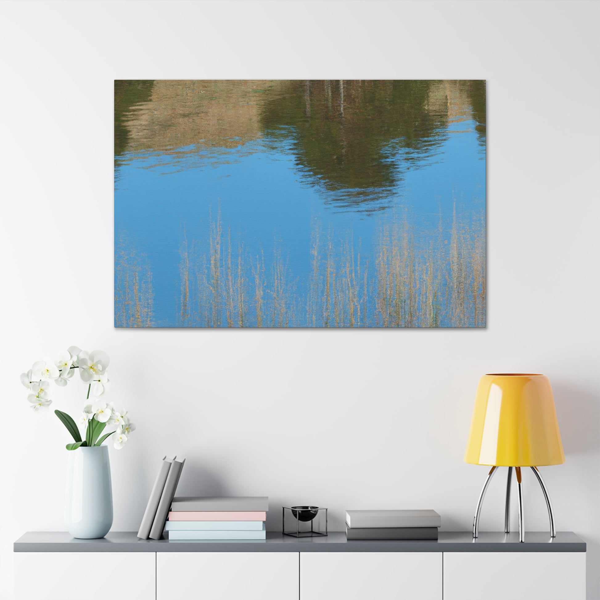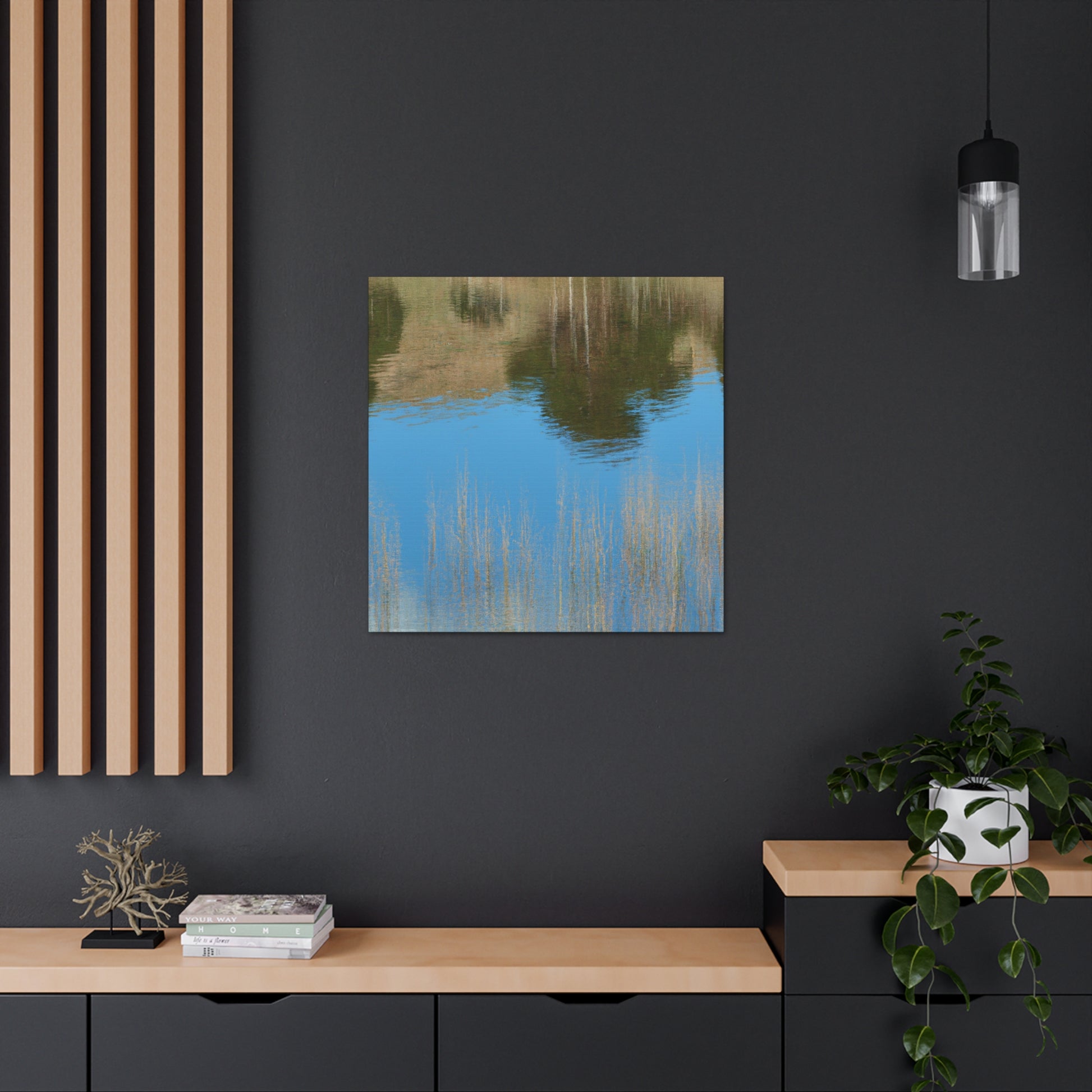 This magnificent canvas features a peaceful reflection with subtle water painting effects. Traditional brushstrokes along with delicate splashes of color convey a tranquil mood. Let this breathtaking and alluring artwork become the centerpiece of your home. #beauty #artist #reflection #painting #creativity #artwork #decor #peaceful #luxury #elegance #canvas