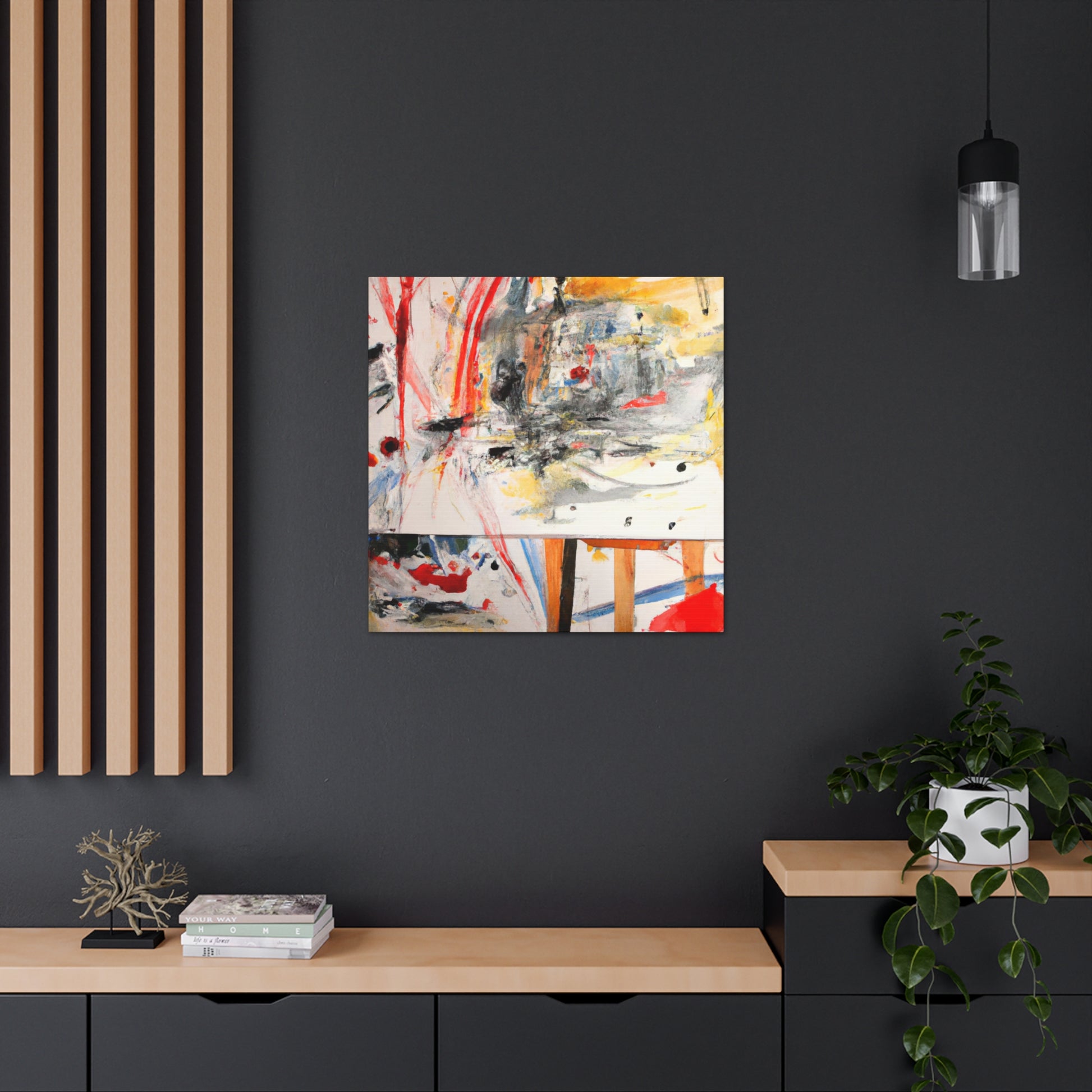 Bring life to any office space with this unique abstract office painting. This canvas features a textured, air brushed landscape design in an impressive color palette of vibrant tones. Its waterproof coating will keep it looking great for years. Modern and eye-catching, this piece will be sure to turn heads and make workdays more enjoyable. #abstractofficepainting #canvas #abstractart #artdeco #airbrush #landscape #modernart #space #textured #waterproof #decor #wallart