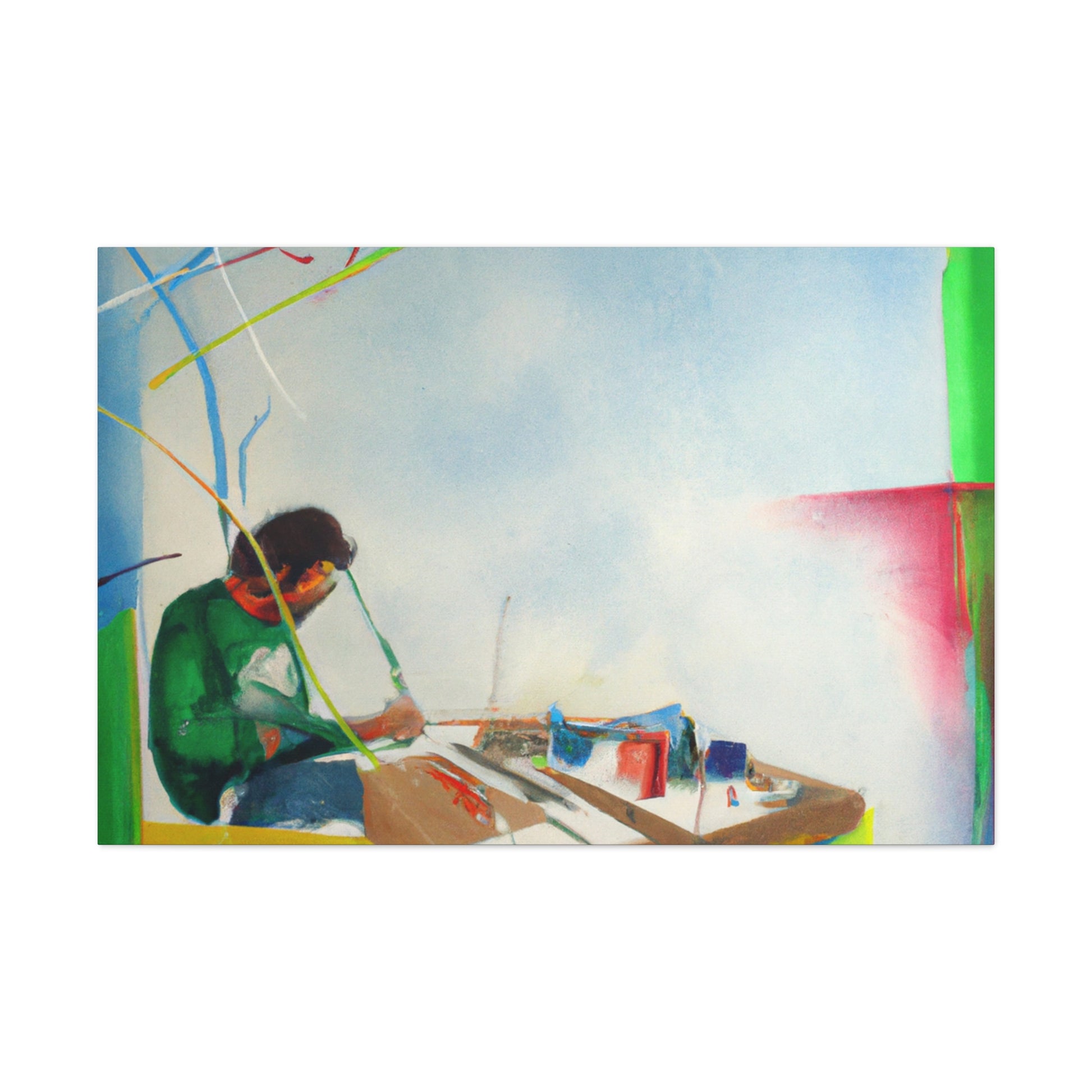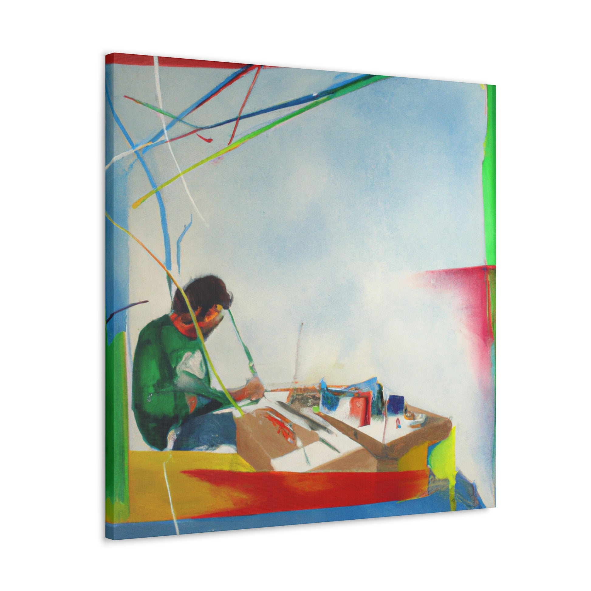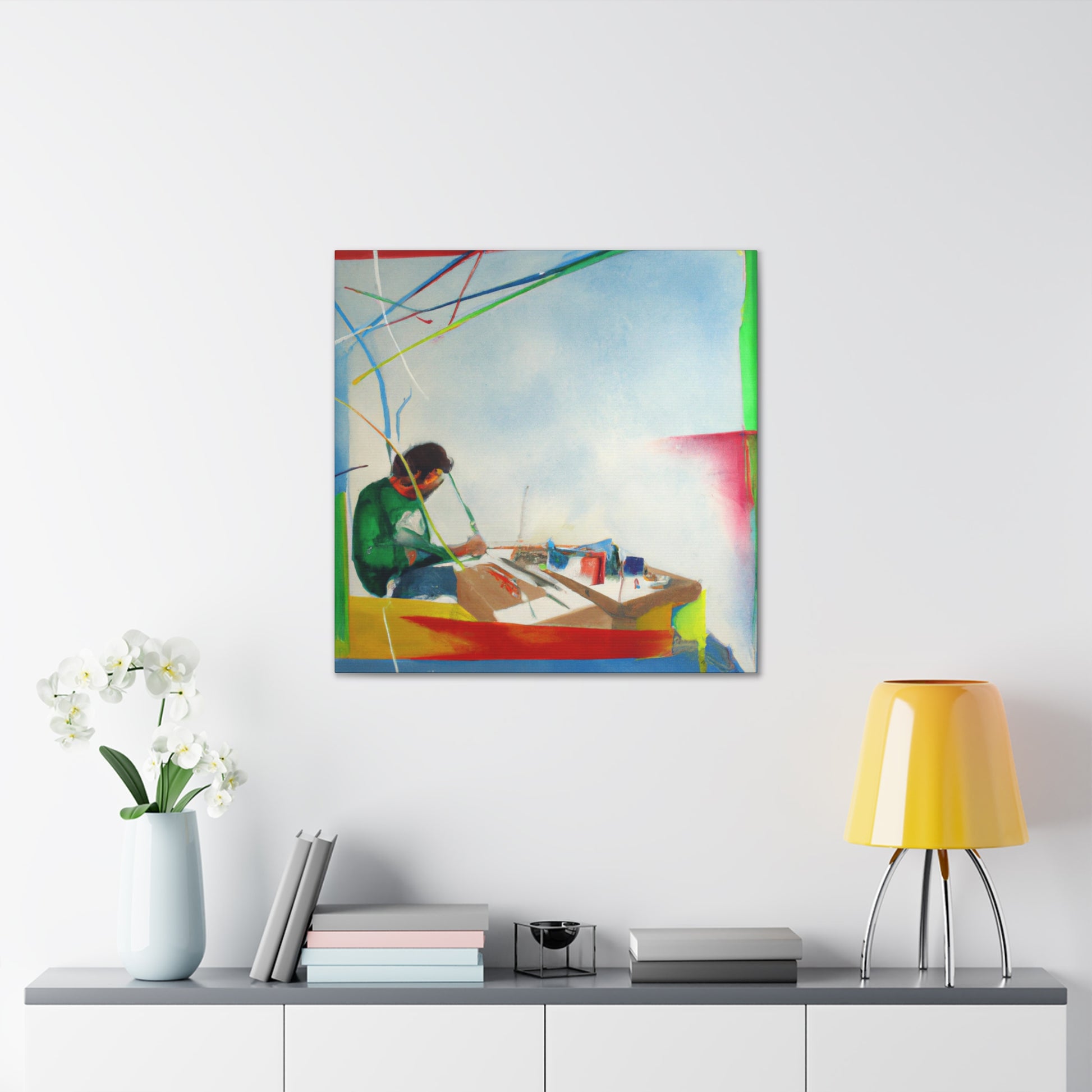 This unique abstract office painting will bring vibrancy and sense of colour to your wall. Created by a renowned artist, this canvas portrays a mix of earthy tones, creating a bright, tropical landscape that speaks to the imagination. The abstract shapes add a modern touch, perfect to liven up any office or home. Invest in this affordable work of art today, add a little colour and make your space come alive! #abstractpainting #artwork #canvaspainting #officepainting #homedecor #affordableart #abstractshapes #tropicaldesign #renownedartist #uniquecanvas #modernartand