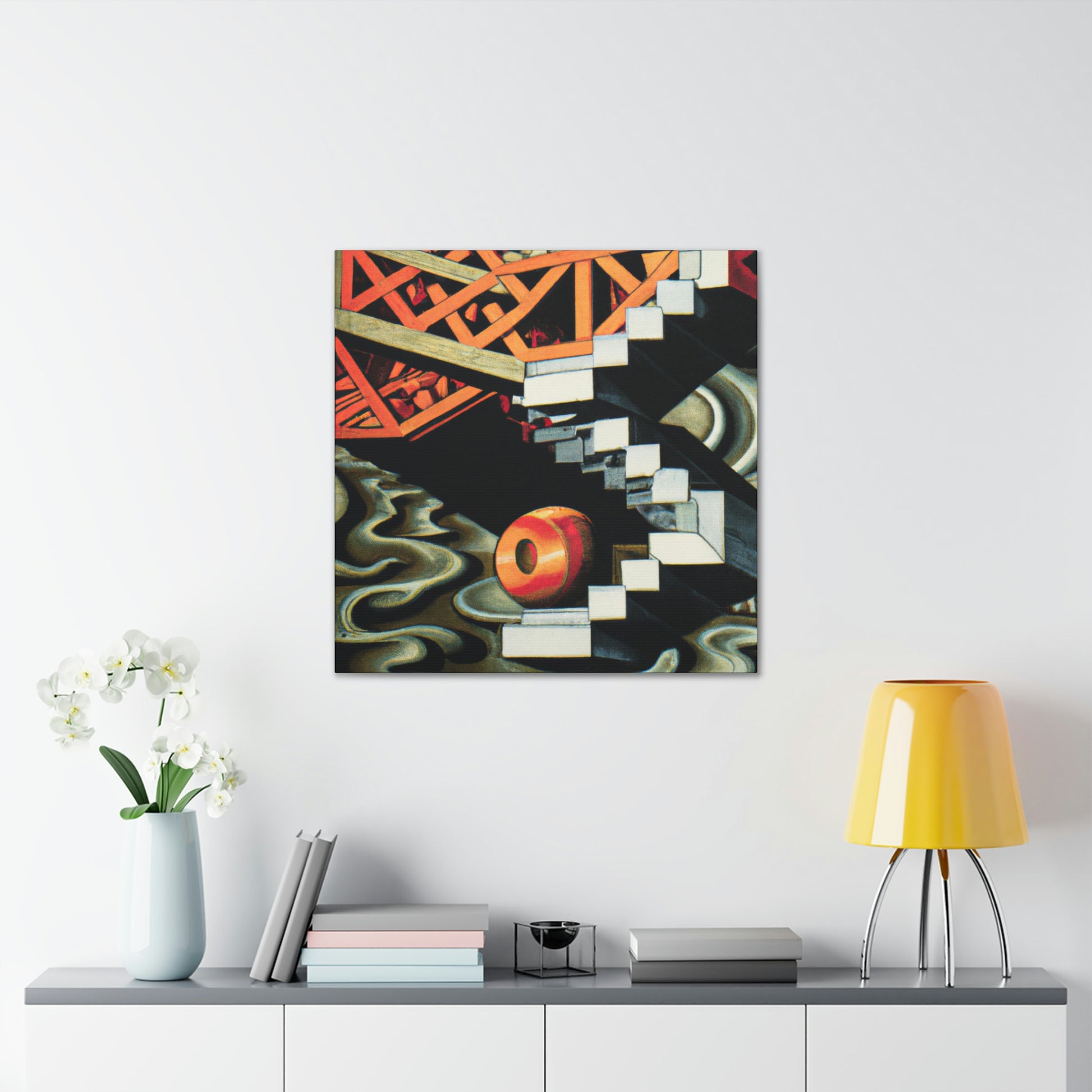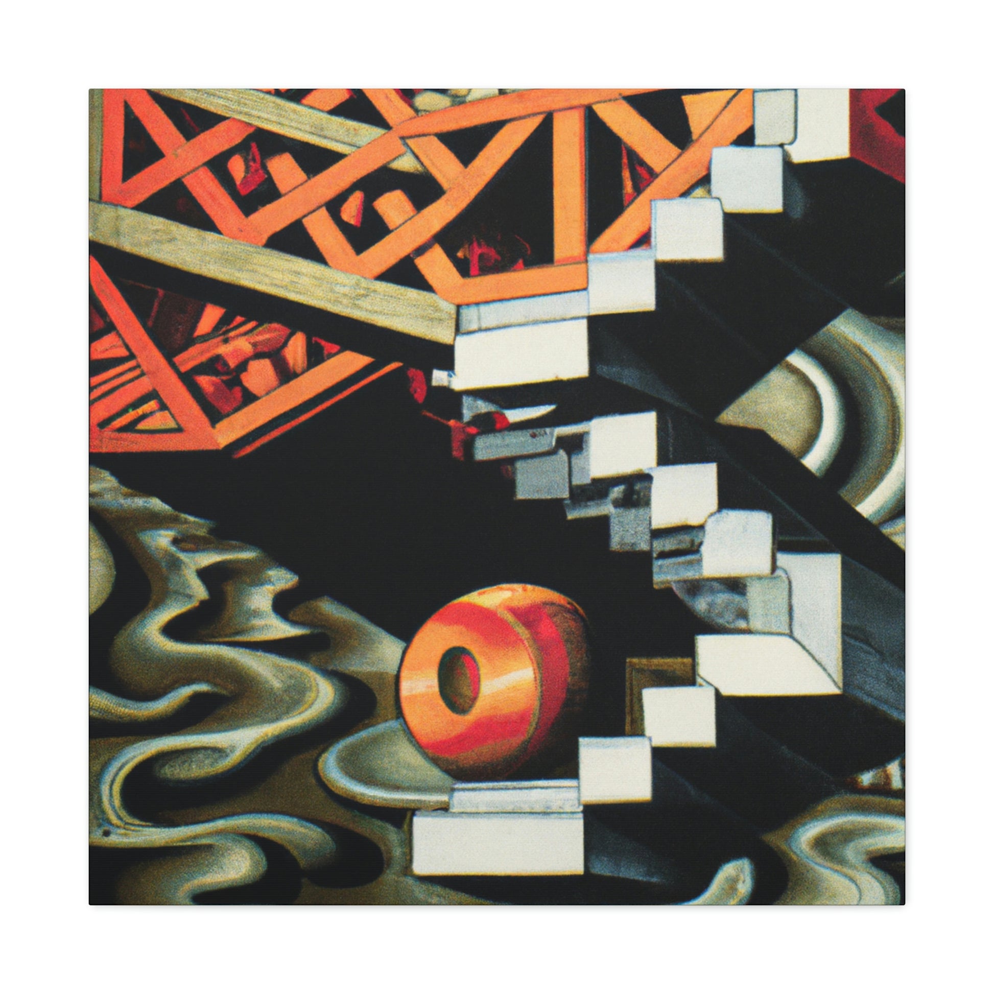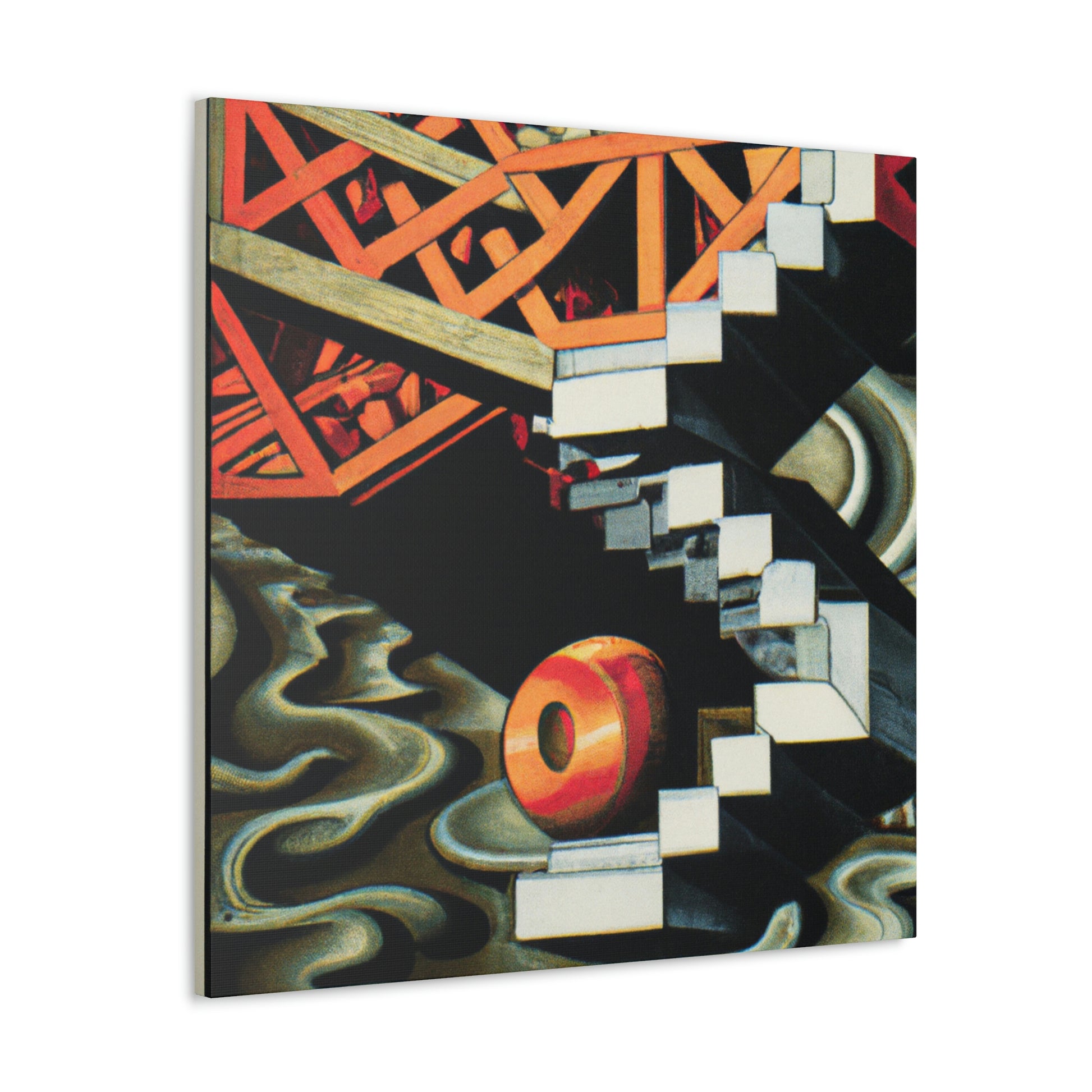 This canvas of M.C. Escher's vibrant, eye-catching mezzotints embraces the unexpected and illogical with masterful skill. The mathematical precision and optical illusions combine to create a work of art that is both thought provoking and unique. It invites to you explore the many hidden details within its colorful compositions. Take a journey of creativity and discover the hidden gems of Escher's imaginative world. #MCEscher #Opticalillusions #Painting #Canvas #Art #Colors #Detail #Unique #ThoughtProvoking #Creative #Masterful and #MathematicalPrecision