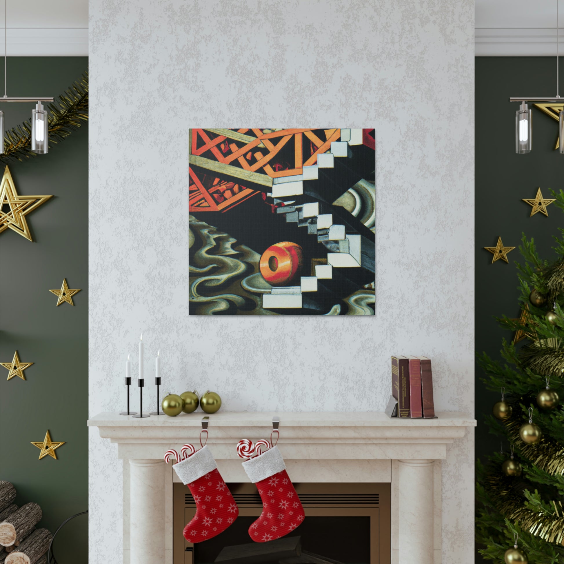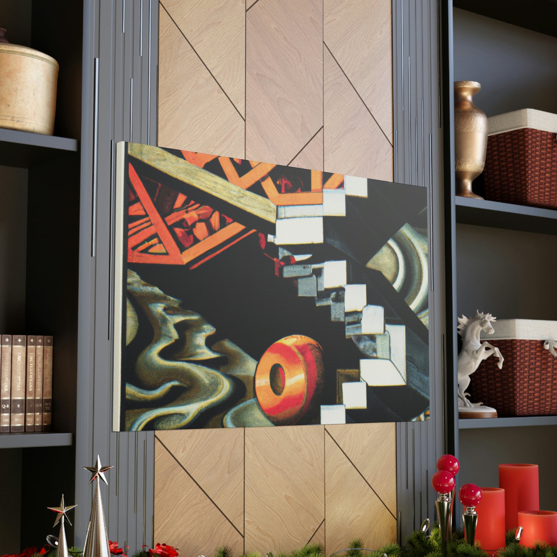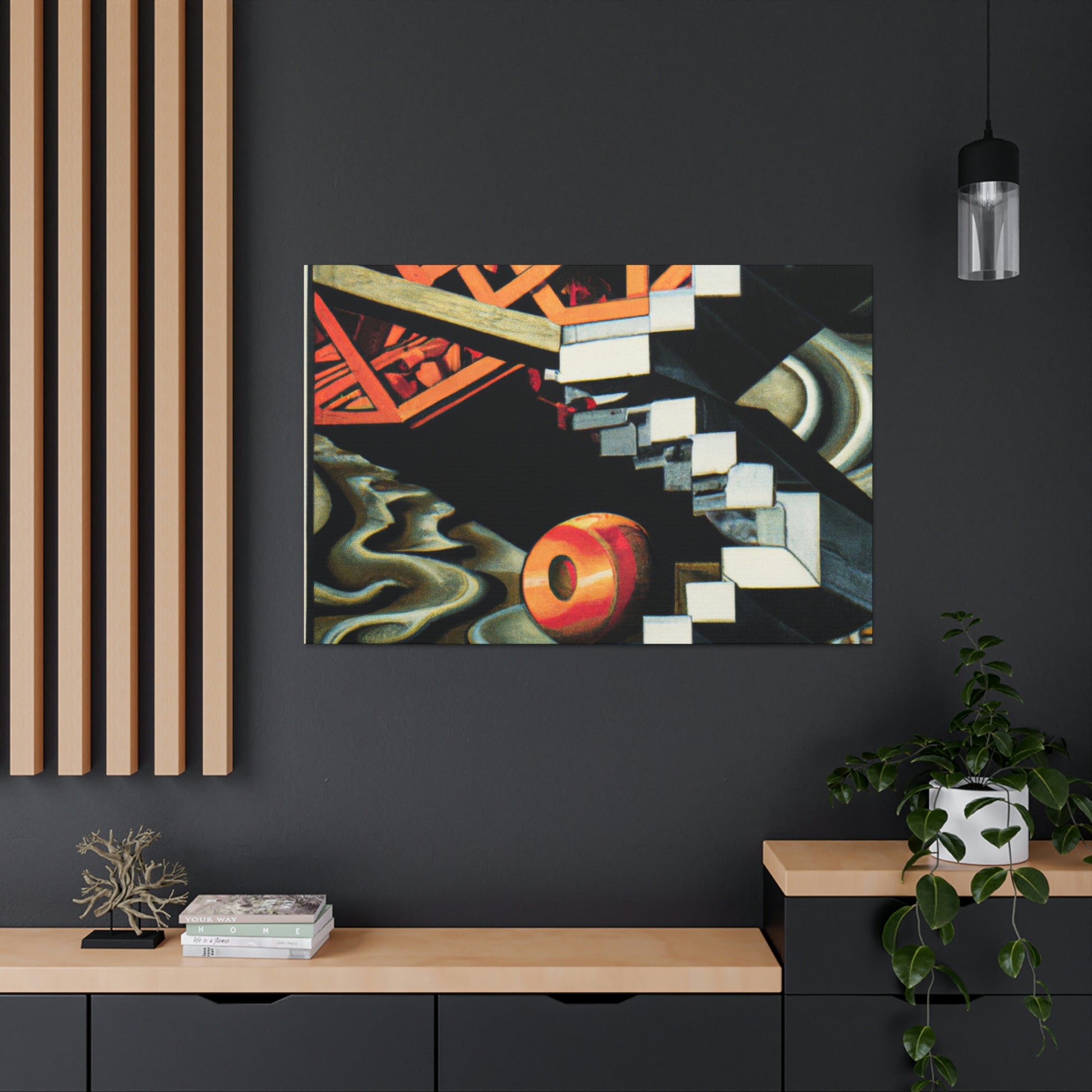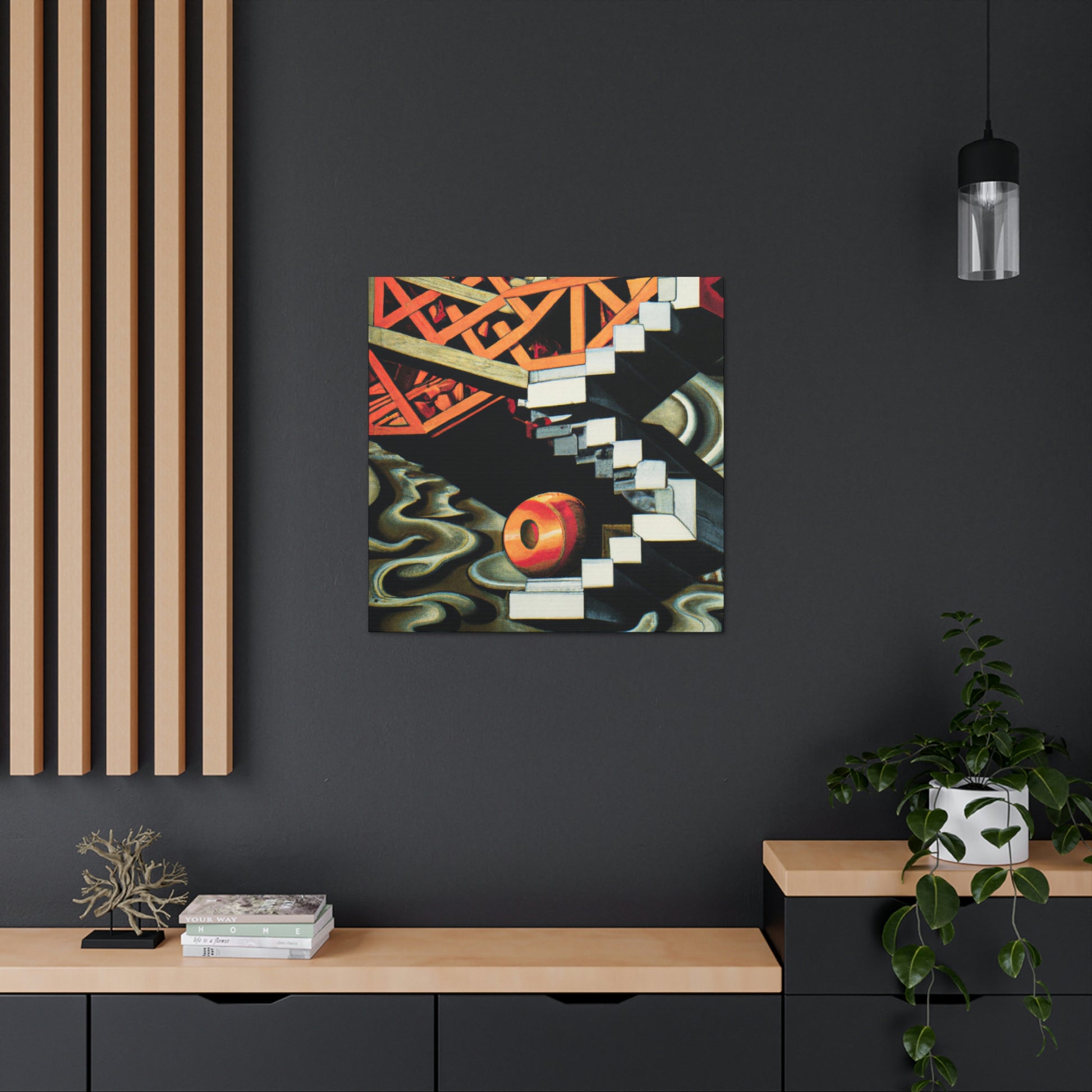 This canvas of M.C. Escher's vibrant, eye-catching mezzotints embraces the unexpected and illogical with masterful skill. The mathematical precision and optical illusions combine to create a work of art that is both thought provoking and unique. It invites to you explore the many hidden details within its colorful compositions. Take a journey of creativity and discover the hidden gems of Escher's imaginative world. #MCEscher #Opticalillusions #Painting #Canvas #Art #Colors #Detail #Unique #ThoughtProvoking #Creative #Masterful and #MathematicalPrecision