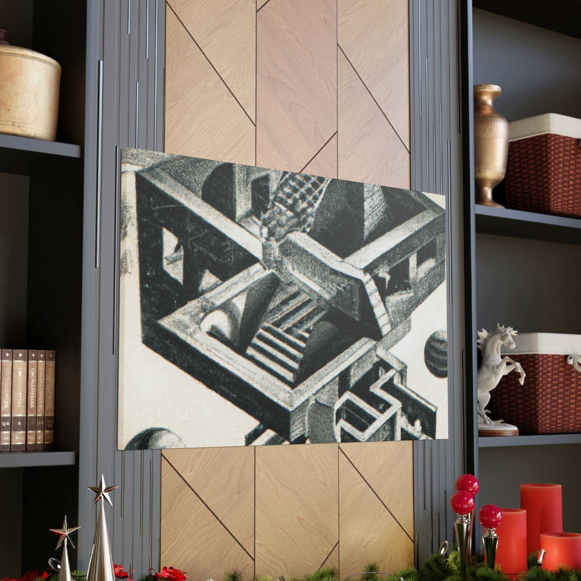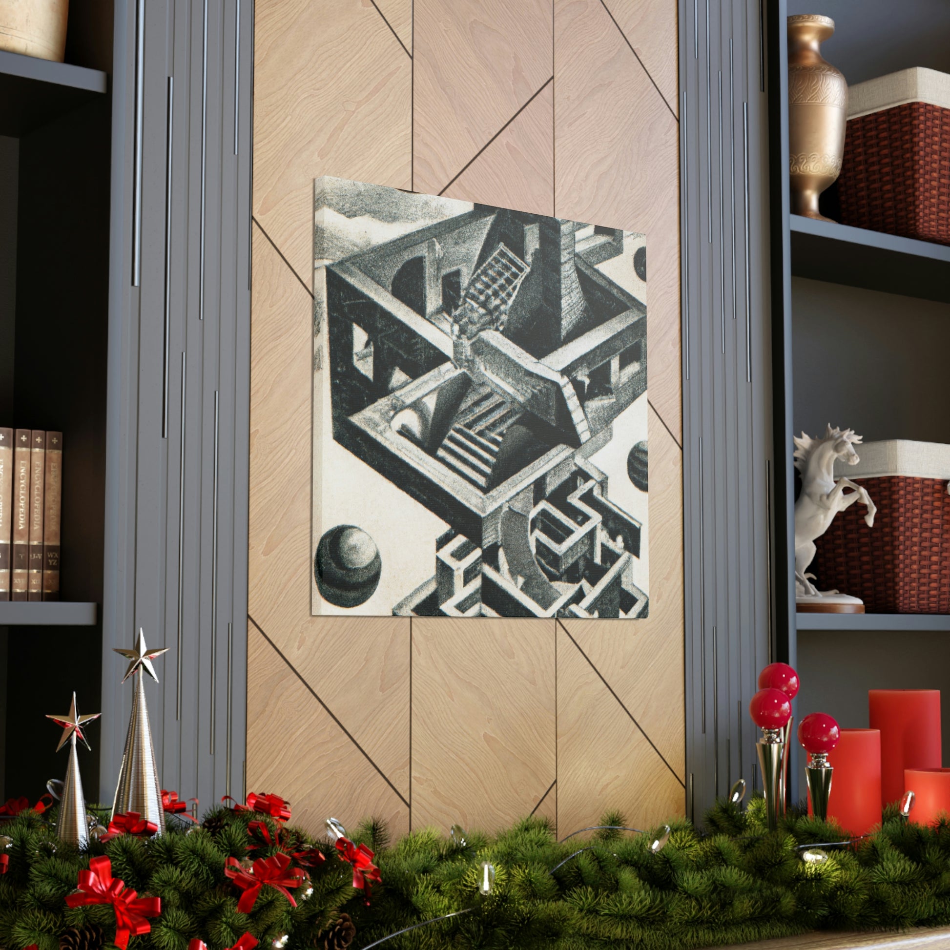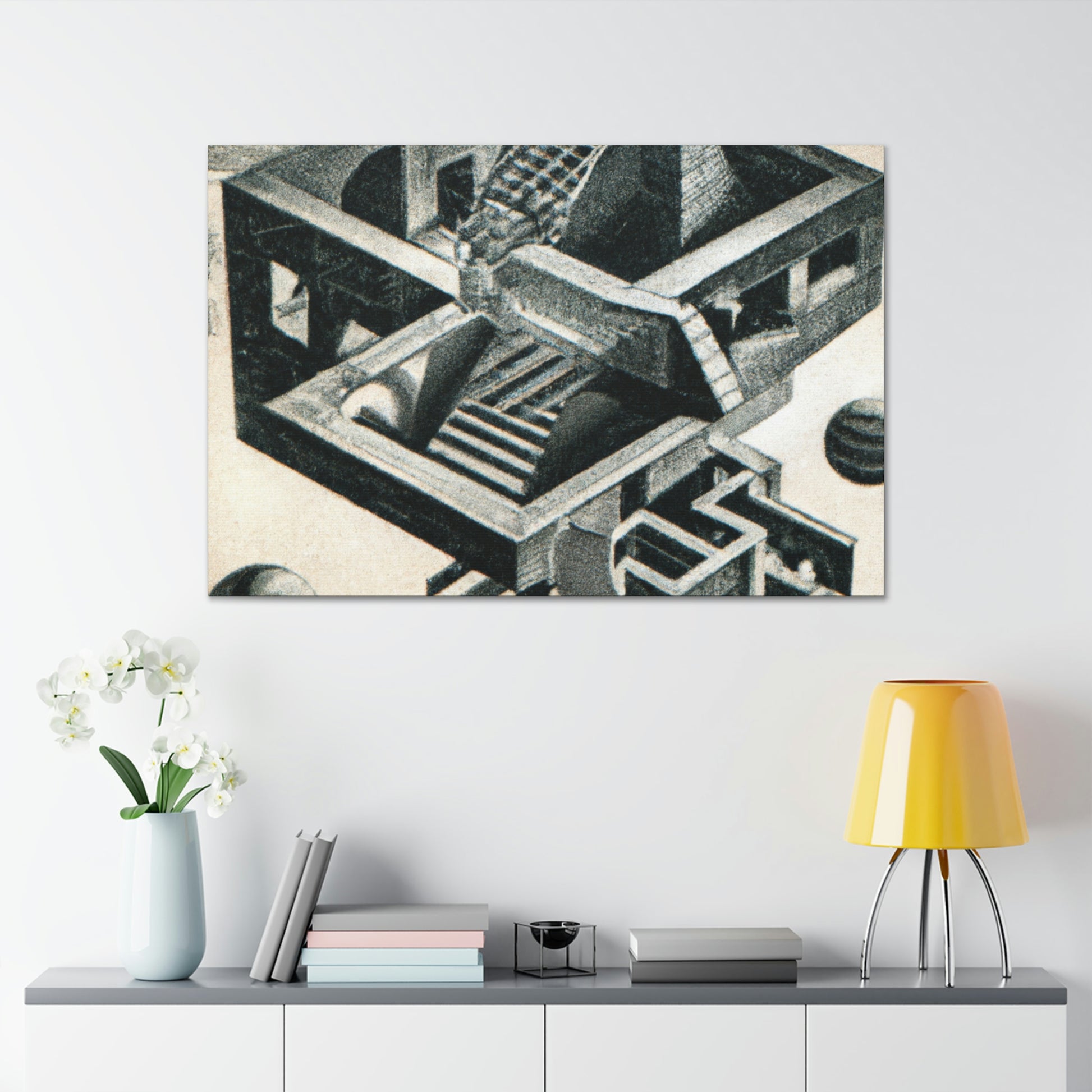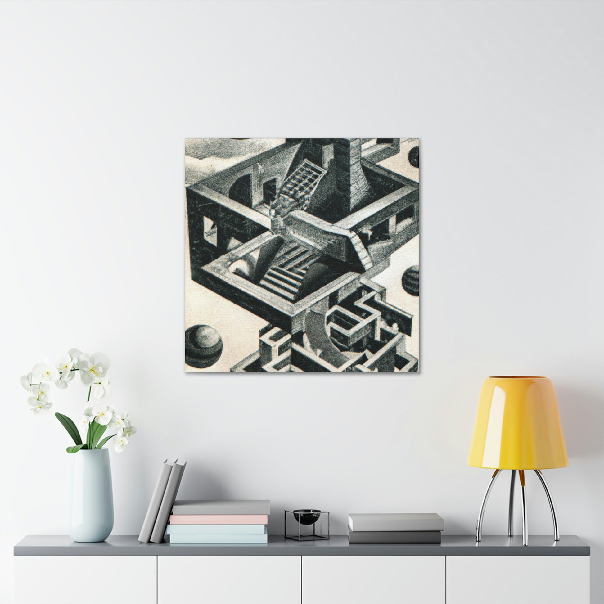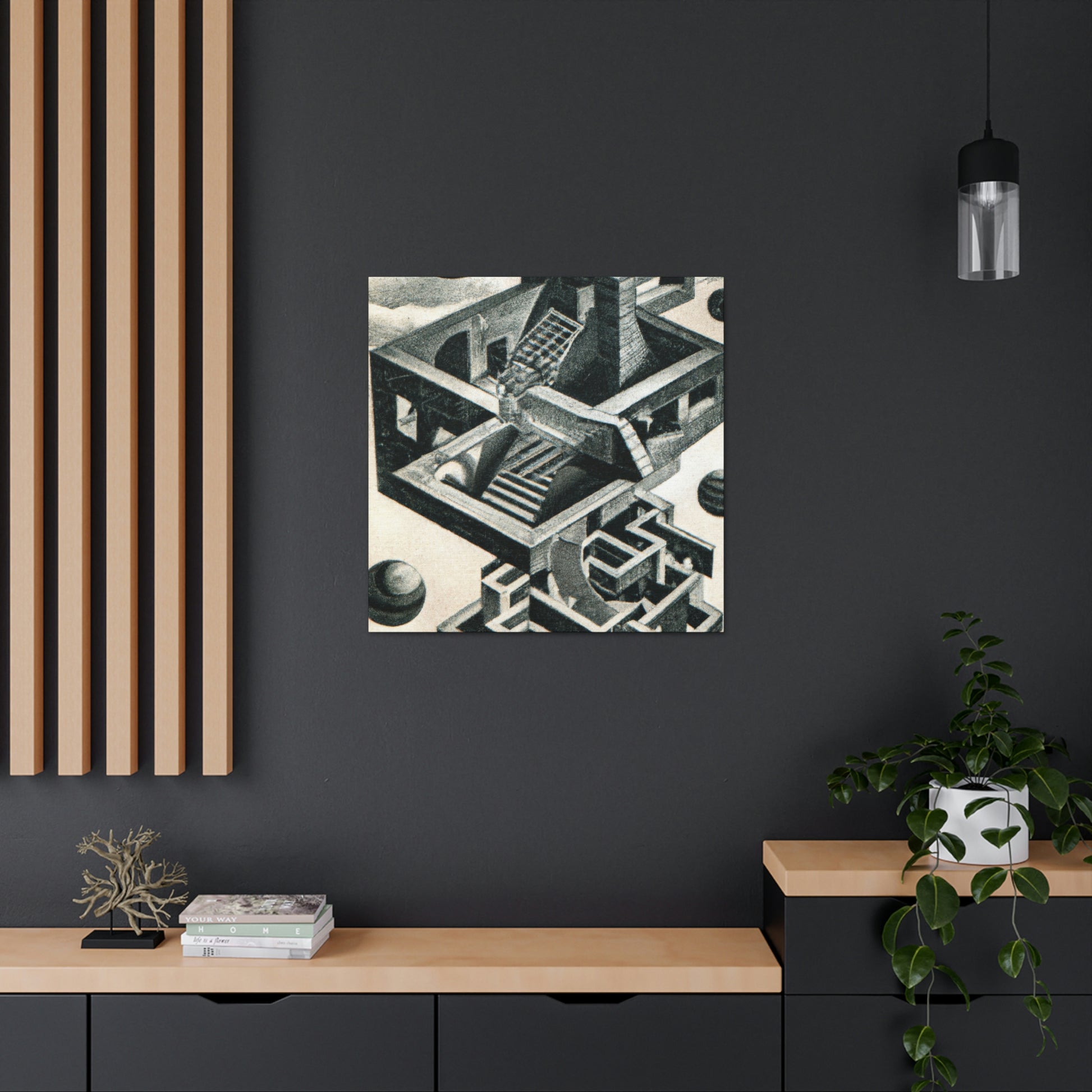 This incredible canvas brings life to the work of master artist M.C. Escher. His mezzotints paintings are filled with vibrant colors, mind-bending detail, and mathematical precision. Every canvas is handcrafted with attention to intricate optical illusions, allowing you to display a unique piece of art in your home. Get lost in the creavity of the masterpiece and let Escher take you away. #MCEscher #Art #OpticalIllusions #Painting #Handcrafted #Vibrant #Colors #Mezzotint #Masterpiece #Intricate #Mathematical #Precision