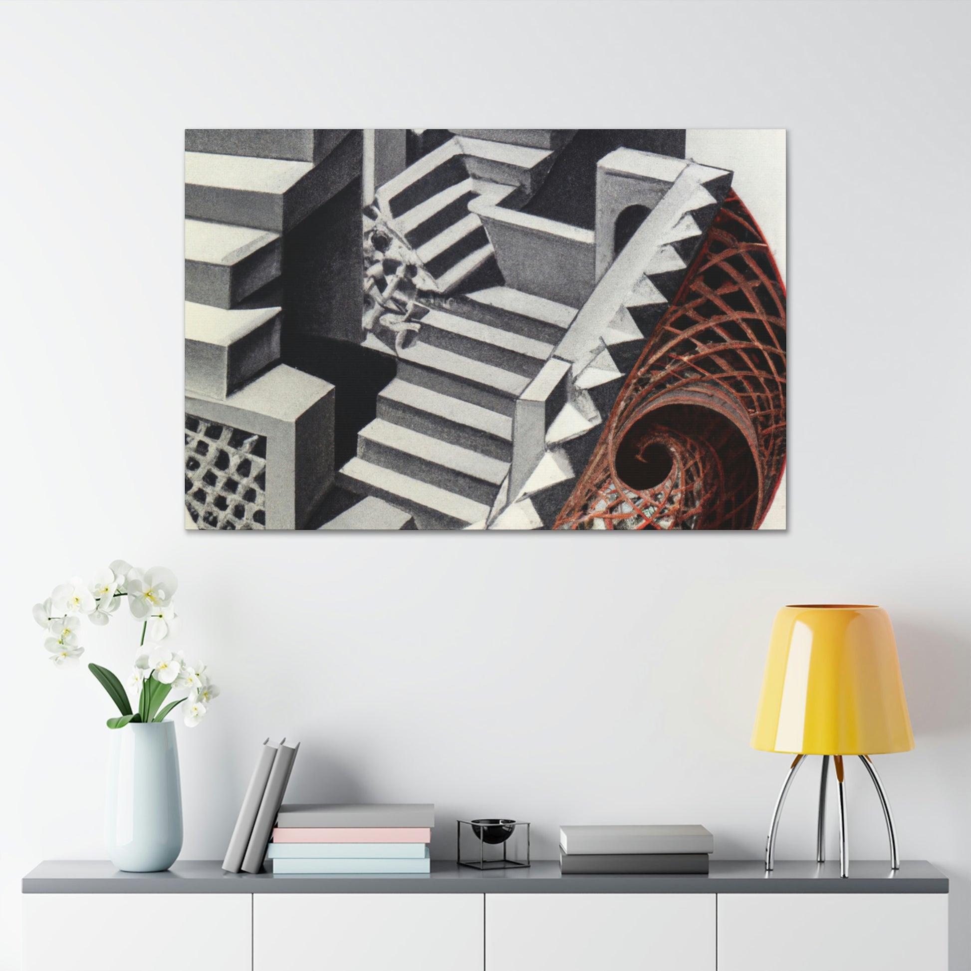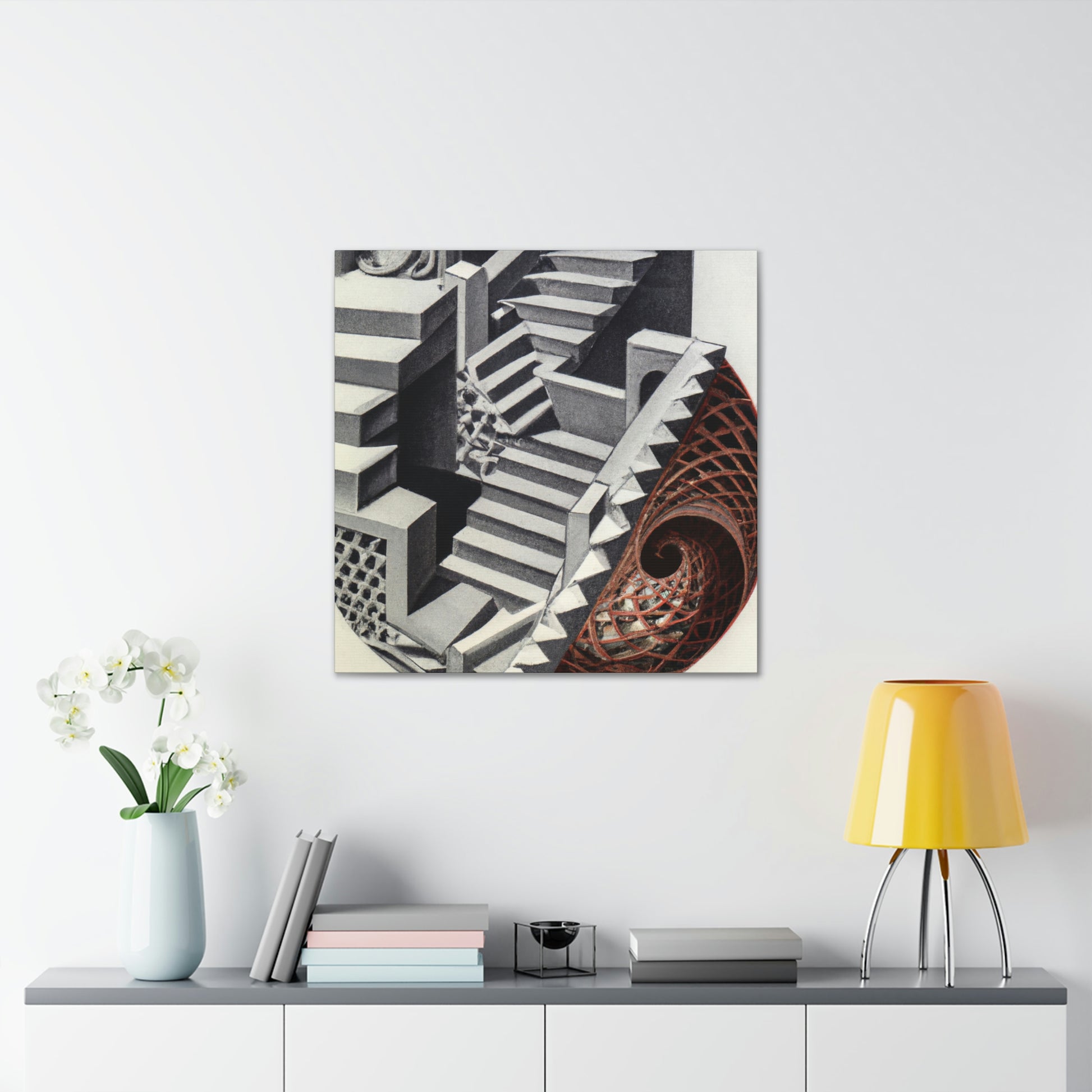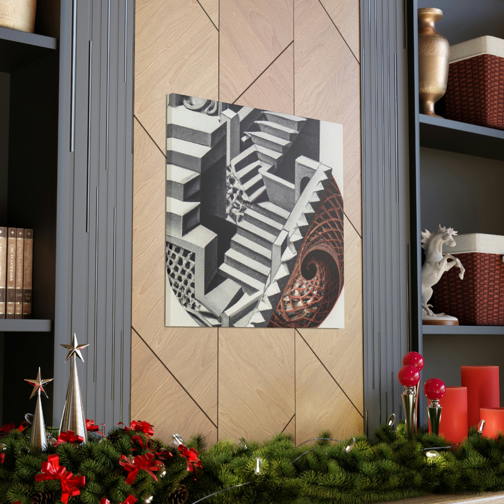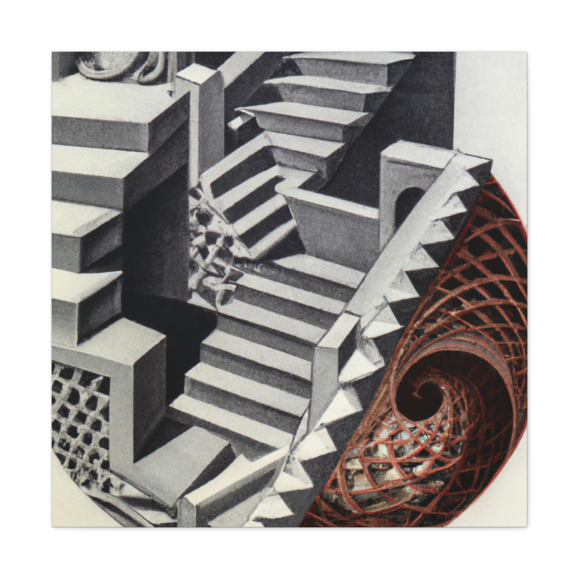 The legacy of the great M.C. Escher is found in each canvas, creating colorfuly stimulating mezzotints painting with intricate detail, mathematical precision, and mind-bending optical illusions. His art combines creative vision, technical finesse, and playful inventiveness for a truly captivating experience. This incredible collection demands attention and belongs in any art enthusiast's collection. #mcescher #escherart #art #vision #finesse #inventive #captivating #carecters #mathprecision #opticalillusion #mezzotint #canvas