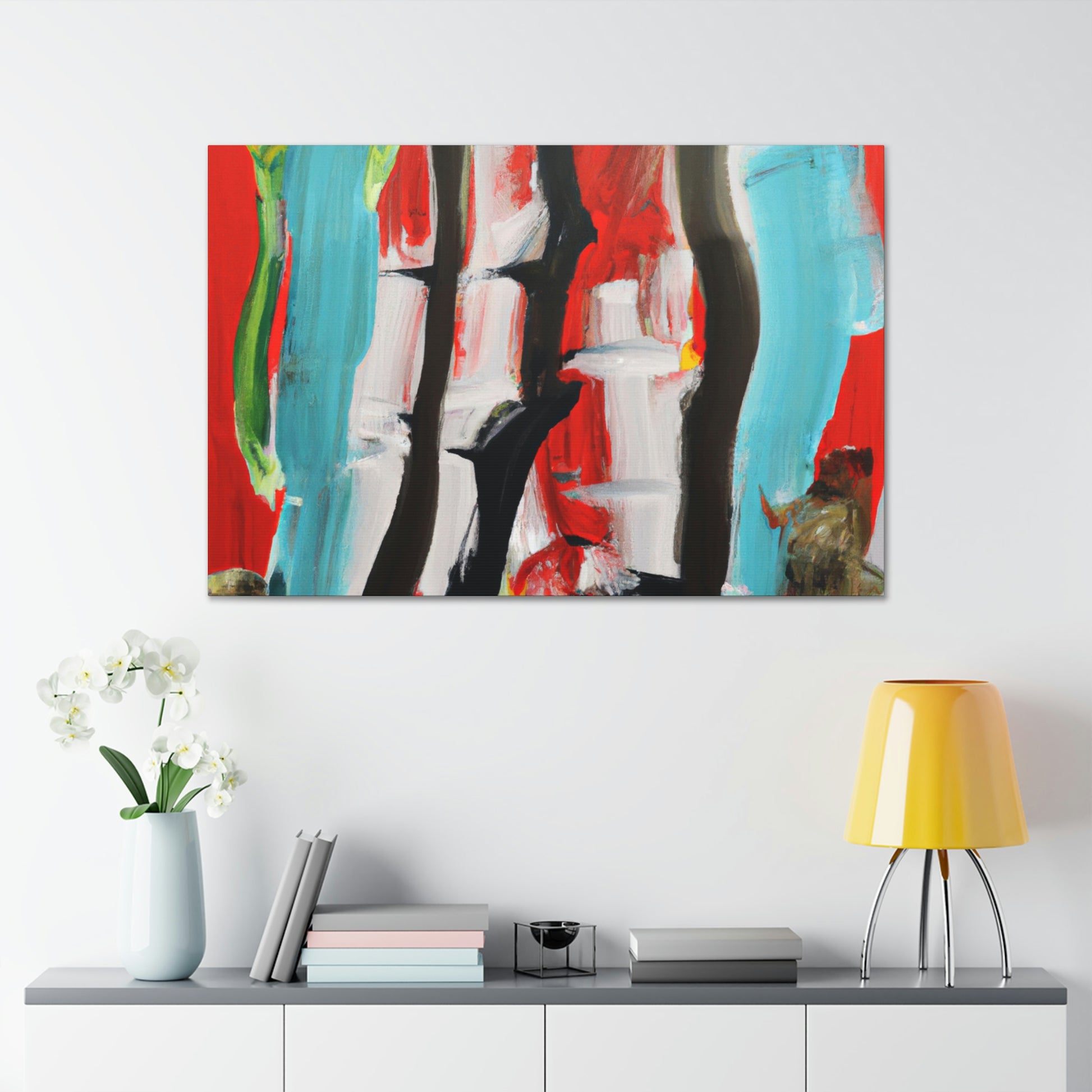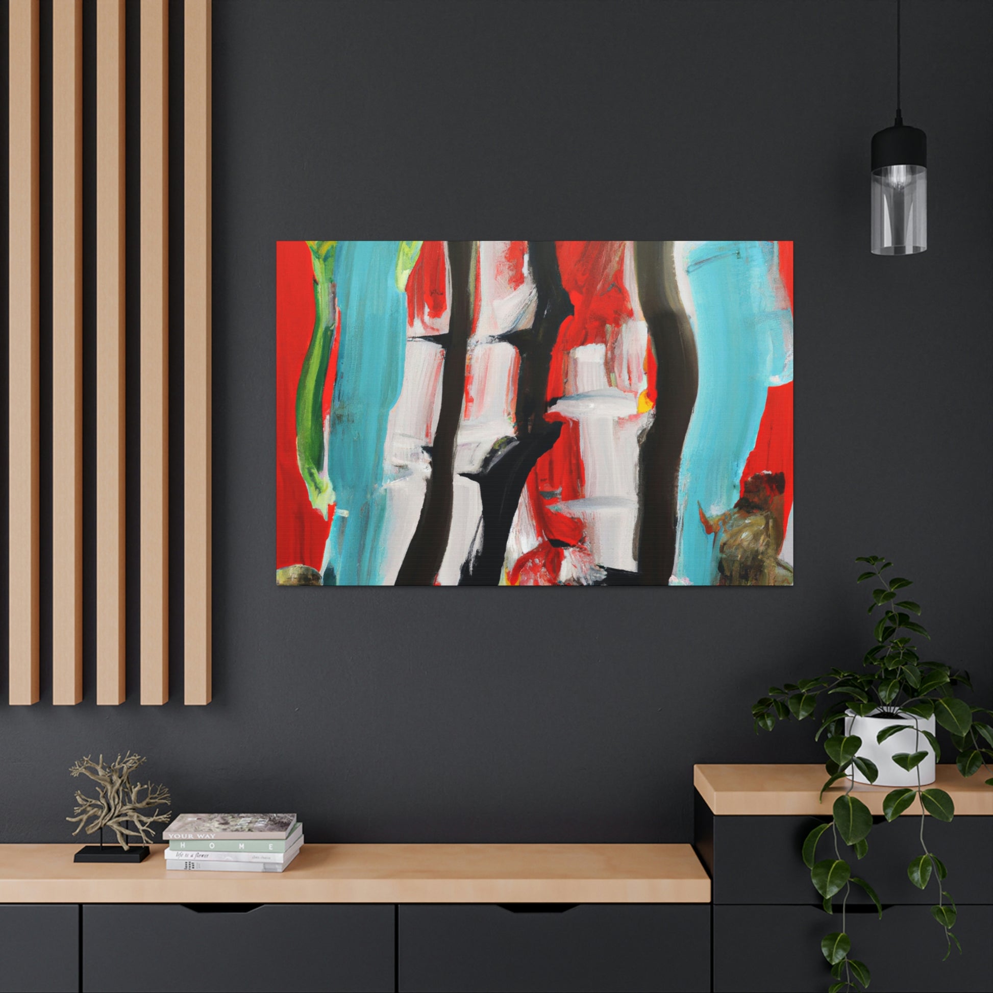 This vibrant abstract painting from an unknown artist celebrates the life in an office environment. The bright colors and smudged brush strokes bring life to any room, and the painting is sure to be the focal point for any space. Its bold, eye-catching design adds an effect of modern art and can make any office stand out. #abstractart #abstractpainting #modernart #officesetting #unknownartist #bucketlistart #abstractstyle #canvasart #homedecor #interiordesign #art and