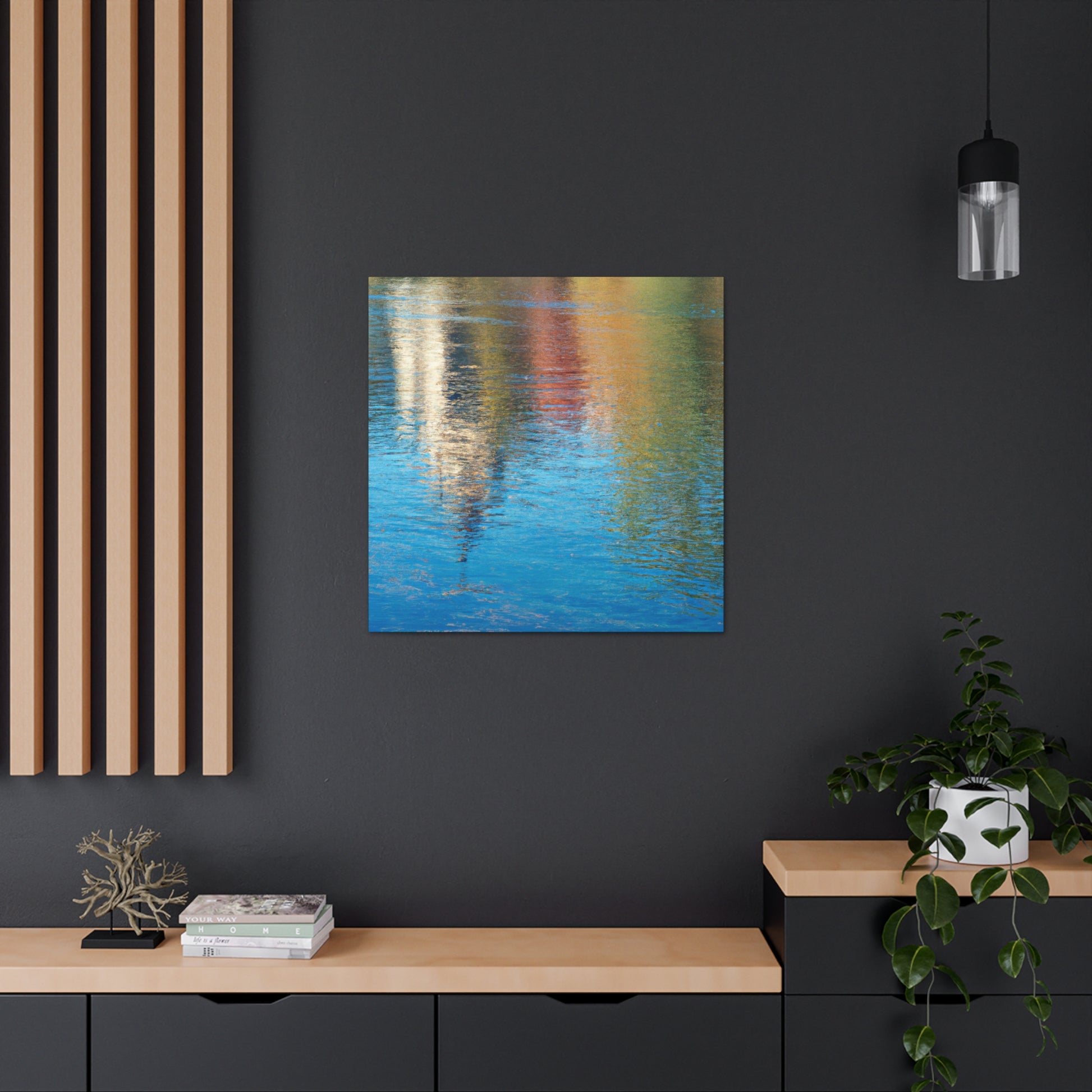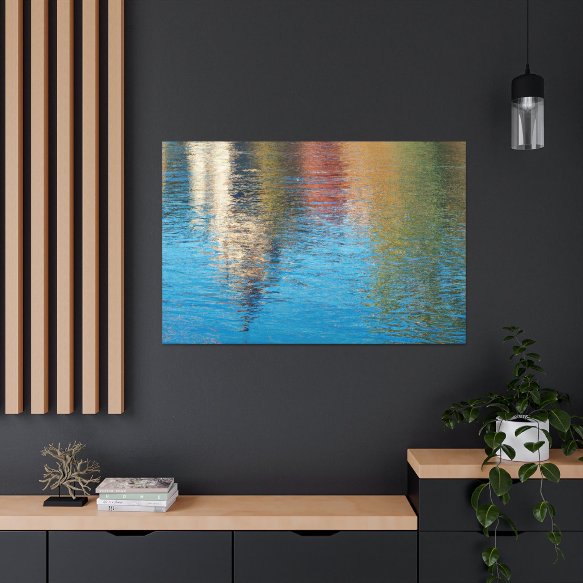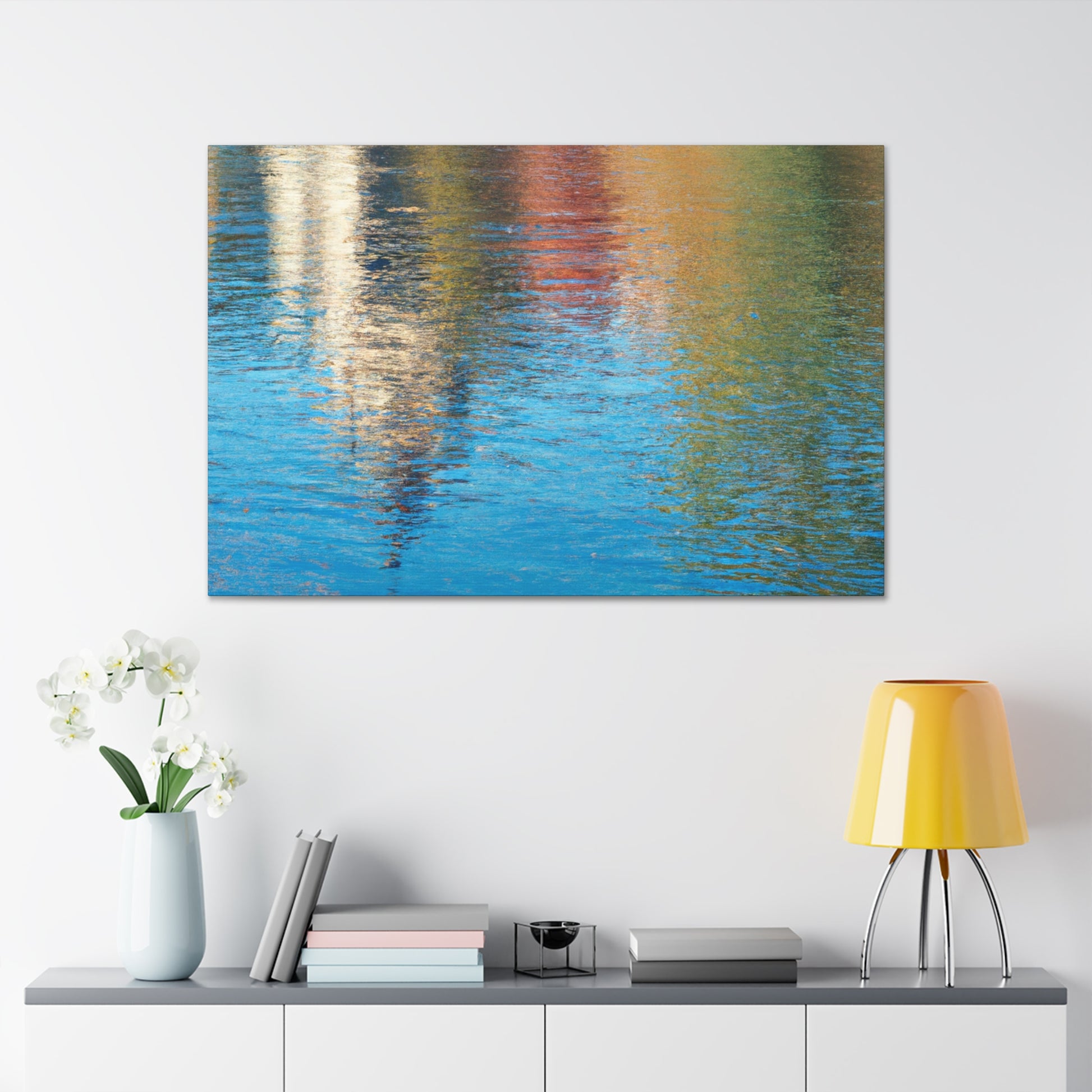 This canvas features a beautiful reflection of an artist's masterpiece, just as if one was looking at it through the window of water. The painting encapsulates vivid hues and exquisite details that seem to leap off the canvas. With its exquisite style and technique, it is a must-have for art aficionados. #art #painting #canvas #masterpiece #reflection #waterpainting #scenic #collection #viewing #style #technique