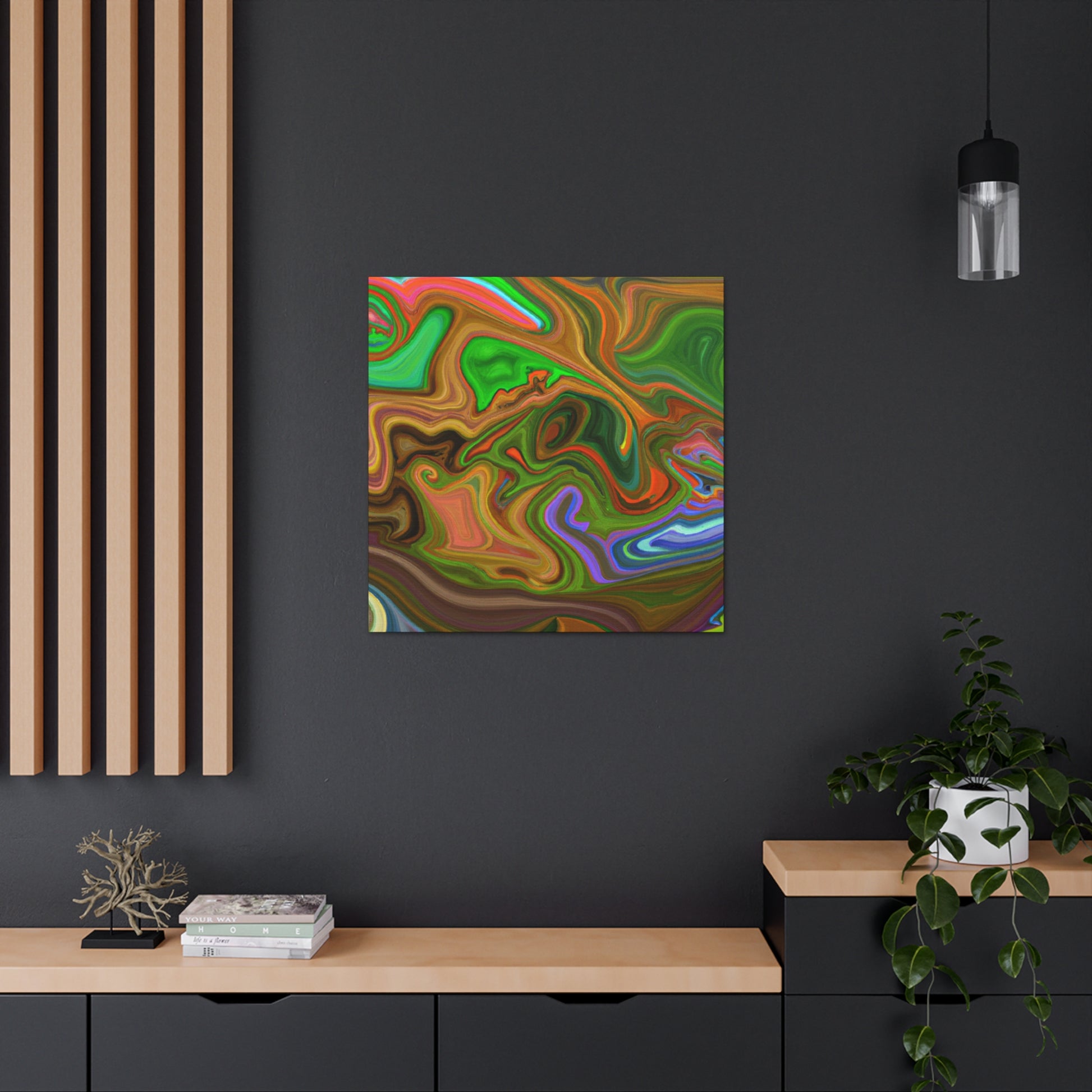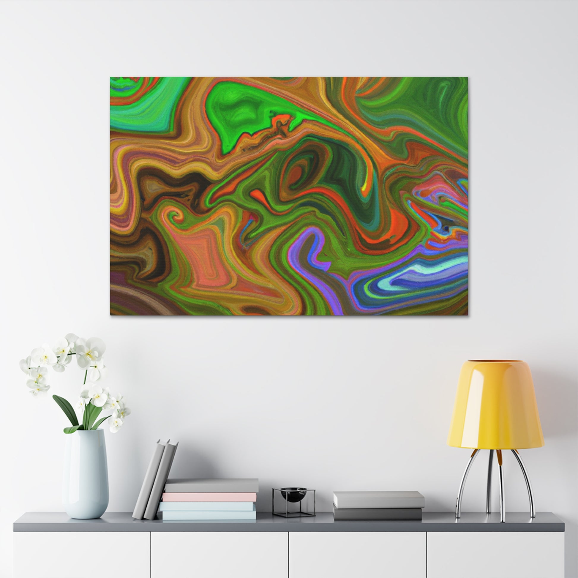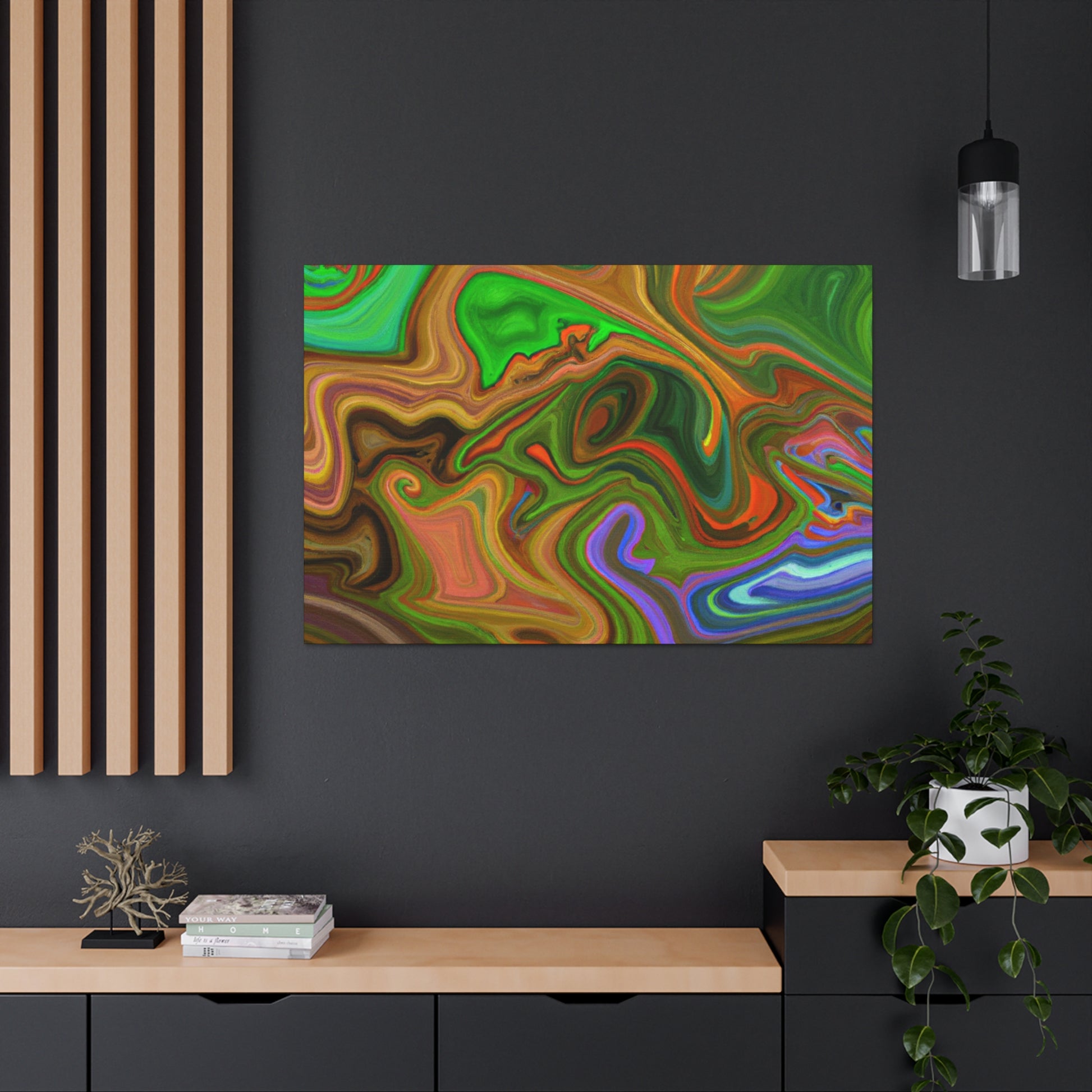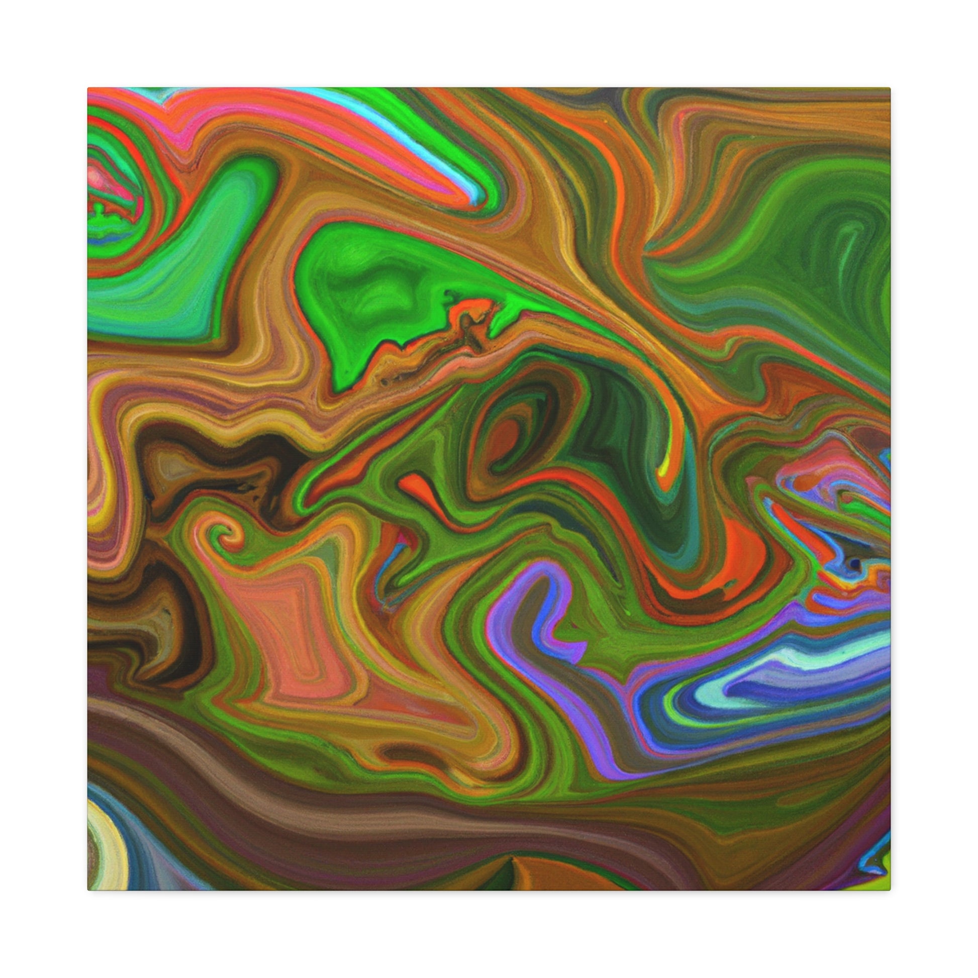 This canvas piece is an intricate work of art, created with vivid hues to create a vivid and trippy experience. Abstract shapes and colors create depth and texture, captivating onlookers with its dreamlike quality. Hang this piece in any room of your home to complete the decor and fill your space with captivating colors. #vibrant #inspired #psychedelic #art #colorful #trippy #creative #expression #abstract #unique #visual
