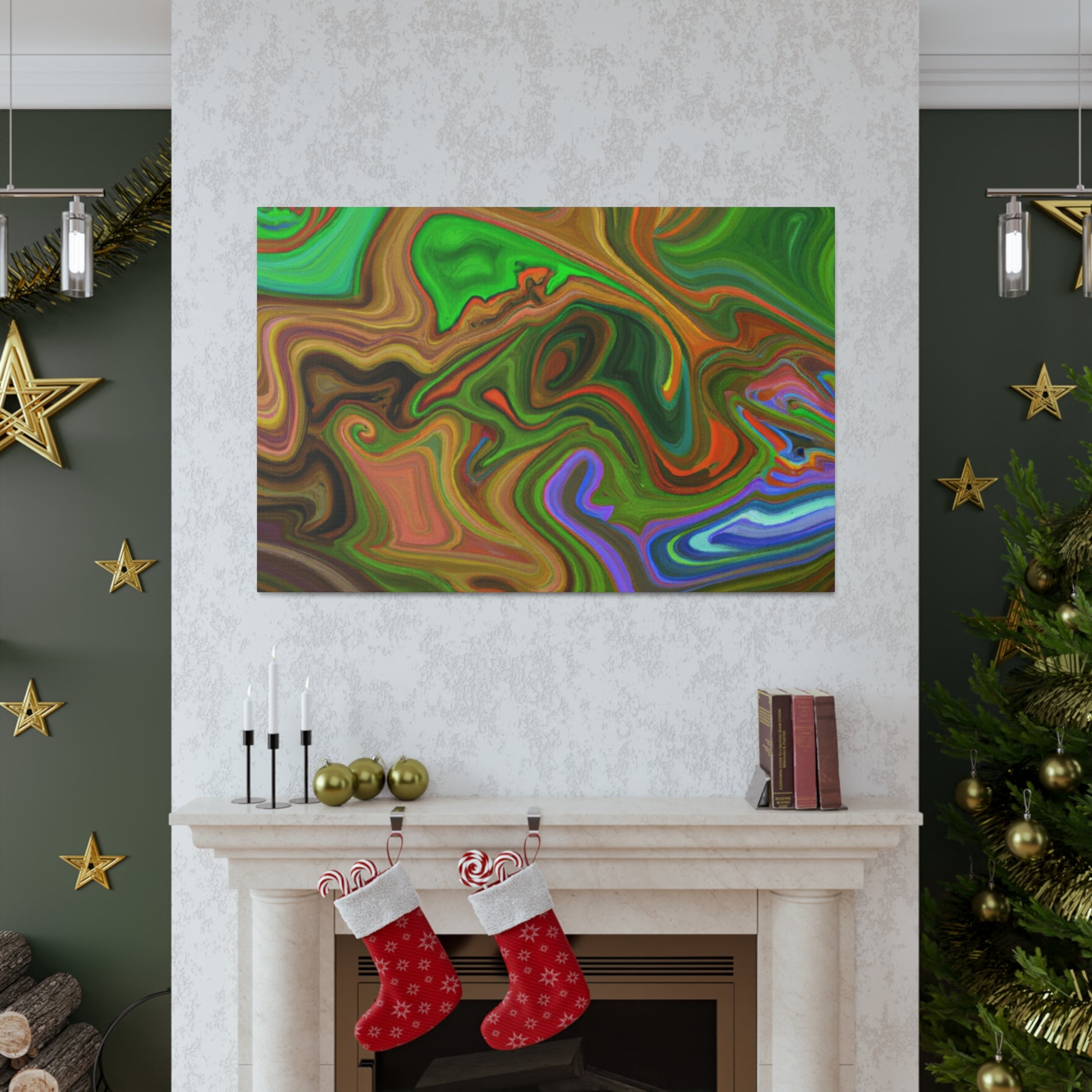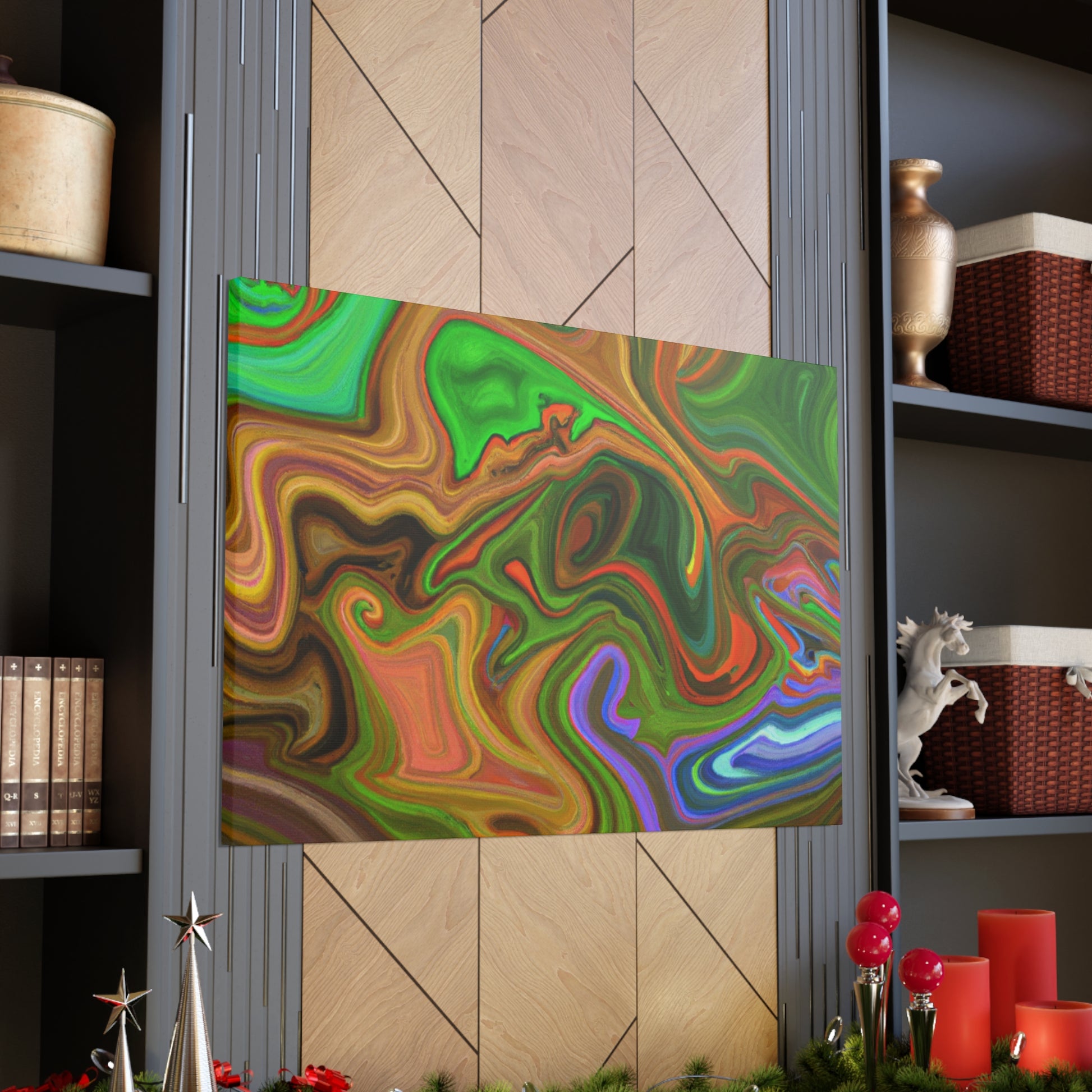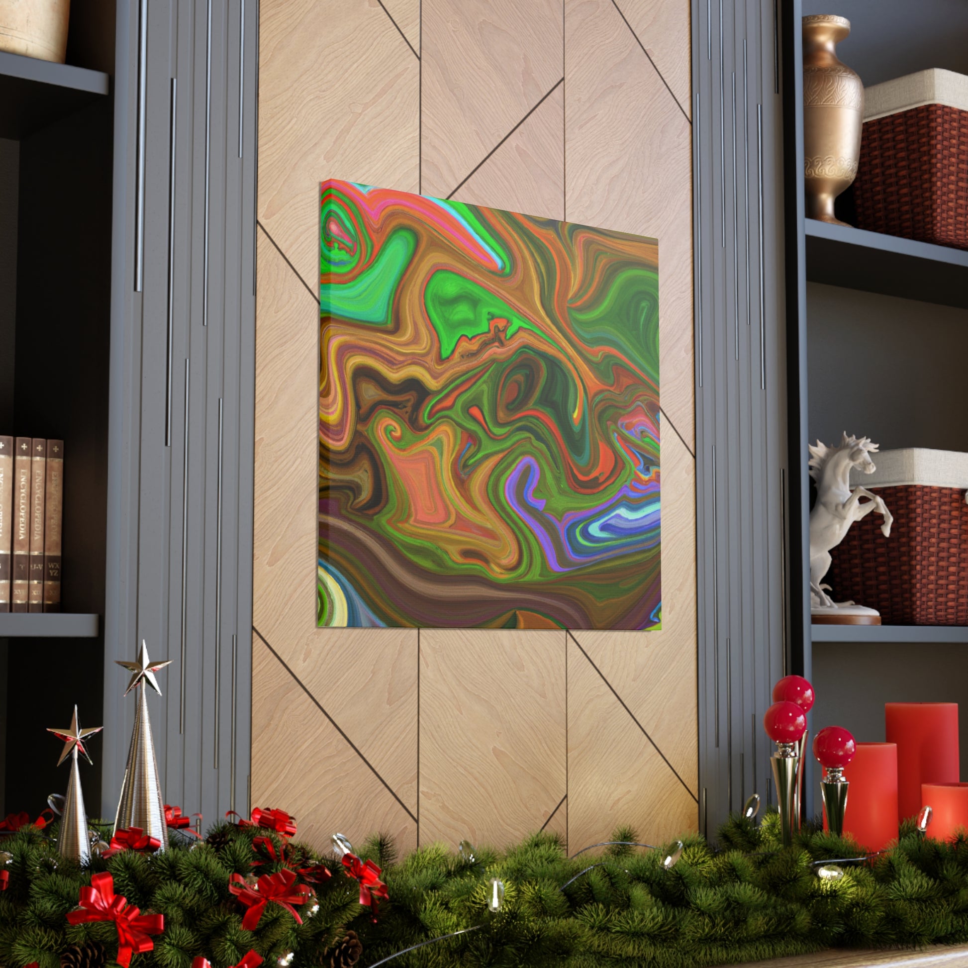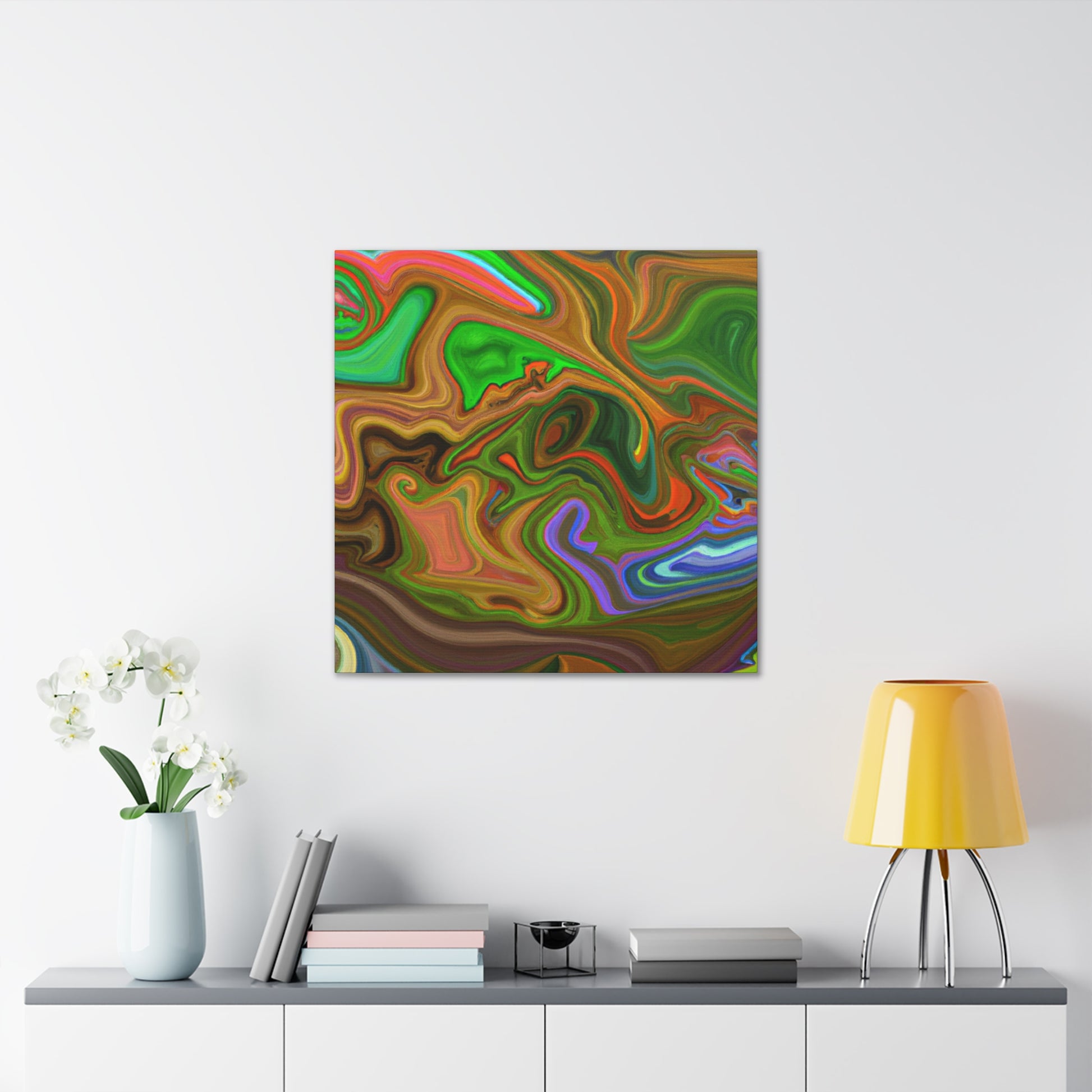 This canvas piece is an intricate work of art, created with vivid hues to create a vivid and trippy experience. Abstract shapes and colors create depth and texture, captivating onlookers with its dreamlike quality. Hang this piece in any room of your home to complete the decor and fill your space with captivating colors. #vibrant #inspired #psychedelic #art #colorful #trippy #creative #expression #abstract #unique #visual