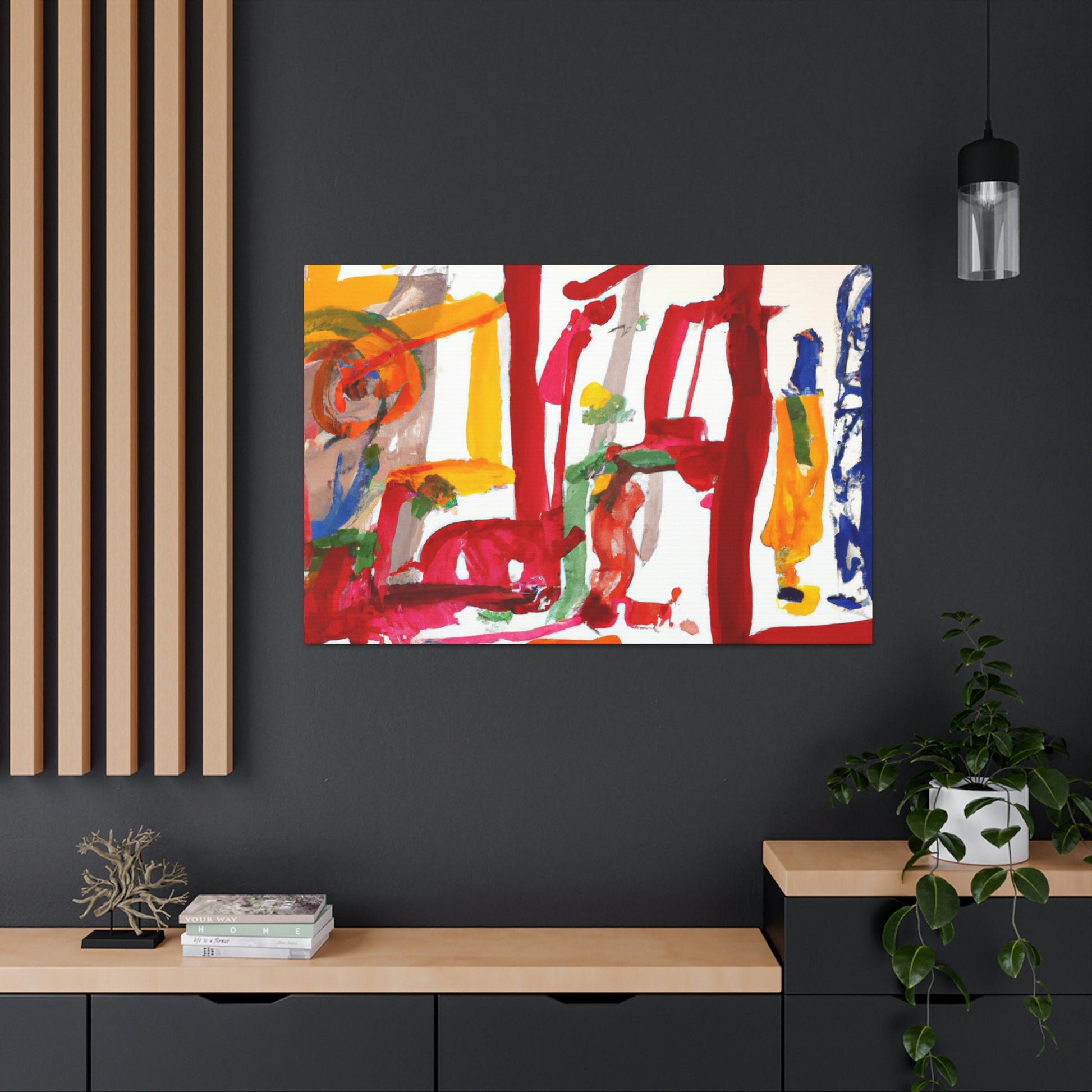 Make a bold statement in your office with this beautiful abstract painting. Ideal for modern interiors, this canvas features playful colors and complex shapes, perfect for inspiring creative ideas. Every brush stroke creates movement, making the colors come alive. Find your own creative flow with this dynamic and calming piece of art. #abstractofficepainting #abstractcanvas #colorfulart #modernpainting #interiordecor #homedecor #officeart #canvaspainting #officeinspiration #creativeart #artdecorand