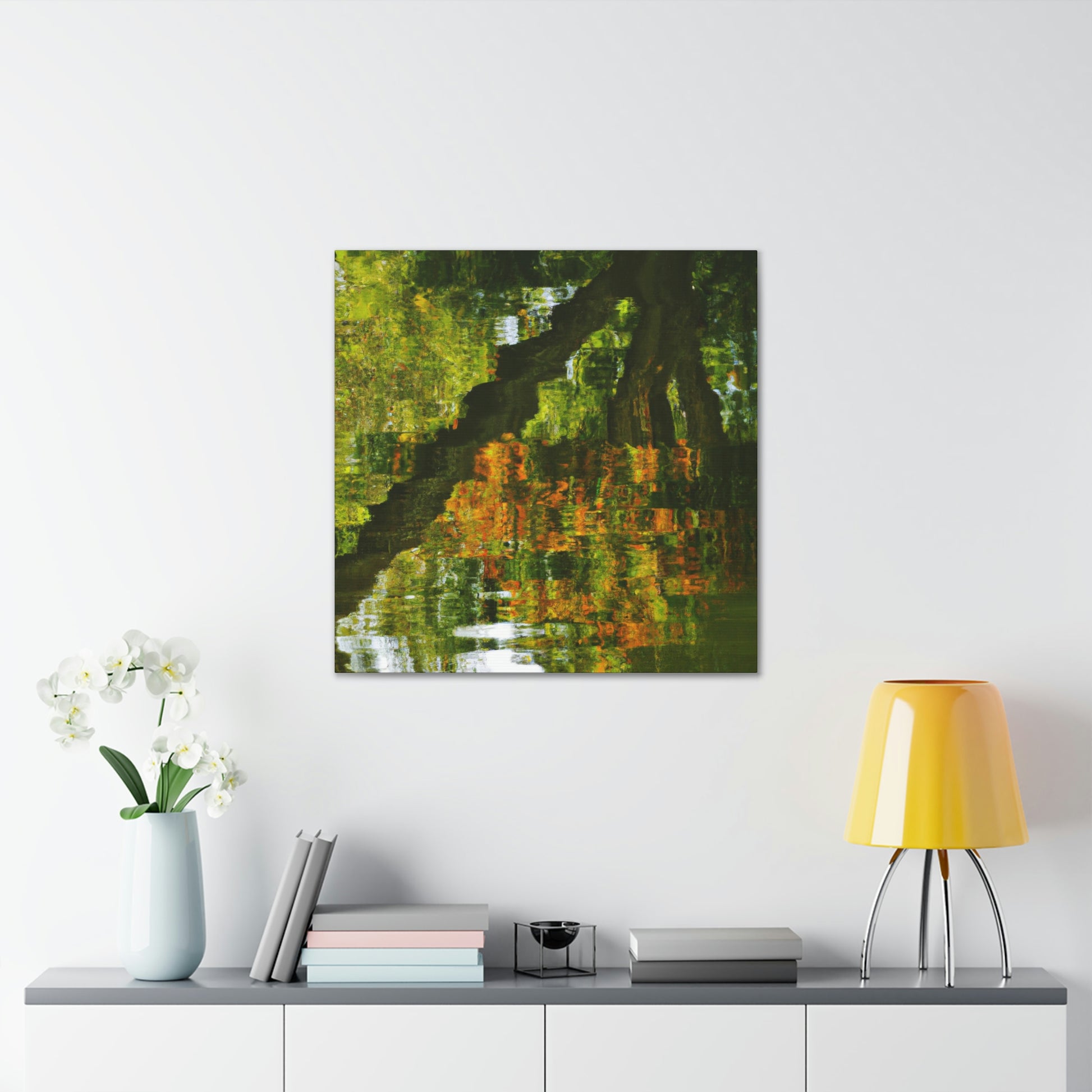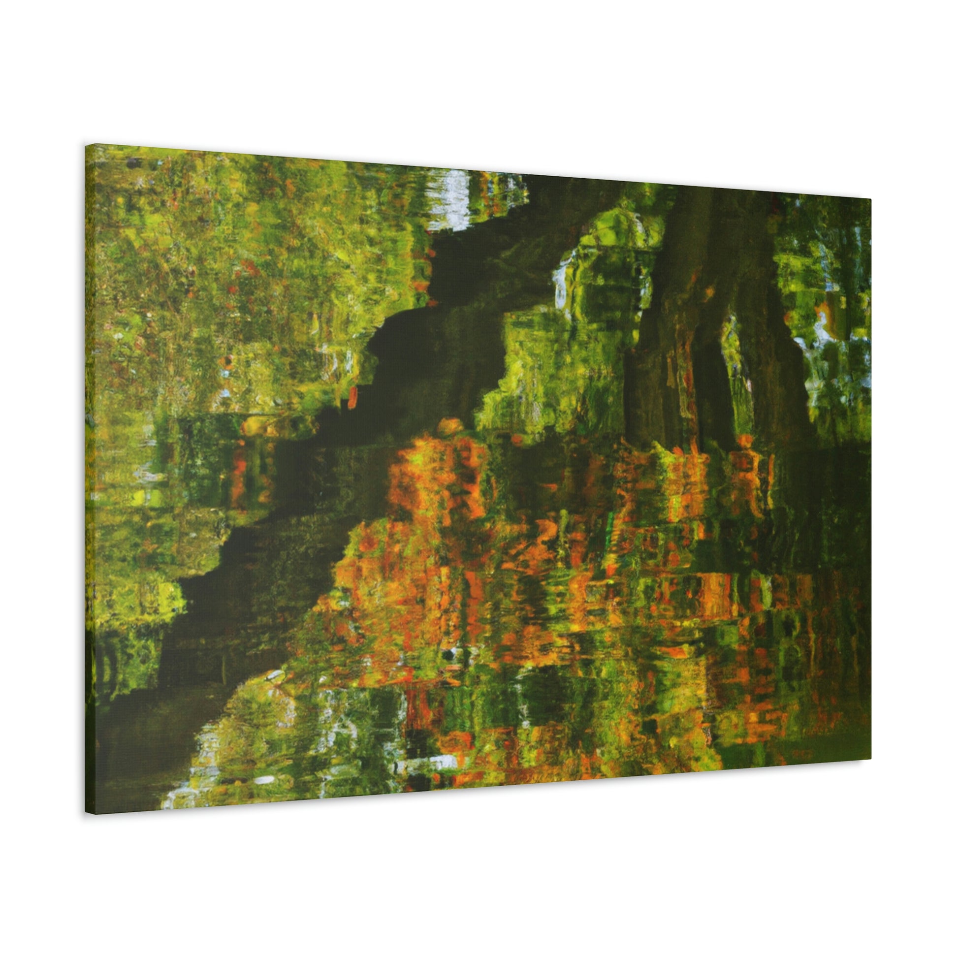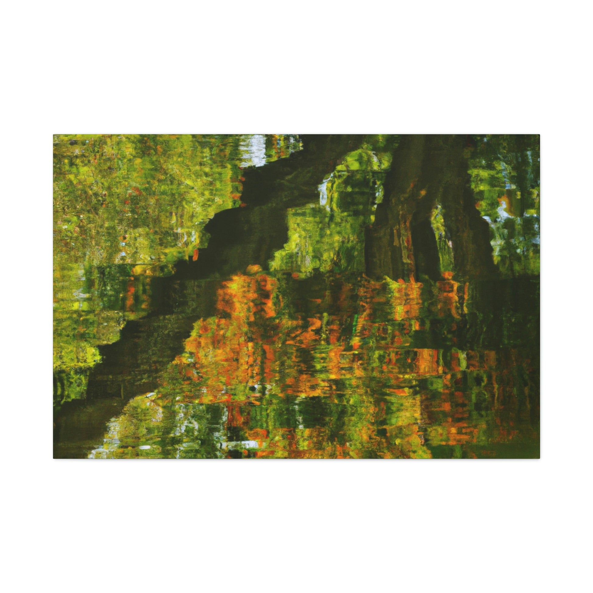This distinctive canvas is perfect for large walls, featuring a beautiful reflection and water painting. This artwork is embellished with intricate strokes of color and light, giving it a truly unique character. Add a touch of grandeur to your space and make a statement with this mesmerizing painting. #artwork #canvas #painting #reflection #waterpainting #interiordesign #homedecor #statementpiece #swirlingcolors #intricatestrokes #lightandcolor #and