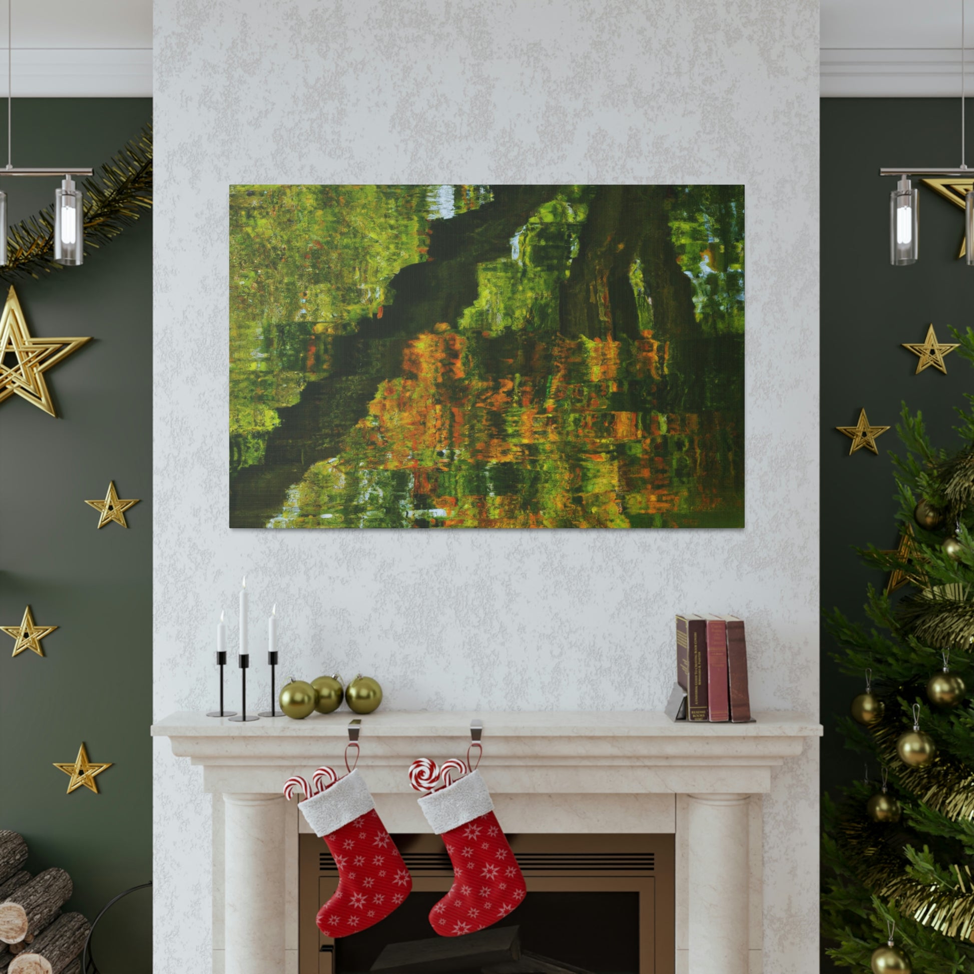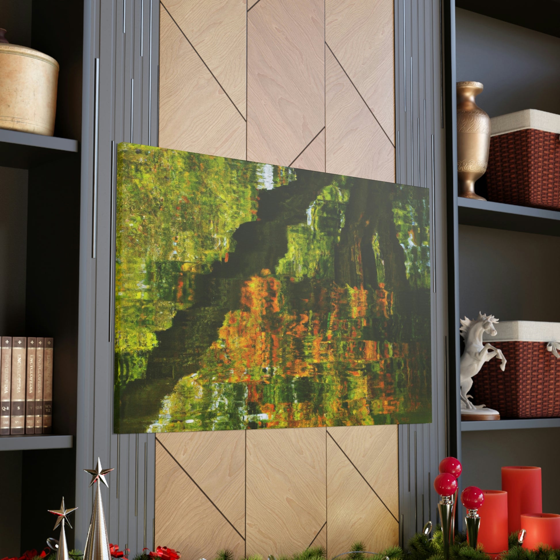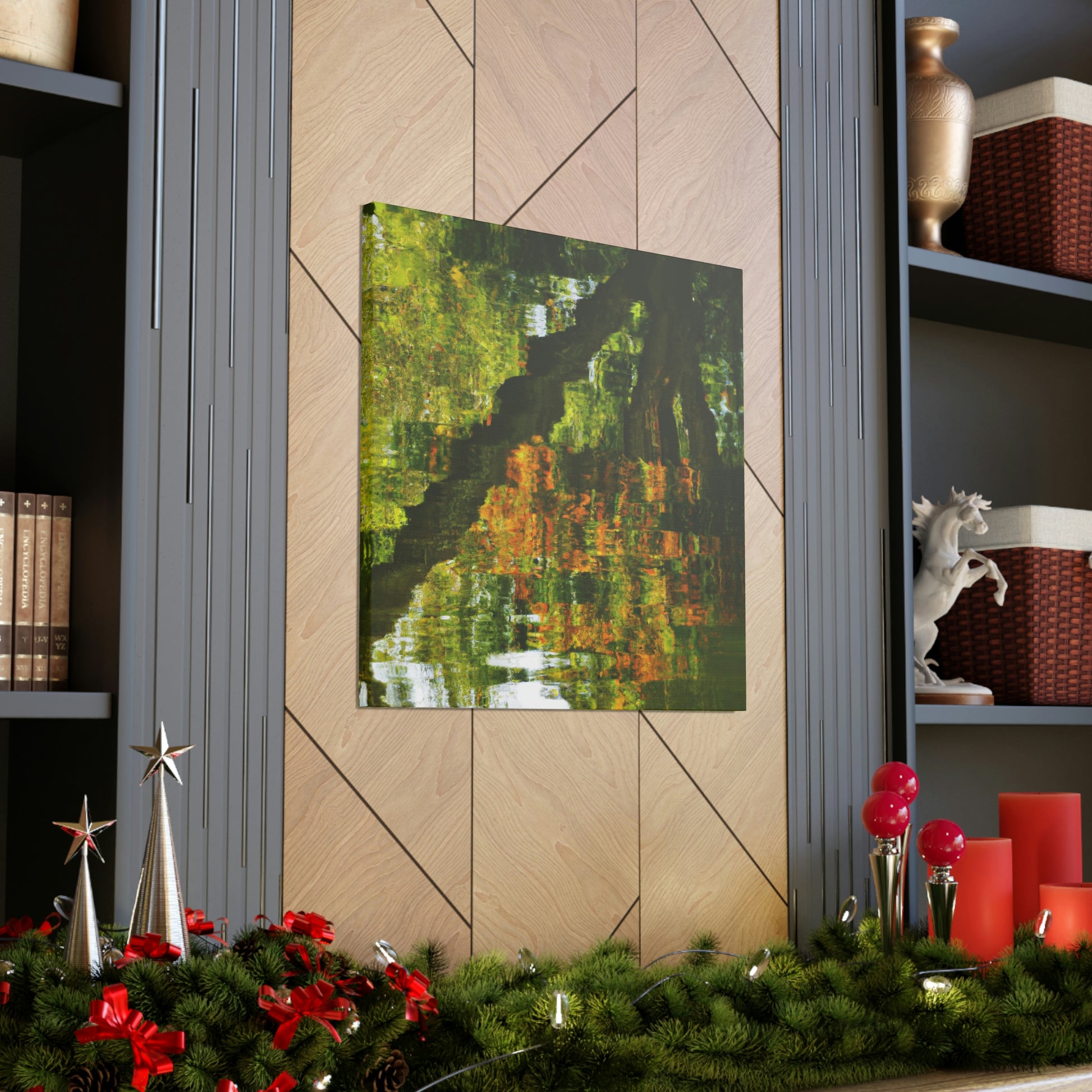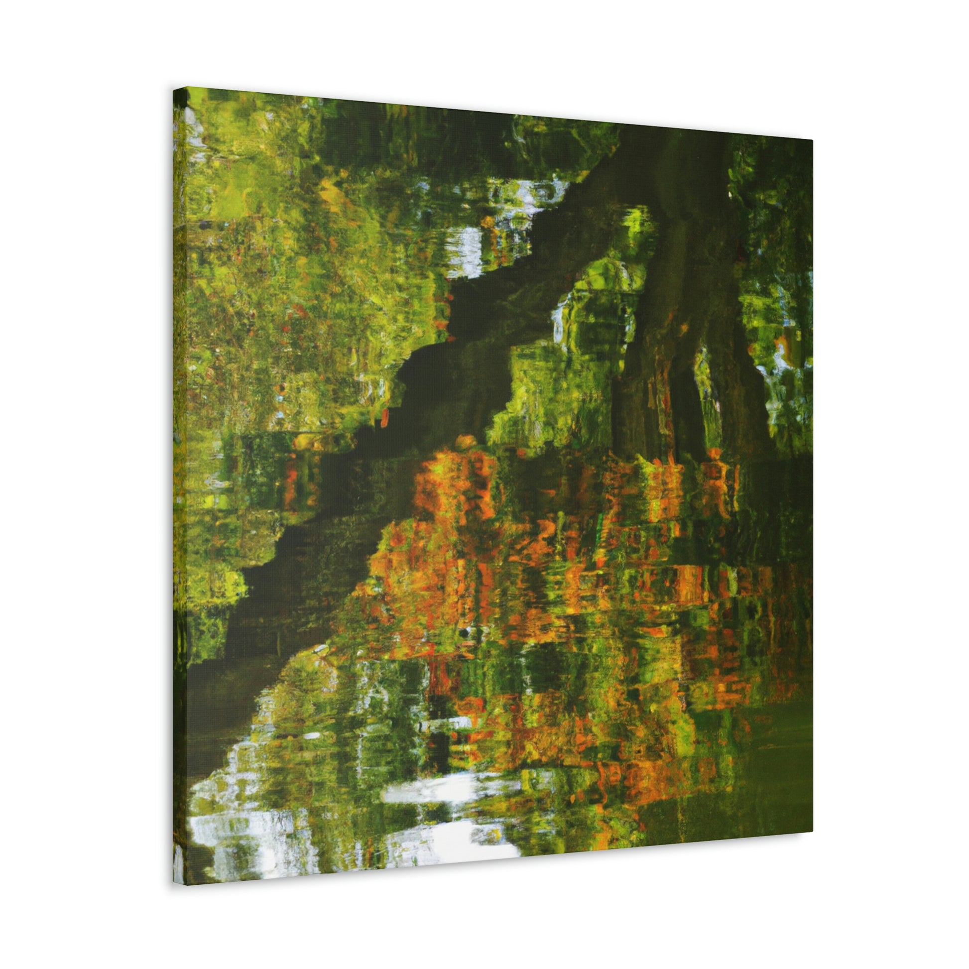 This distinctive canvas is perfect for large walls, featuring a beautiful reflection and water painting. This artwork is embellished with intricate strokes of color and light, giving it a truly unique character. Add a touch of grandeur to your space and make a statement with this mesmerizing painting. #artwork #canvas #painting #reflection #waterpainting #interiordesign #homedecor #statementpiece #swirlingcolors #intricatestrokes #lightandcolor #and