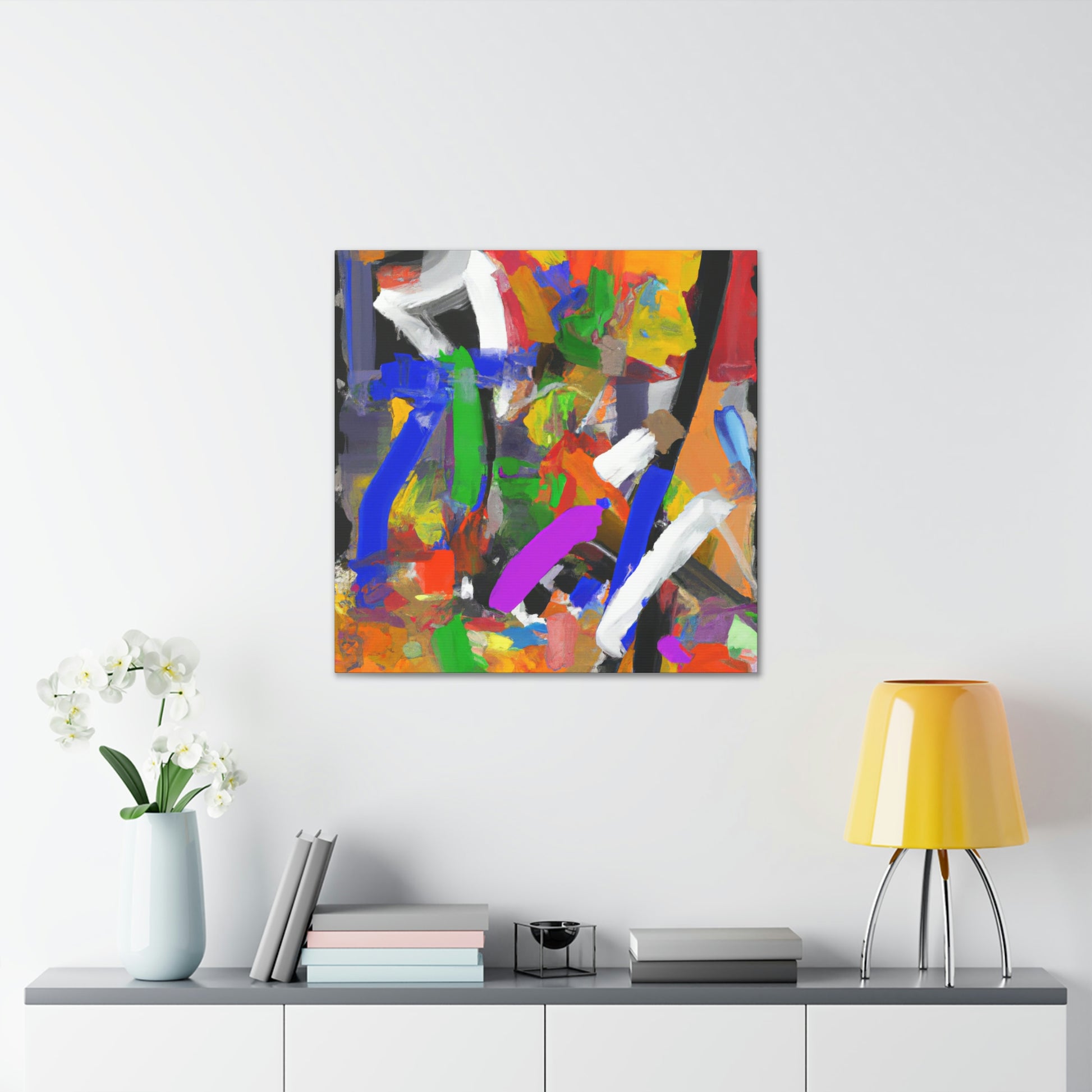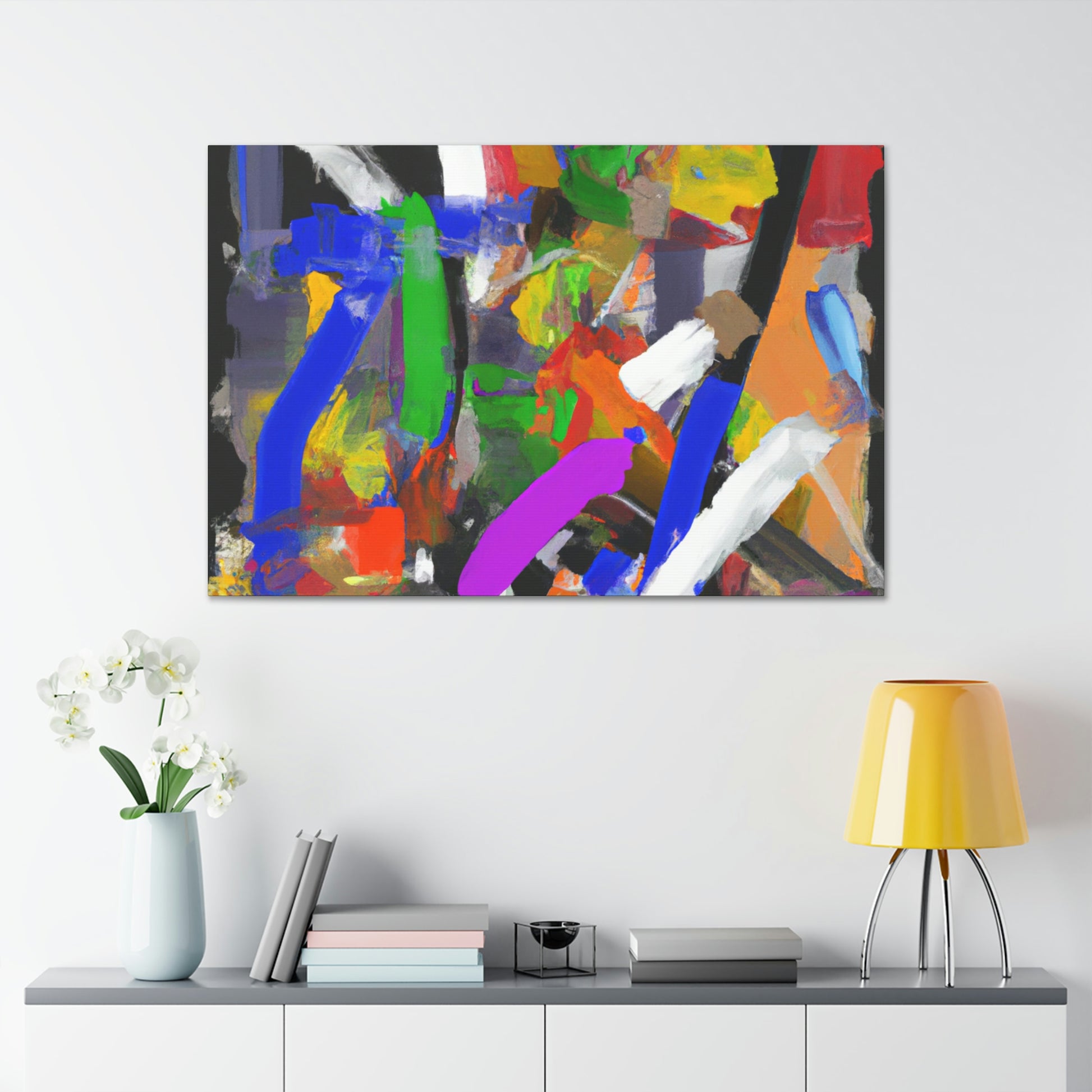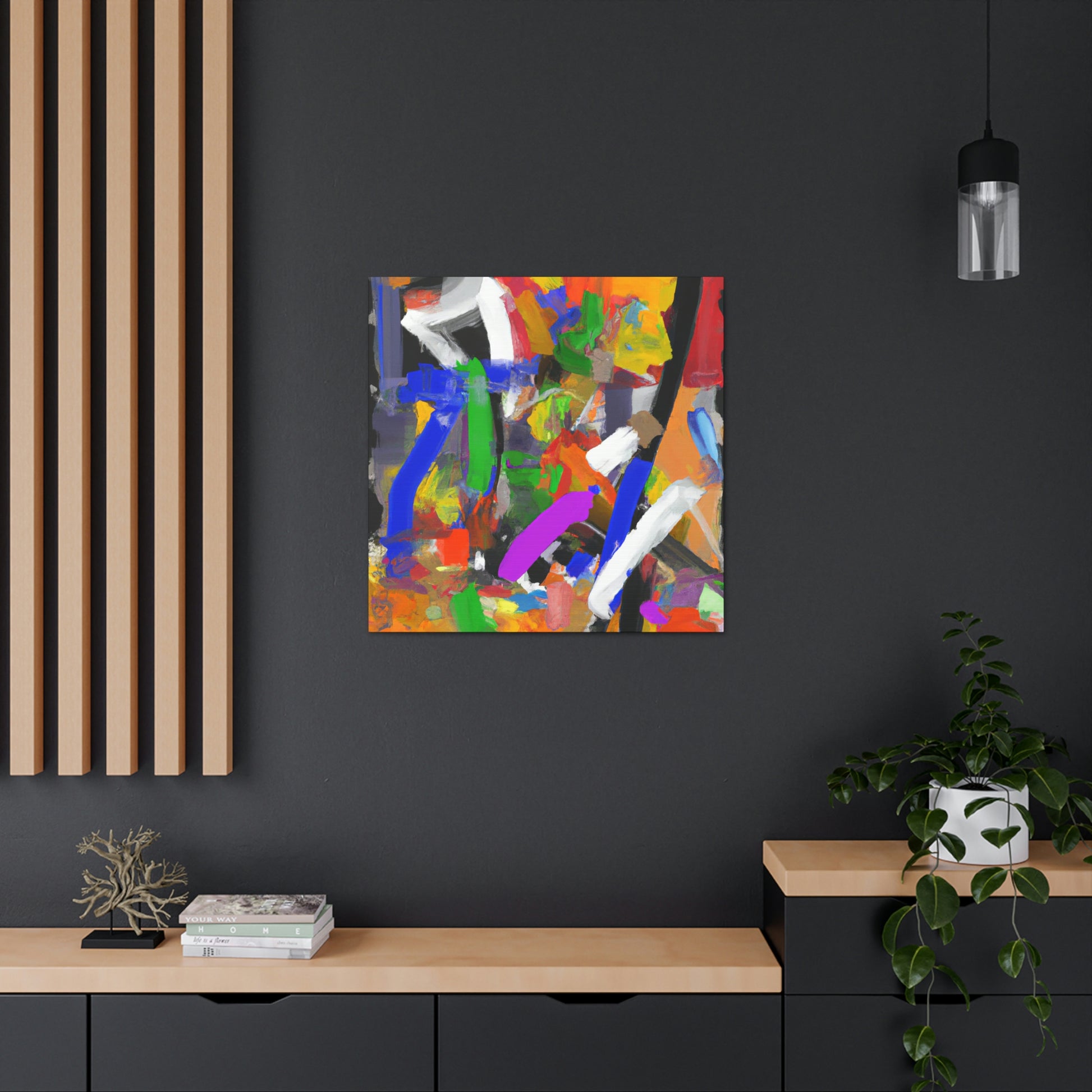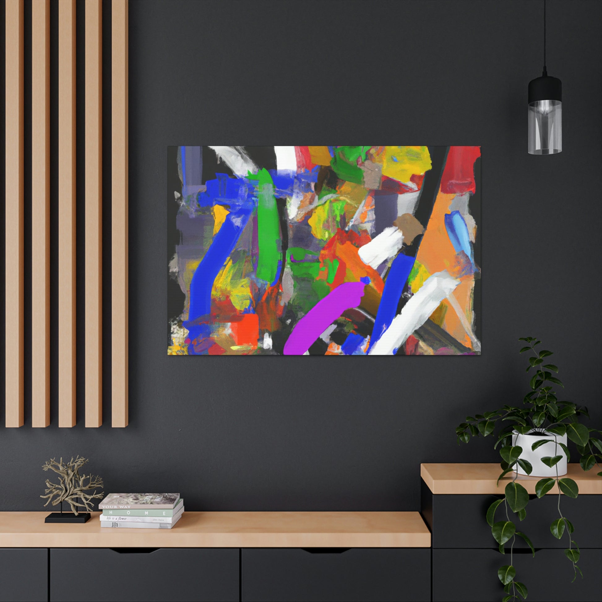 This vibrant abstract office painting will bring life to your workspace! This eye-catching piece of art is perfect for the home or professional office, with its unique design and various colors that help to create a positive atmosphere. The painting is sure to generate conversation and provide an uplifting energy in any room. It is printed on quality materials and perfect for adding a wow factor to your décor. #abstract #art #officeart #painting #canvas #contemporaryart #modernart #workspace #homedecor #wallart #interiordesign and #design