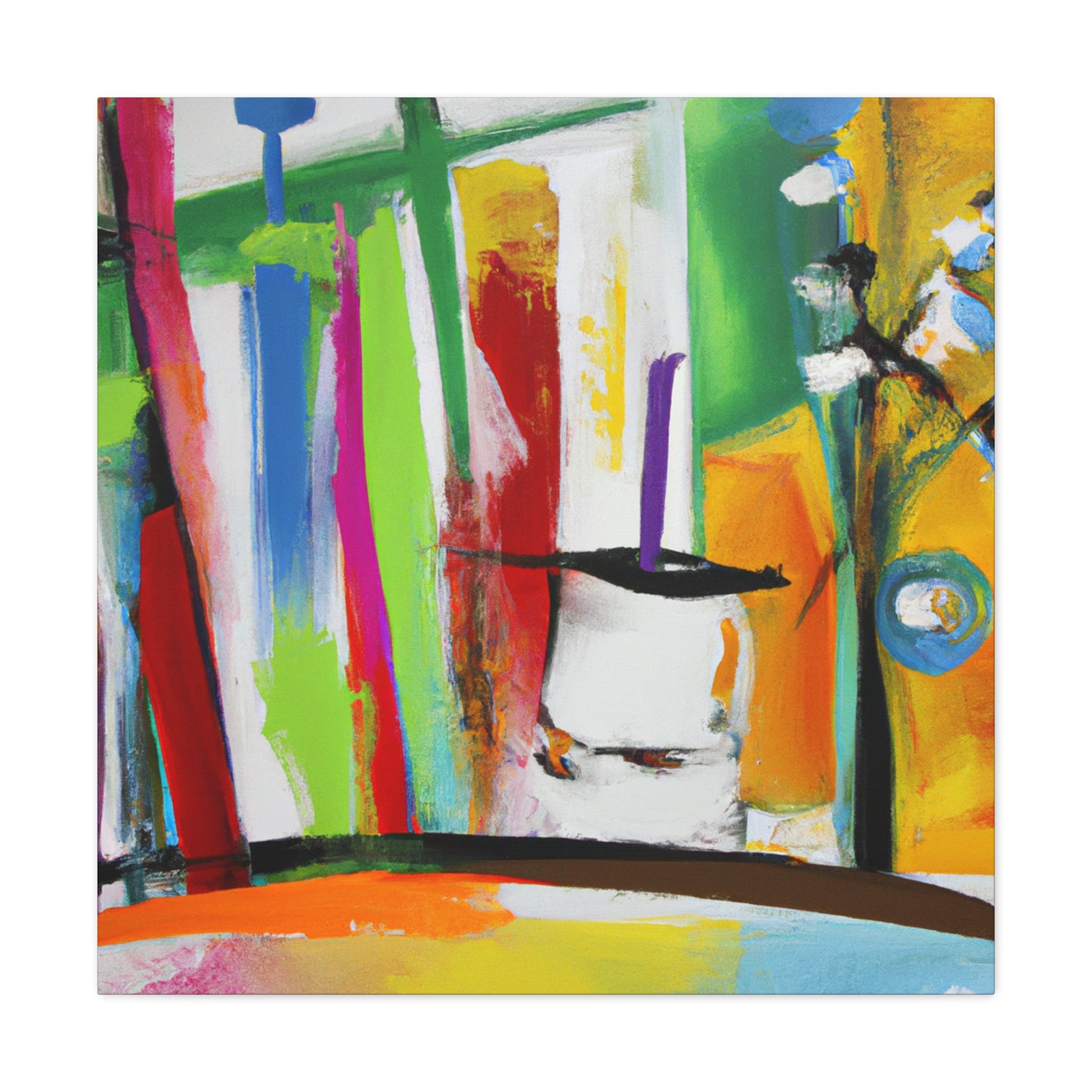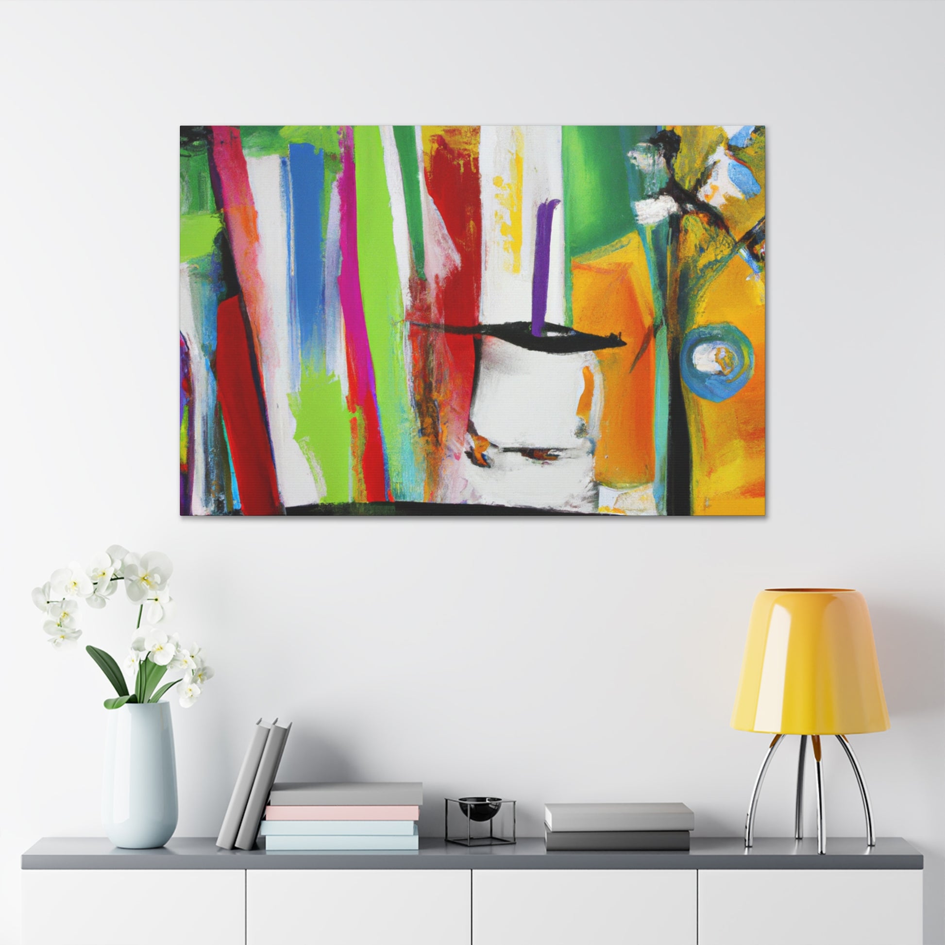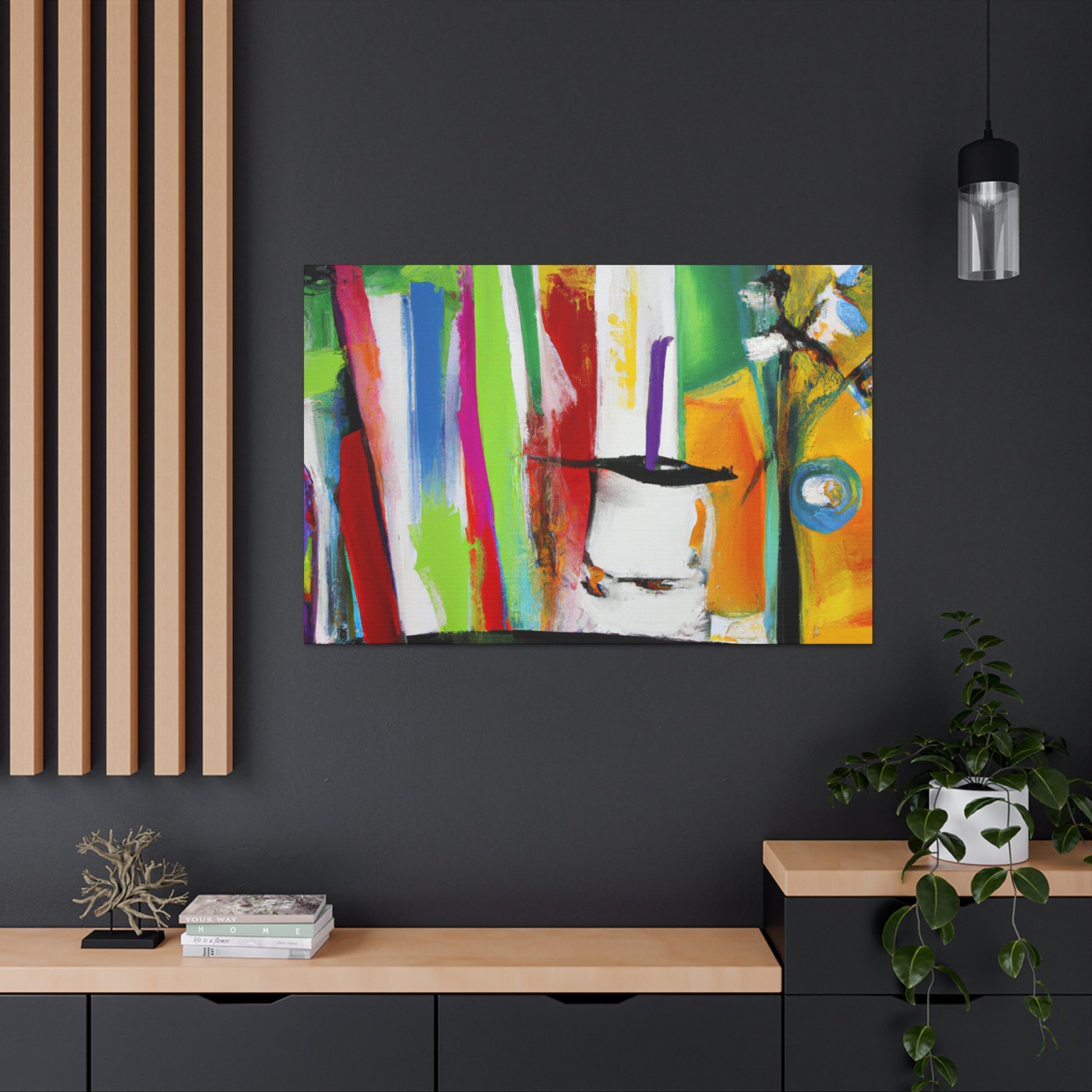 This abstract office painting is a perfect way to bring a little art and character to your work space. Its bold, contemporary brush strokes offer a unique style of abstract color blending that will draw attention and provide an eye-catching backdrop to your office. The canvas is high quality and mounted on a heavy wooden back for stability and durability. Perfect to hang in an office, boardroom or home, this abstract painting will bring a modern and creative edge to any setting. #interiordesign #officedecor #abstractart #abstractpainting #abstractartwork #canvasartwork #colourfulart #artdeco #contemporaryart #creativeinspo #homedecorand