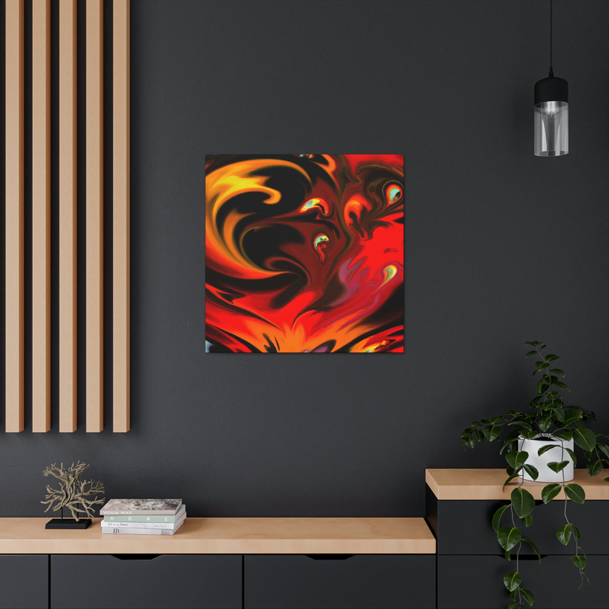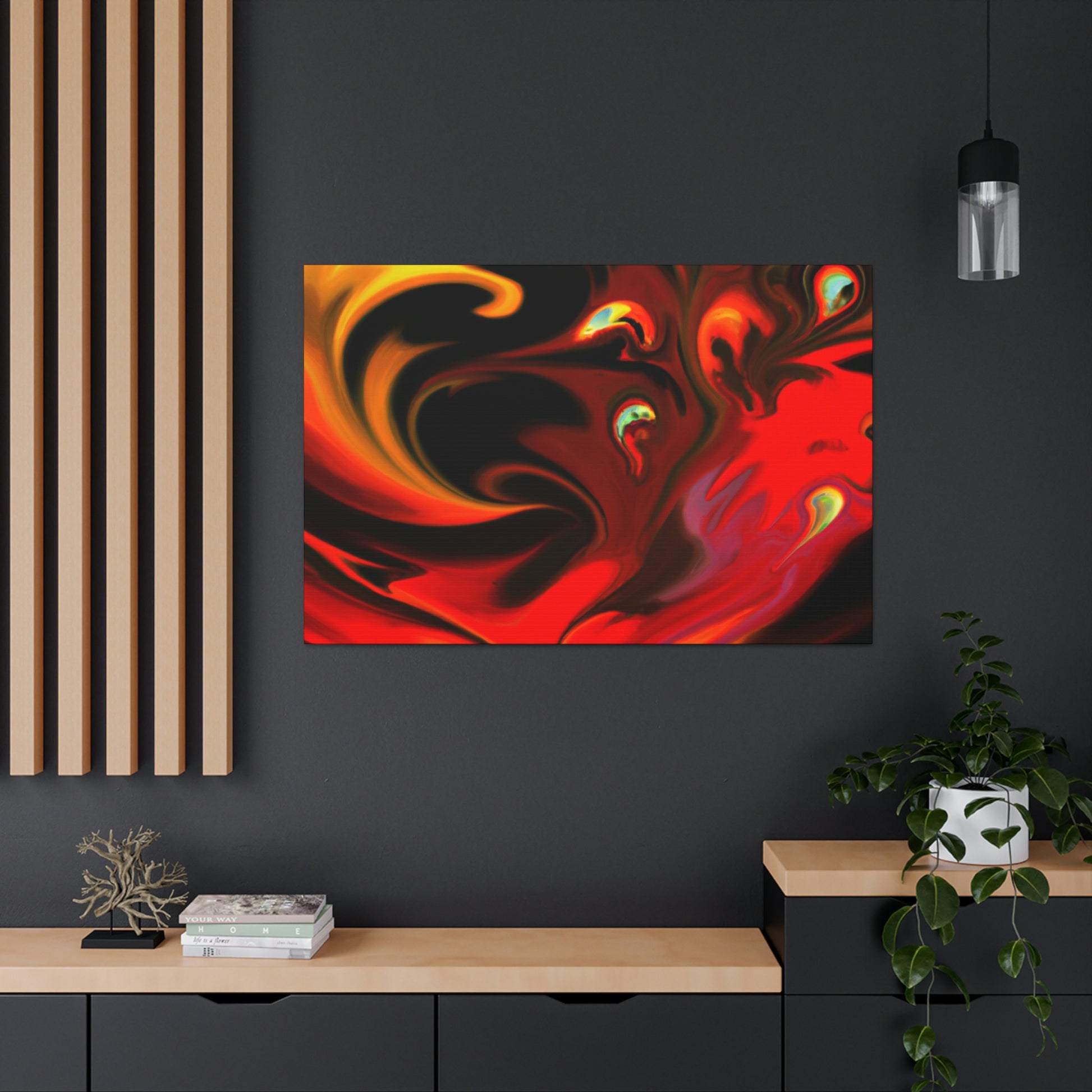 This canvas is a great addition to any home - it will make a bold statement with a splash of colour! Featuring the use of vibrant hues, this painting is sure to make its mark. Our canvas is designed to look like a masterpiece created by some of the greatest artists. It can easily be hung on any wall to let its beauty shine. Guaranteed to bring a unique and creative atmosphere to any space, it's perfect for those who love bold art! #canvas #art #trippypainting #colorful #bold #creative #unique #statementpiece #artistic #style #homedecor and #interiordesign