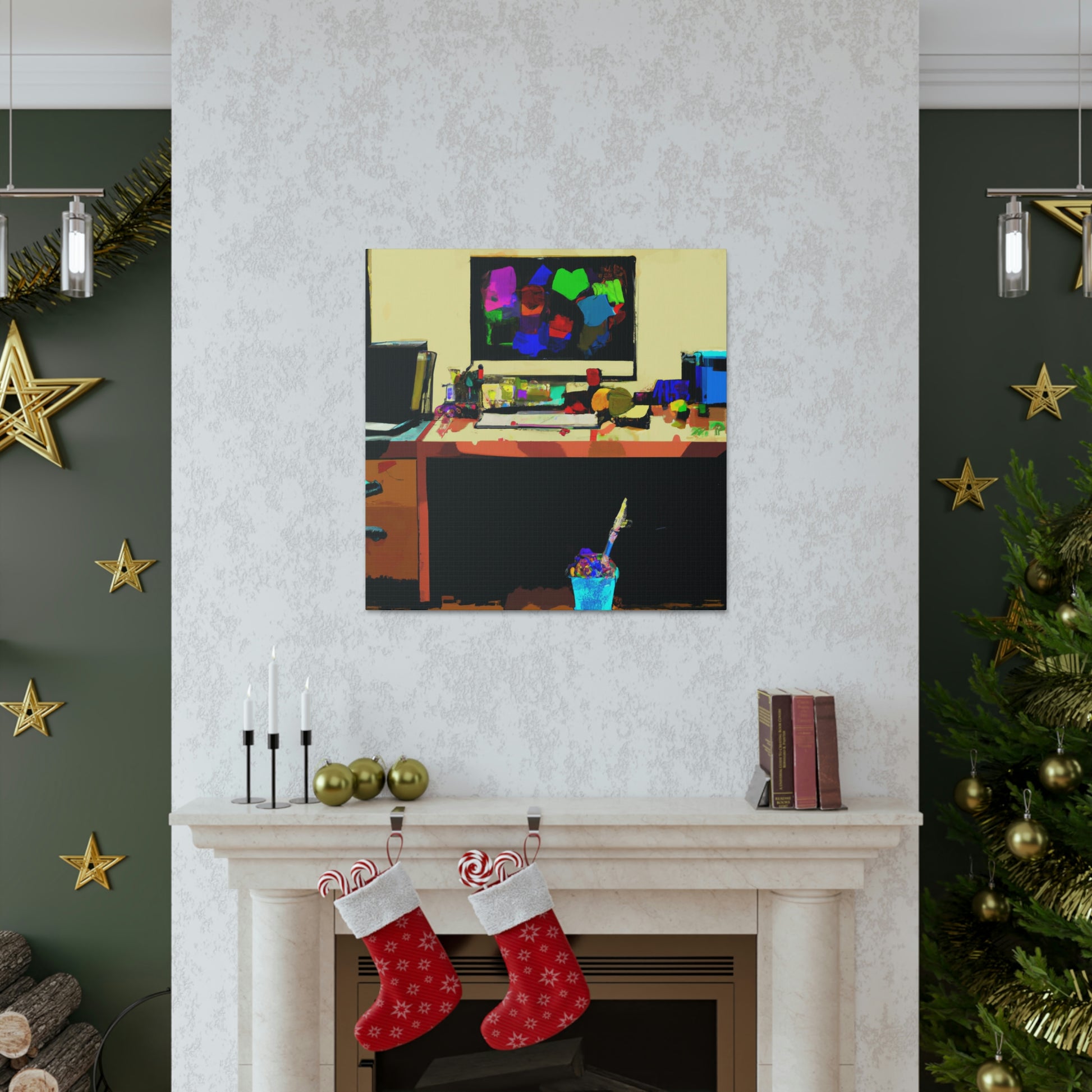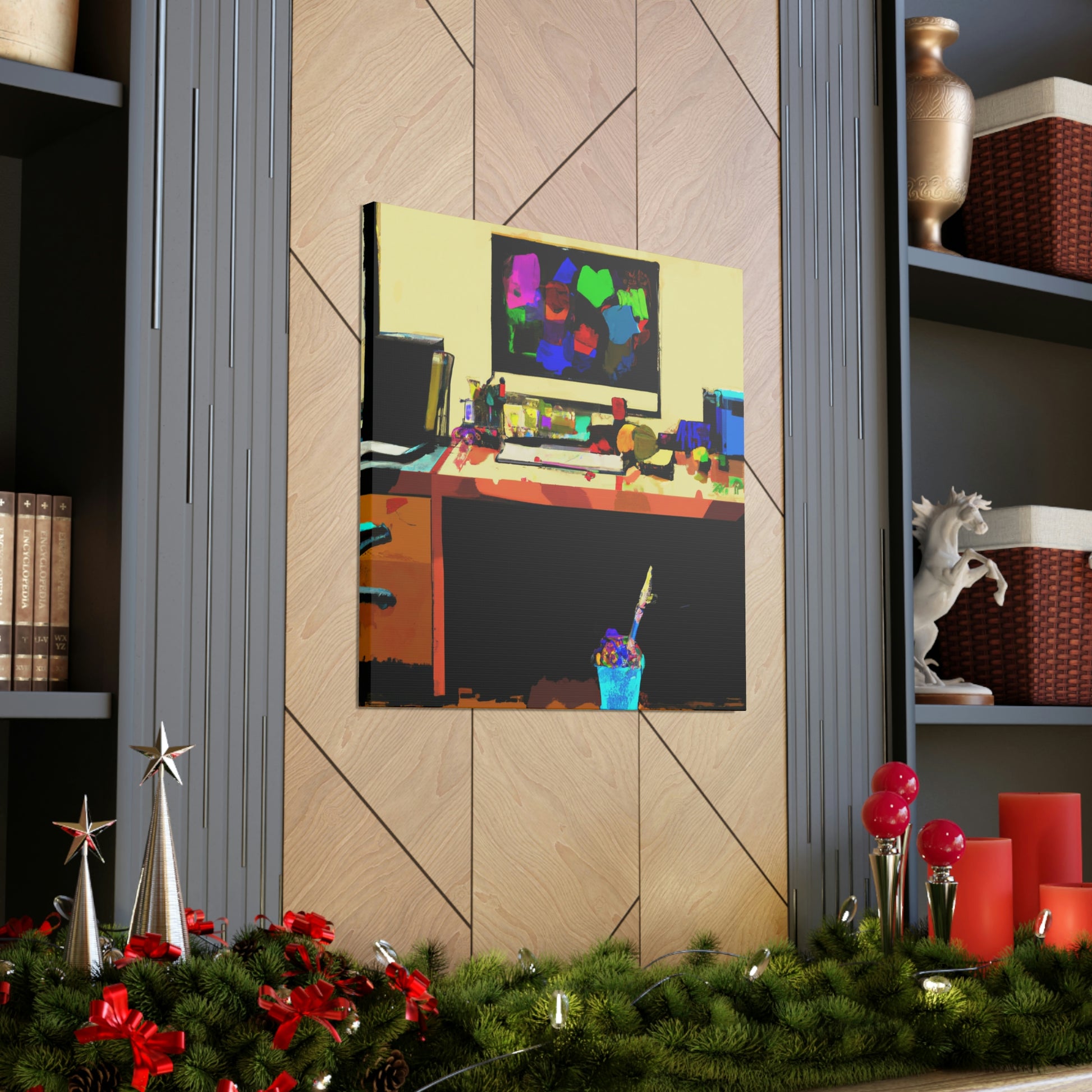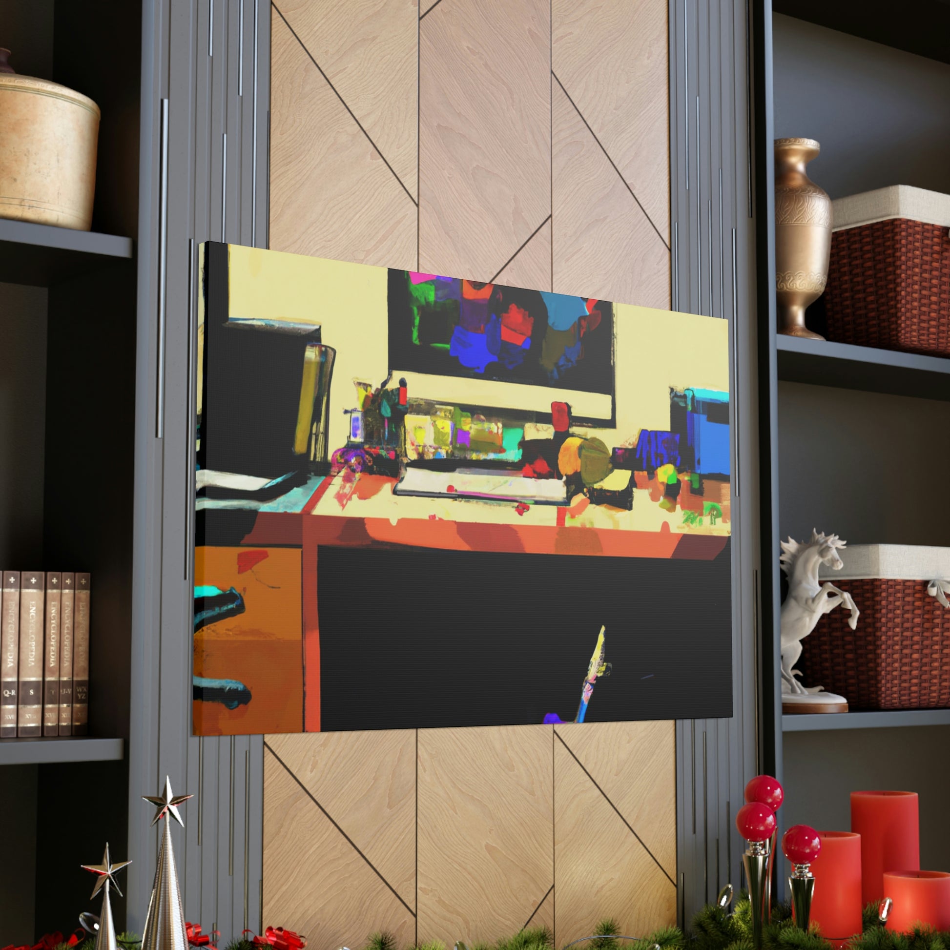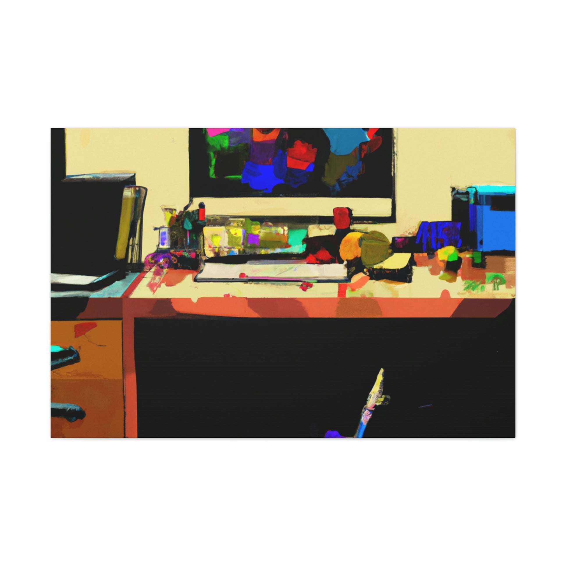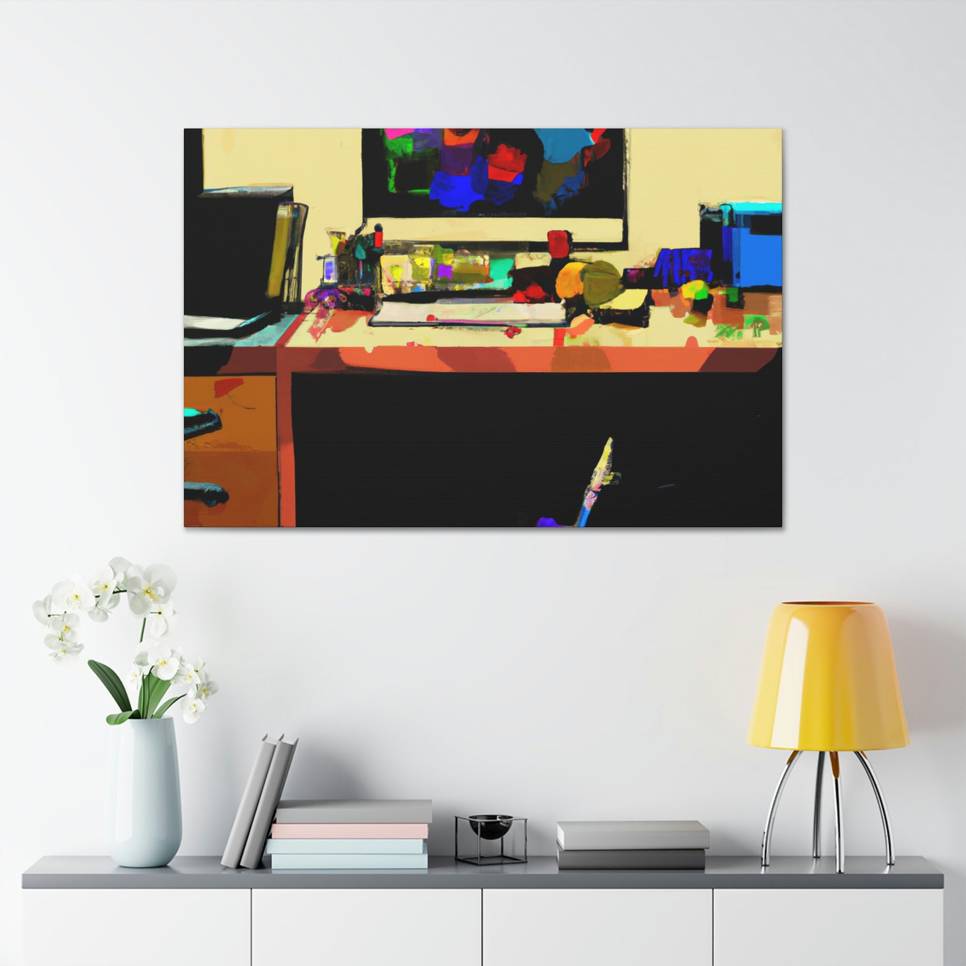 This abstract office painting depicting the modern and contemporary life of a great artist will enliven the walls of your workspace. It is a vibrant mix of colours and shapes, making it a beautiful conversation piece. The artwork is hand painted organically with acrylics, creating unique and stunning visual effects. This canvas is sure to take your office to the next level of stylish sophistication. #abstractart #modernart #contemporaryart #abstractpainting #officepainting #artlover #artistlife #officeart #wallart #workspace and #homedecor