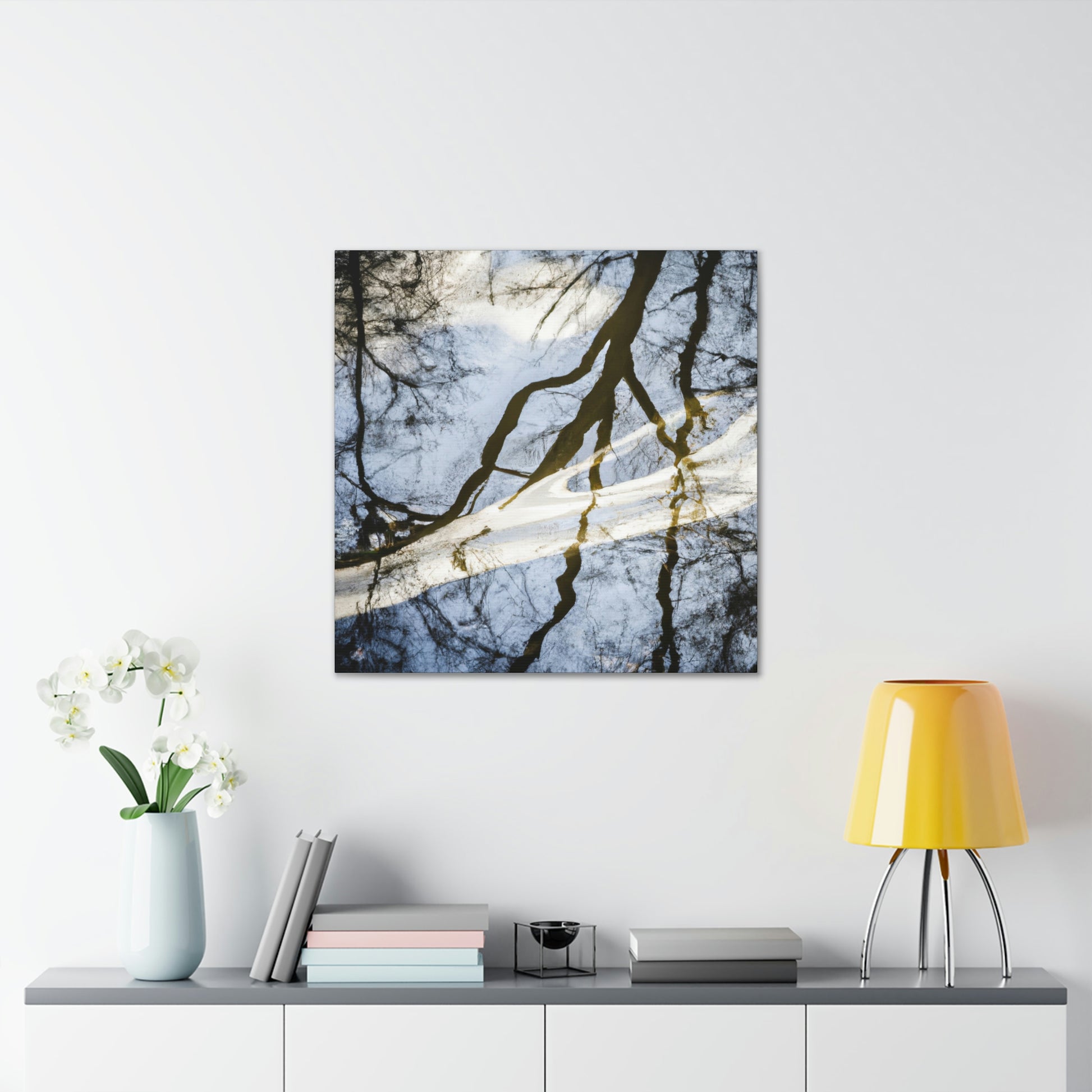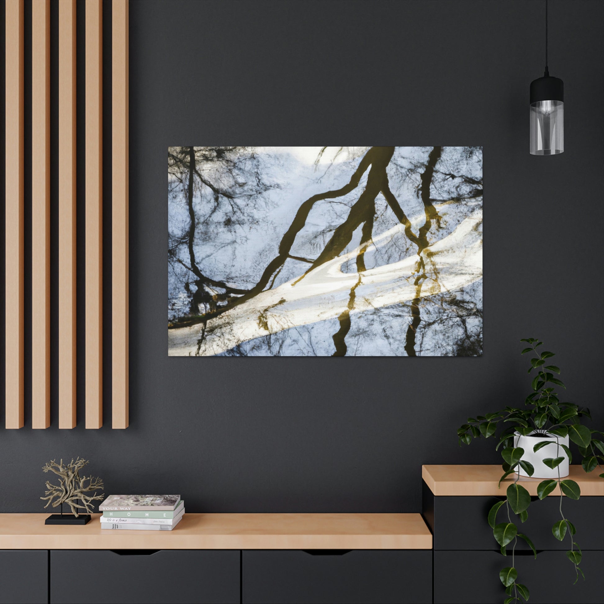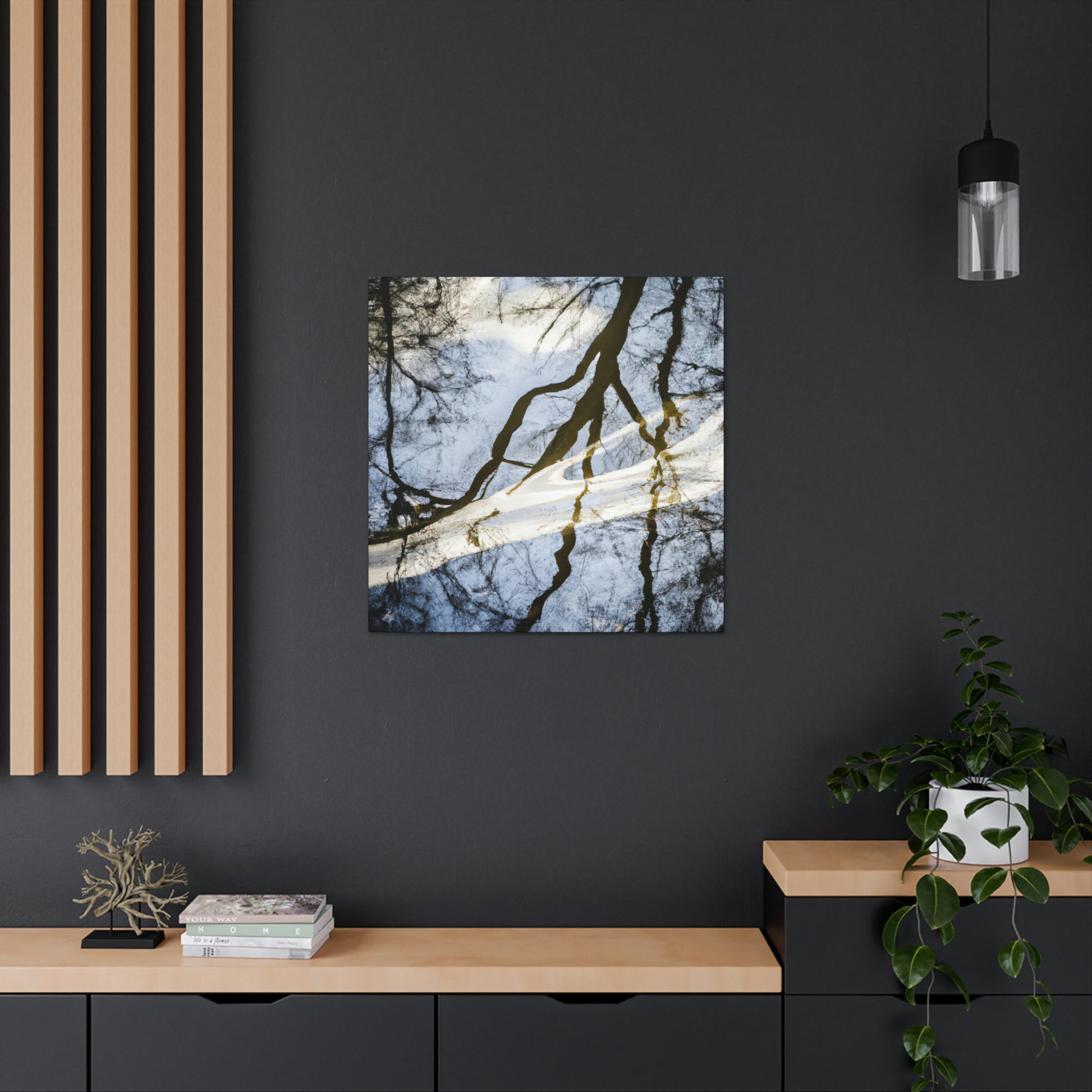 This majestic painting captures a beautiful landscape of reflected trees and tranquil water. The skill of the artists shines through, as every brush stroke brings out the vivid colors bathing over the canvas. From the various shades of blues to the pops of green on the trees, it truly is a sight to behold. Let this incredible painting bring peace and serenity to your space. #oilpainting #paintingart #landscapepainting #contemporaryart #modernart #reflectionpainting #watterpainting #artwork #canvasart #fineart #decorart