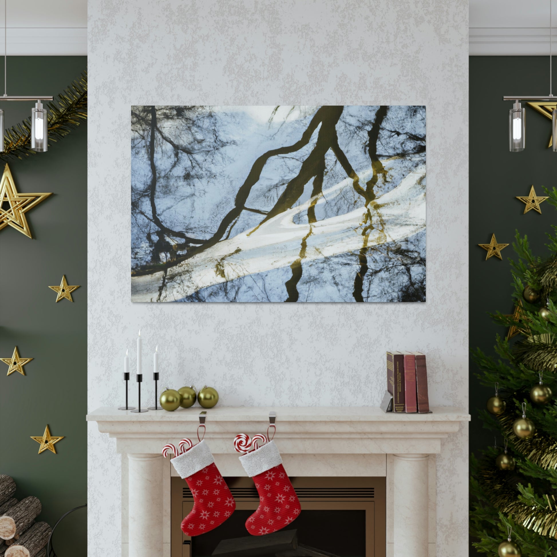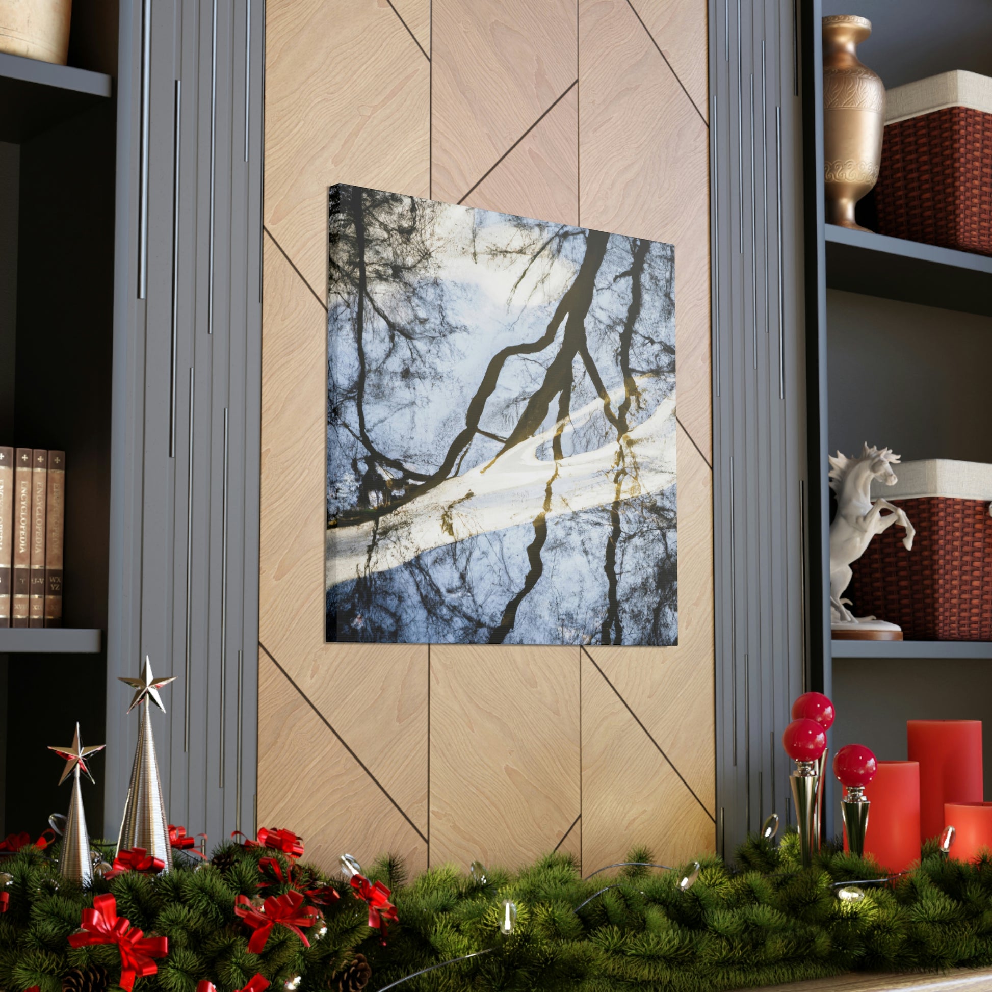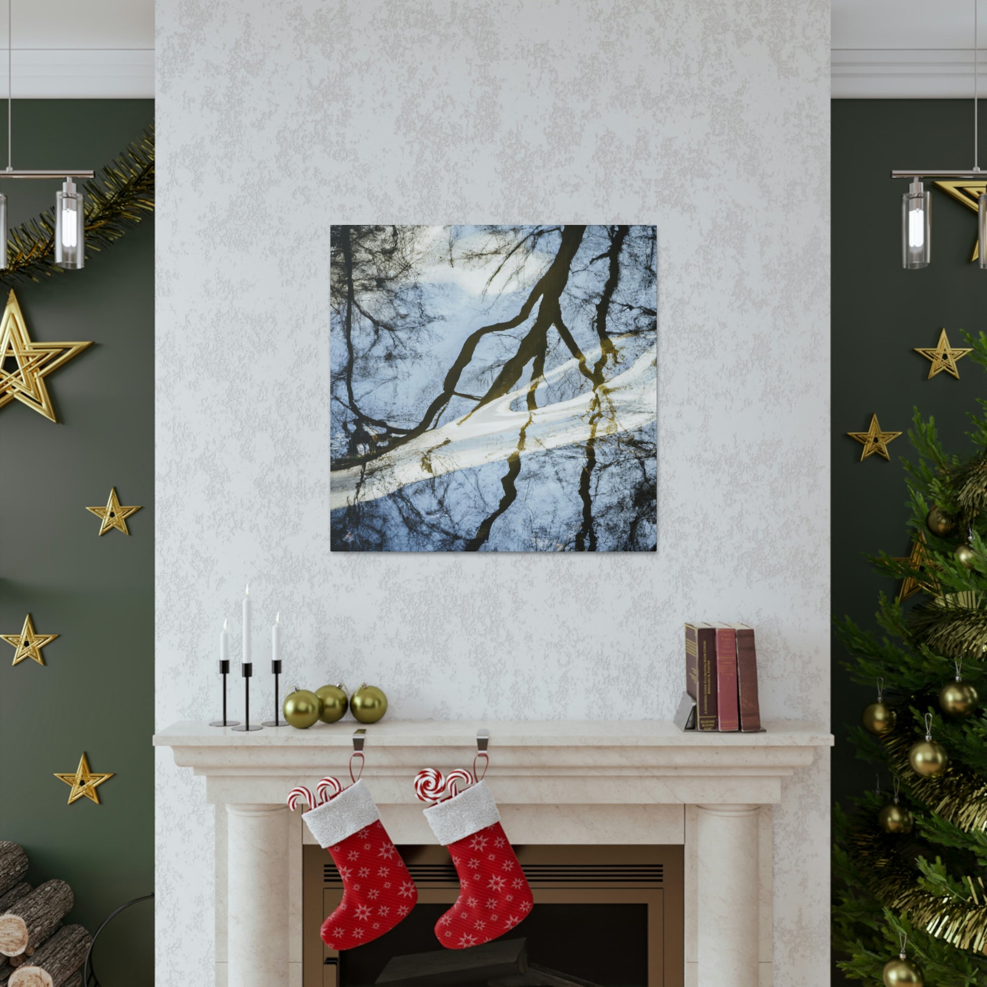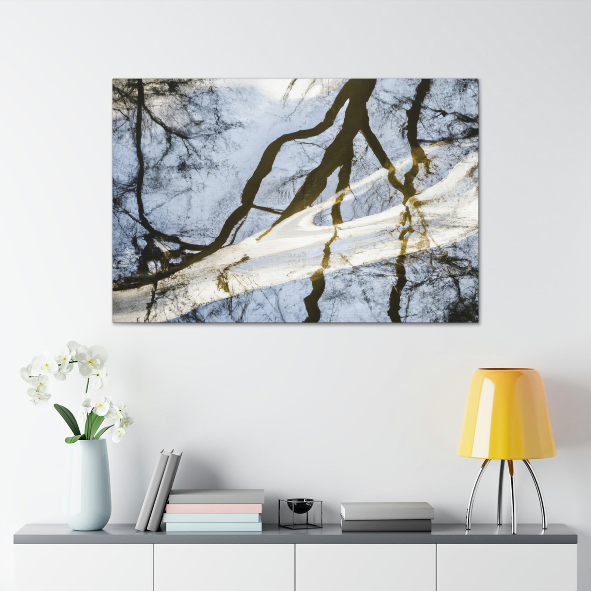 This majestic painting captures a beautiful landscape of reflected trees and tranquil water. The skill of the artists shines through, as every brush stroke brings out the vivid colors bathing over the canvas. From the various shades of blues to the pops of green on the trees, it truly is a sight to behold. Let this incredible painting bring peace and serenity to your space. #oilpainting #paintingart #landscapepainting #contemporaryart #modernart #reflectionpainting #watterpainting #artwork #canvasart #fineart #decorart