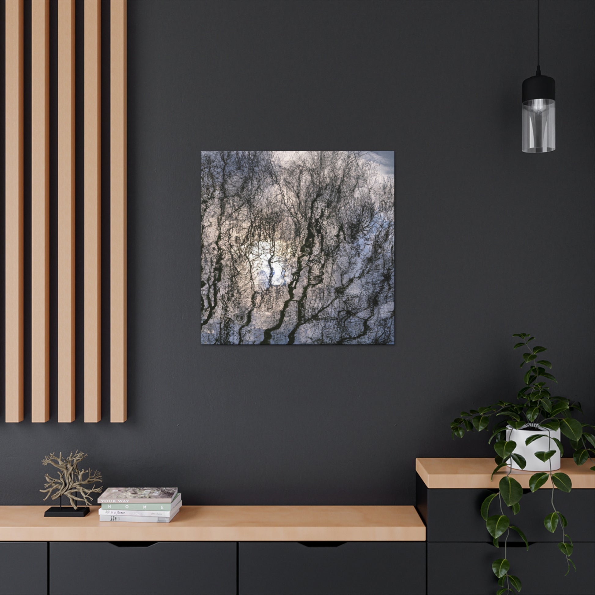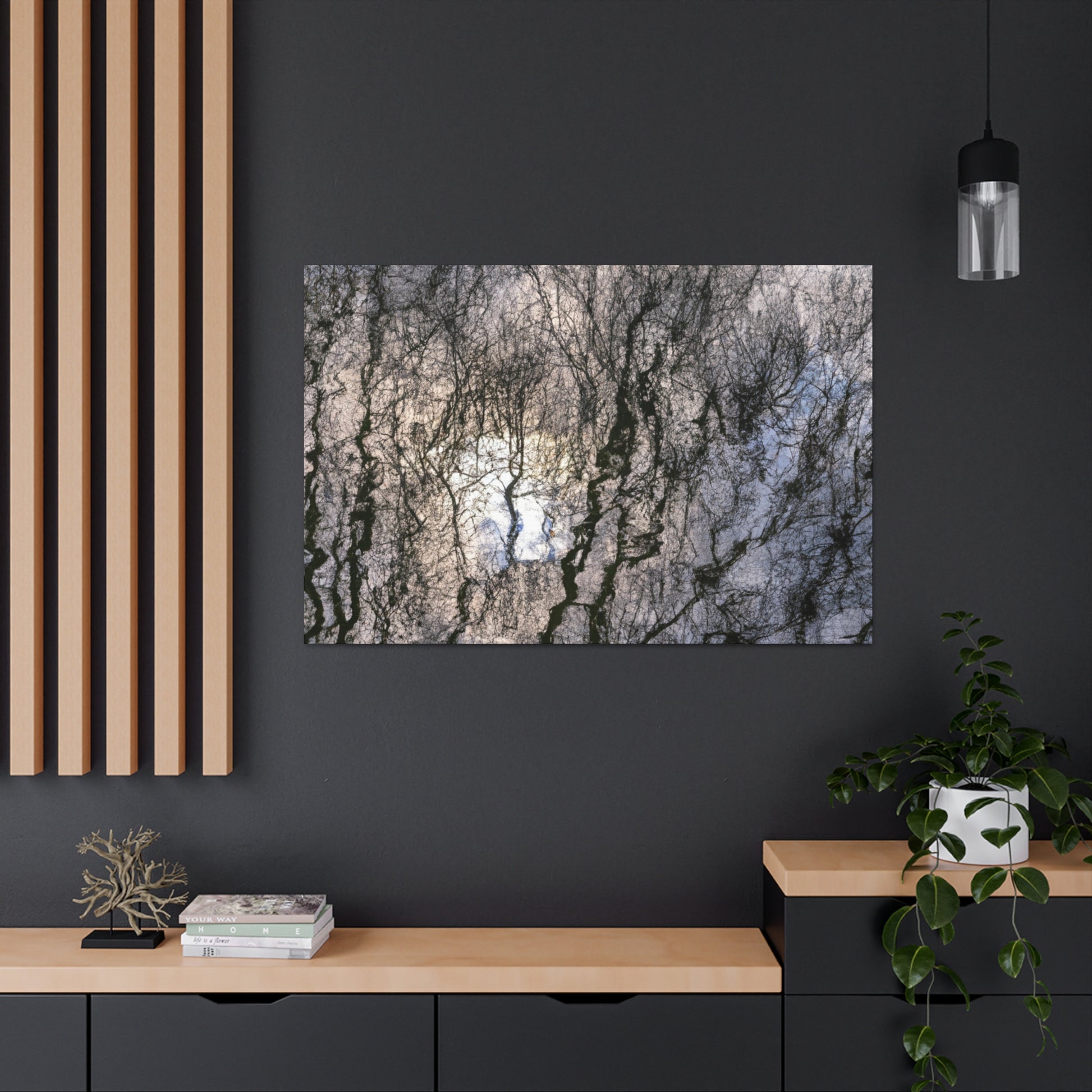 This canvas captures the reflections and water painting of a great artist. Its soothing, brushstrokes calm any room and boasts its vibrancy and color. Enjoy this piece of natural beauty and grace in your own home! #art #canvas #painting #reflections #nature #blackandwhite #grace #home #soothing #vibrant #brushstrokes #waterpainting