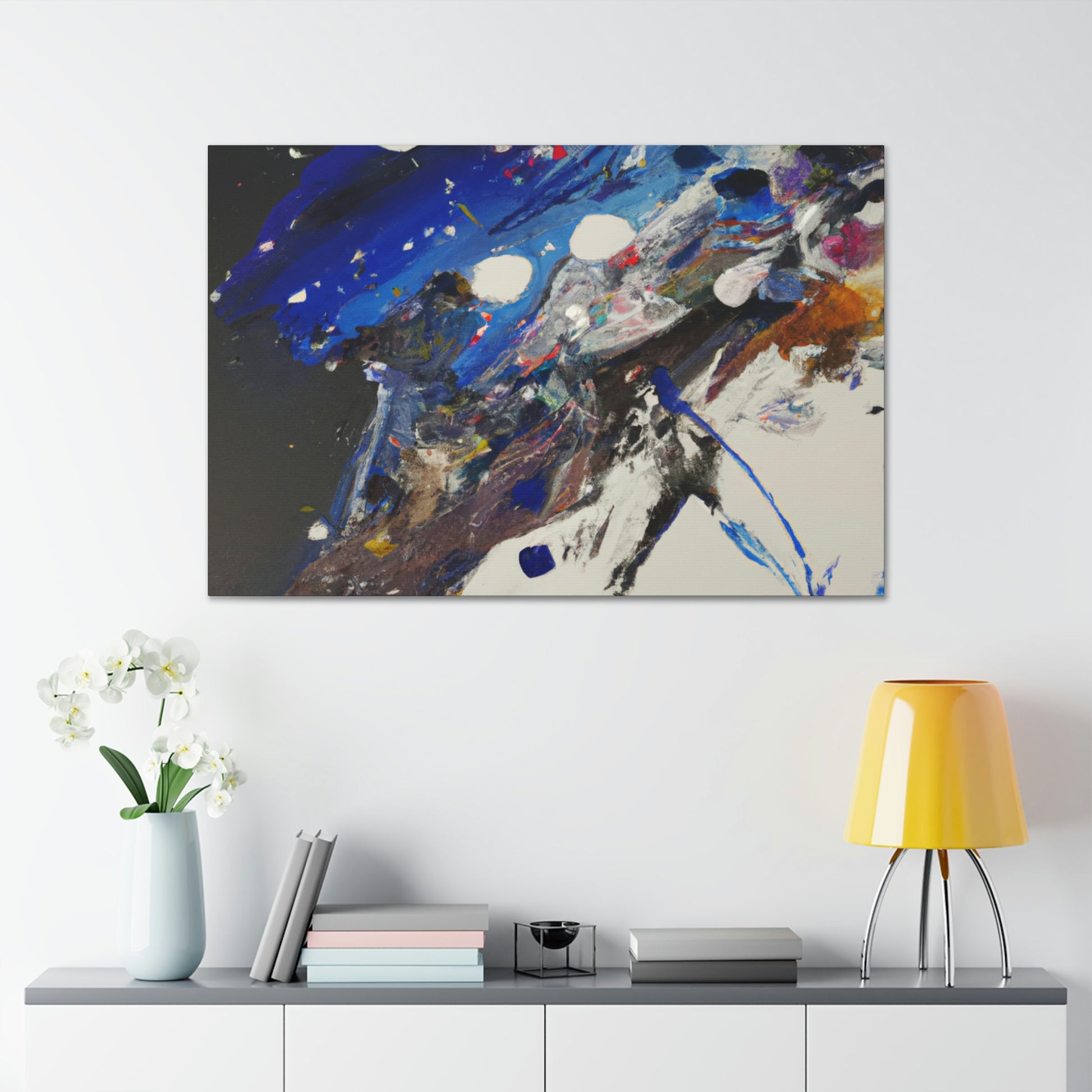 This beautiful abstract office painting is sure to be an inspiring addition to any office. It features stimulating shades of blue, yellow and grey to create a mesmerizing geometric design. The vivid colors placed in a perfect composition are sure to bring delight and creativity to your workspace. The canvas will effortlessly fit into your office decor, proudly standing out at the same time. #abstractart #officespace #homedecor #wallart #geometricart #canvasart #colors #inspiringdesigns #inspiration #beautifulart #moodlifting and #originalart