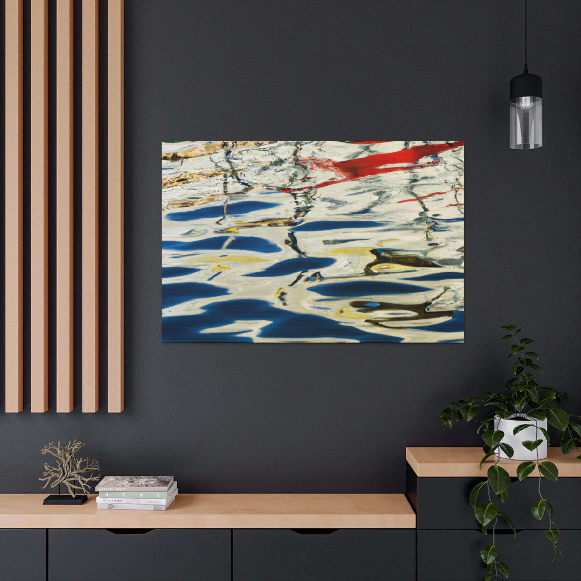 This canvas art piece brings some serenity into your home with its beautiful reflections and water painting. Attention to detail is meticulously executed in its striking colors and contrast. Evoking the style of a great artist, this wall art will bring a sense of calm and admiration. #canvasart #reflections #waterpainting #greatartist #style #calm #admiration #colors #contrast #detail #serenity and #wallart