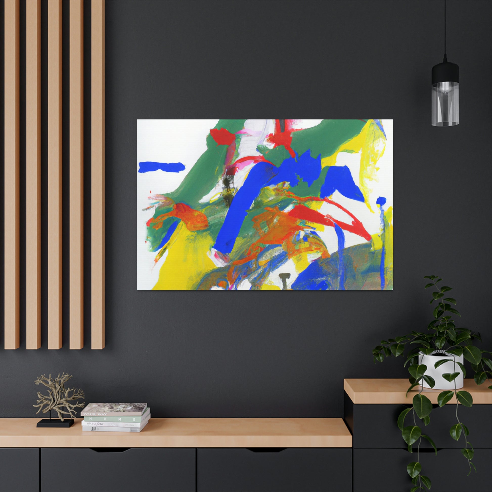 This canvas of abstract art brings something unique for your office. Bold shapes and gentle curves give the piece incredible texture and depth, providing a powerful visual stimulus. The bright and contrasting colors will draw in the viewer and help create a feeling of balance. Hang this canvas in any office and bring a splash of creativity and energy to your space. #abstractart #abstractartwork #officeinterior #canvasart #paintingdecor #homedecor #homedesign #modernaesthetic #colourfulart #contemporarypainting #creativeinspiration and #officespace