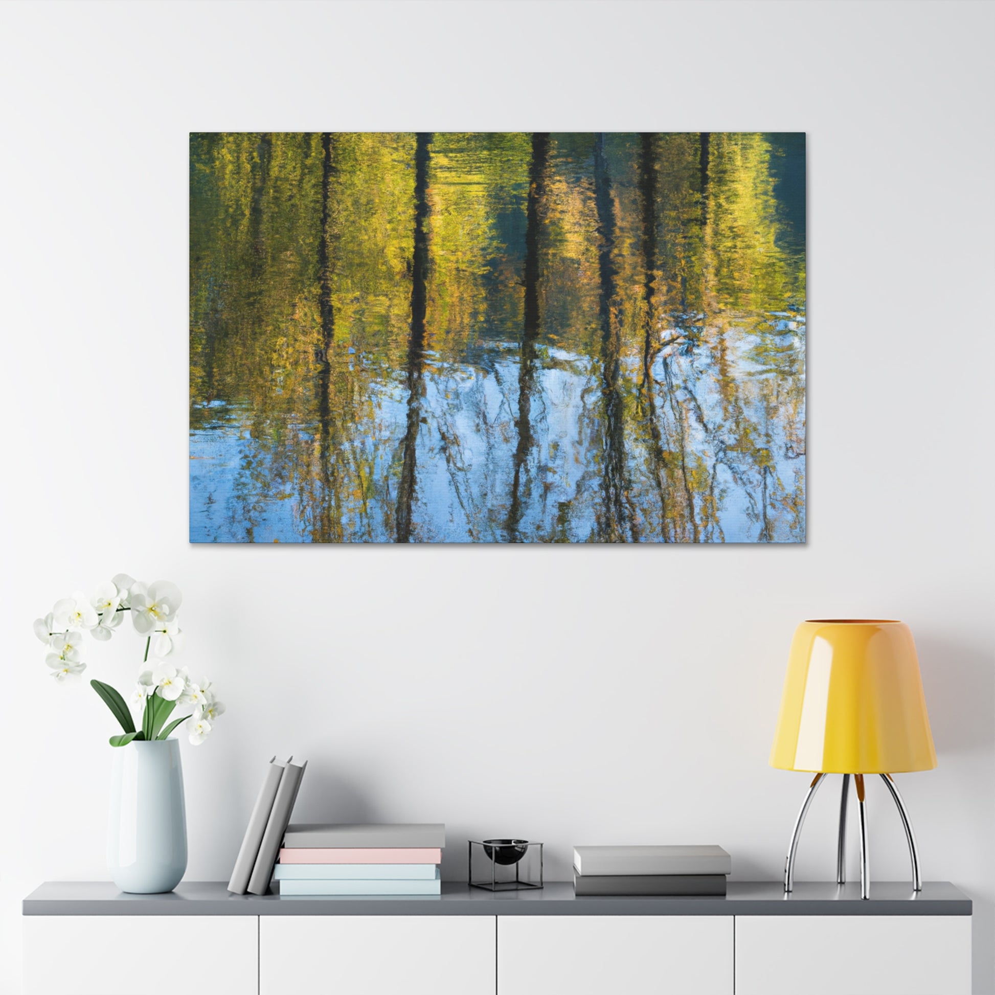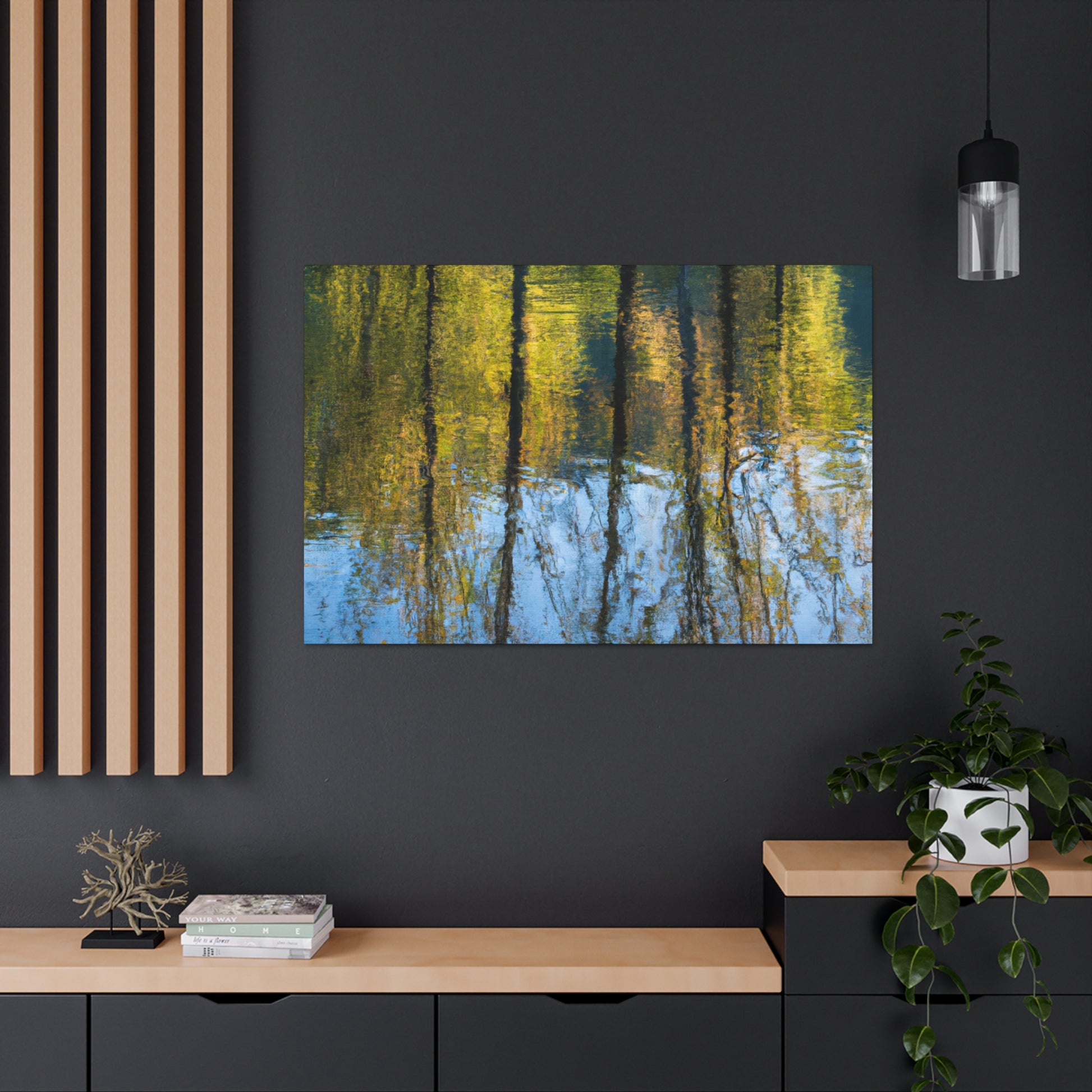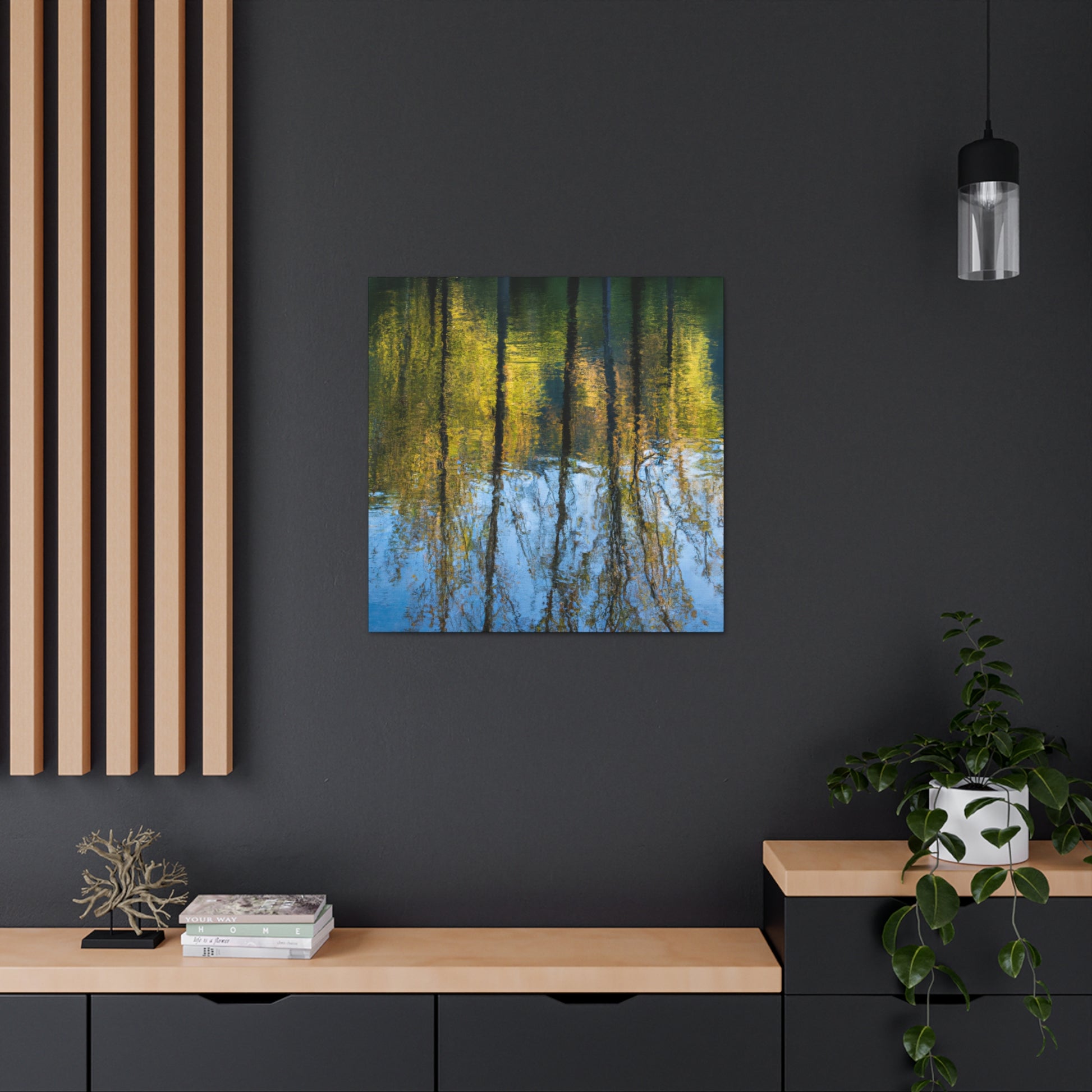 This curated canvas by renowned artist portrays an incredible reflection and water-painting masterpiece. Cool subtle colors bring the image to life like no other. Its high-quality canvas print and lightweight frame is sure to add a stunning effect to any wall. Go ahead, put this on your wall and watch yourself become mesmerized. #art #canvas #painting #reflection #masterpiece #waterpainting #curatedart #wallhanging #artist #quality #effect #mastered