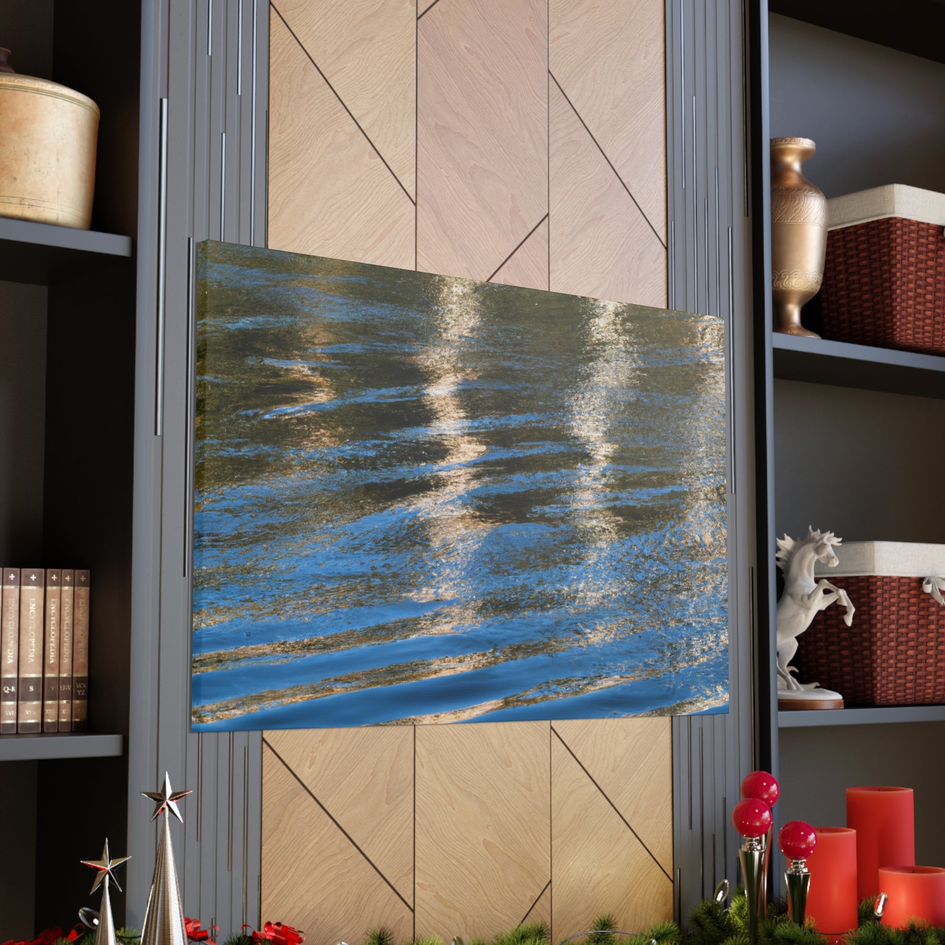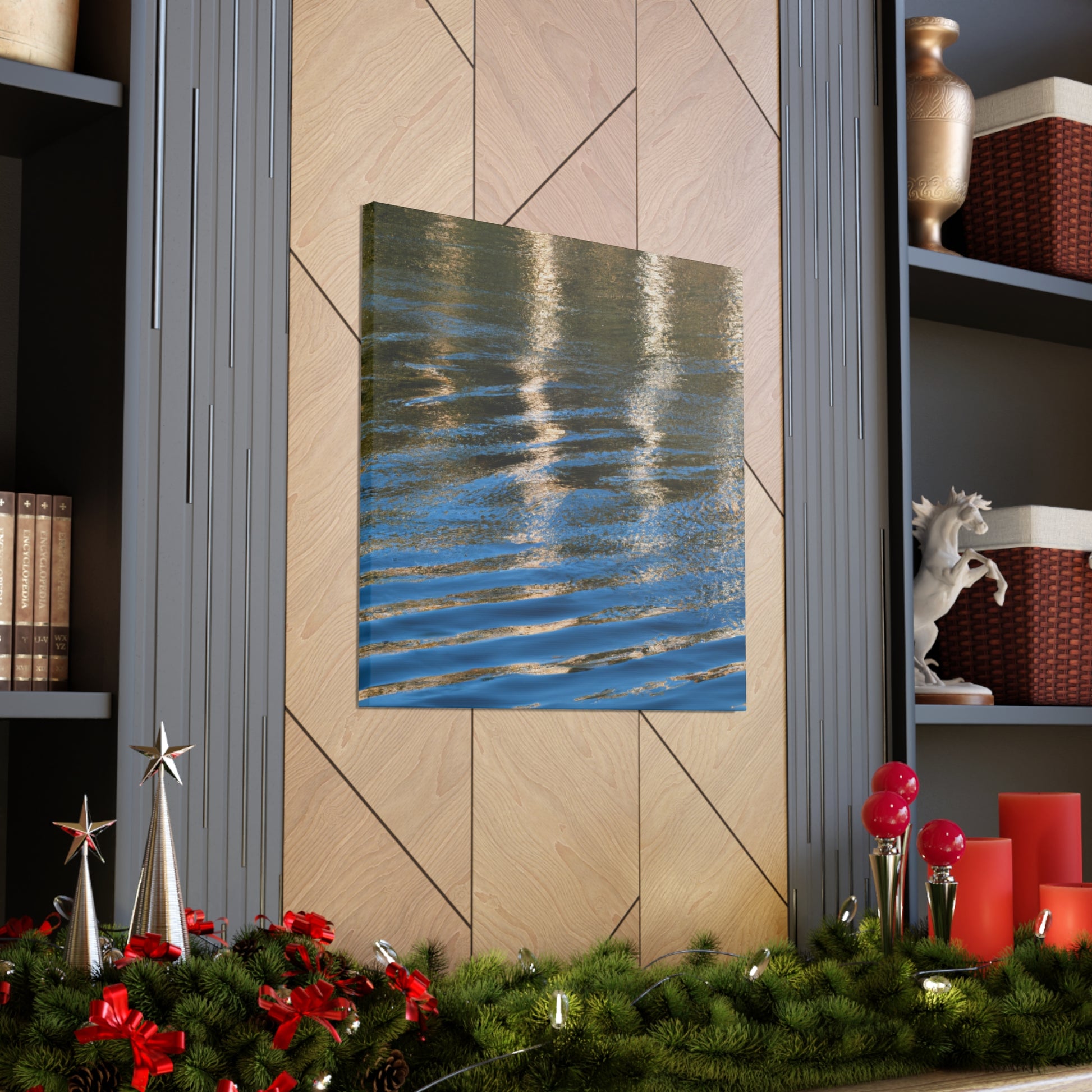 This canvas features stunning line art inspired by reflections and water painting. Using vivid colors and intricate designs, this piece brings an individual artist's vision to life. It is both striking and alluring, making it the perfect addition to any home. #canvas #art #vividcolors #linework #waterpainting #reflection #homeinterior #homedecor #statementpiece #uniqueart #artistand